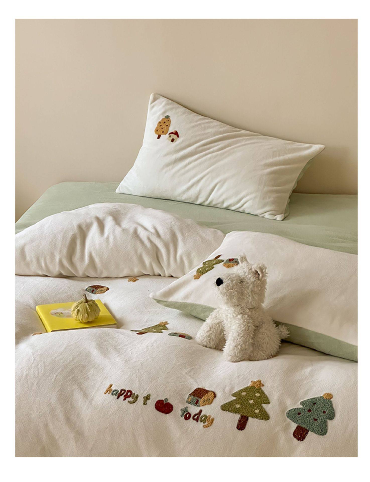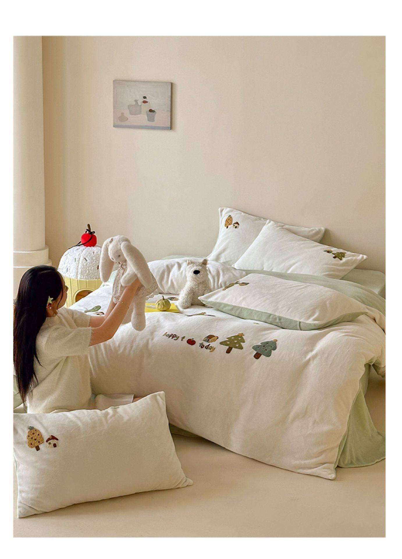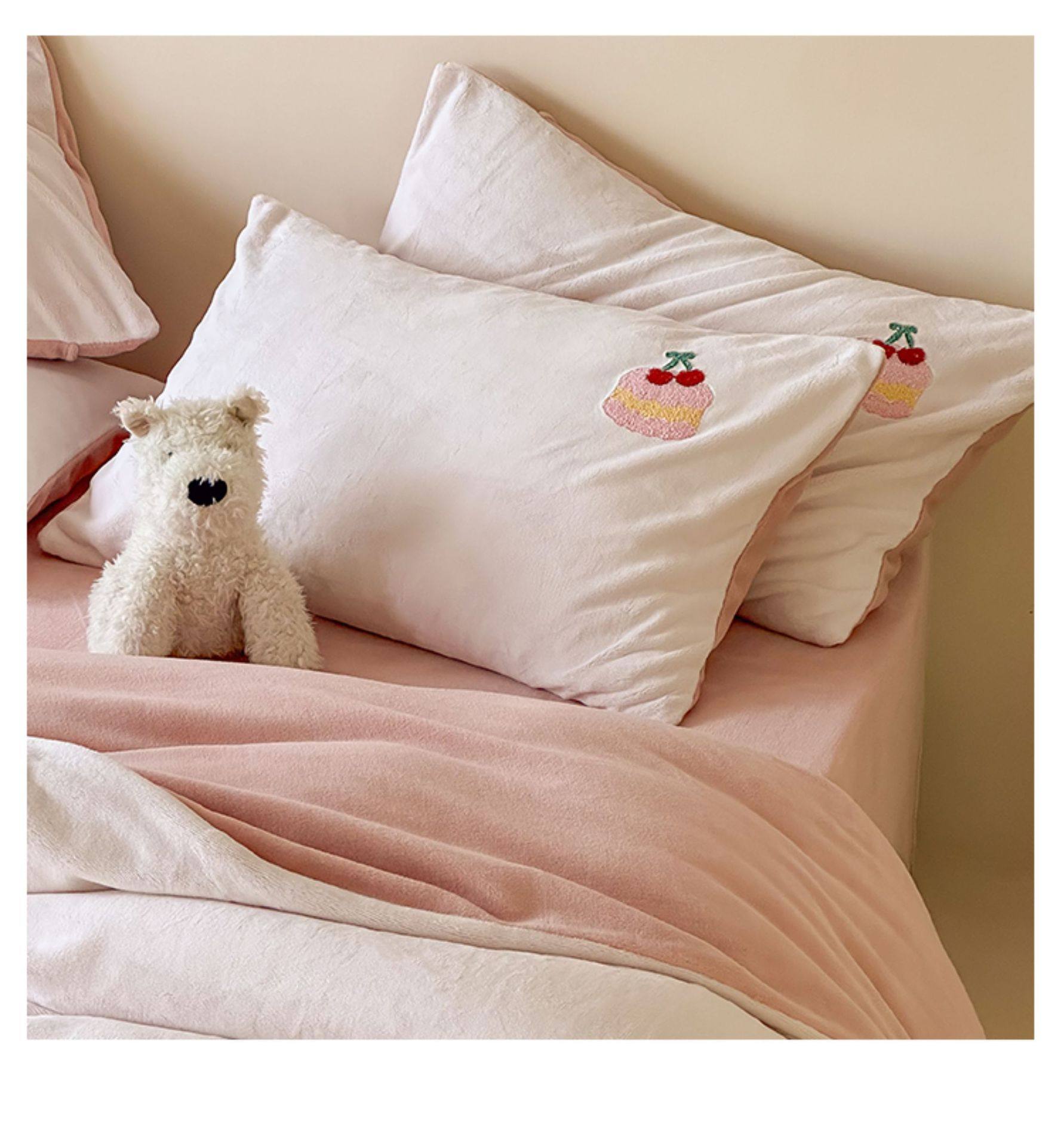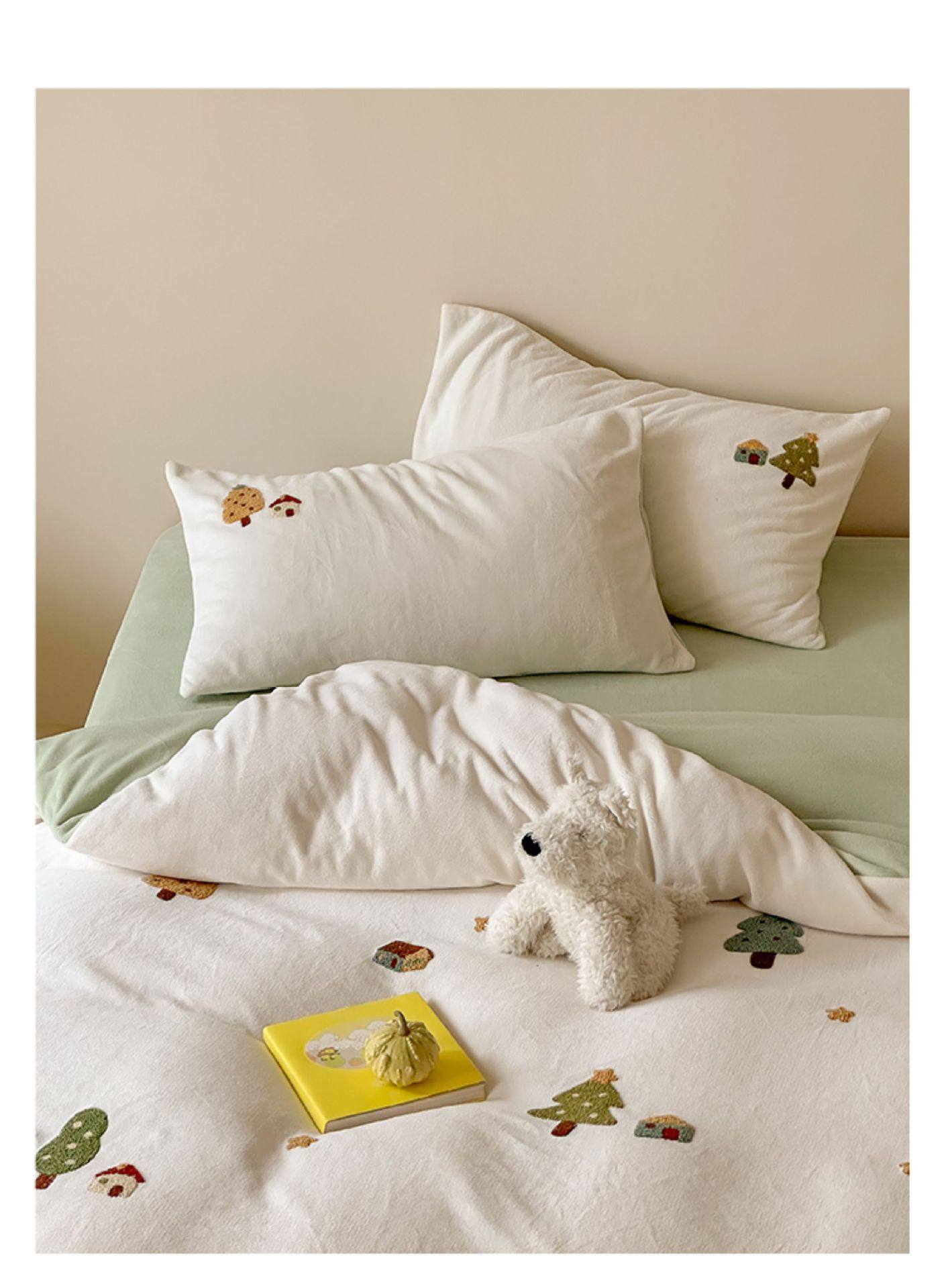 High Weight Milk Velvet Cartoon Towel Embroidered Four-Piece Set Double-Sided Velvet Anti-Static Coral Velvet Quilt Cover Kidsren's Three-Piece Set