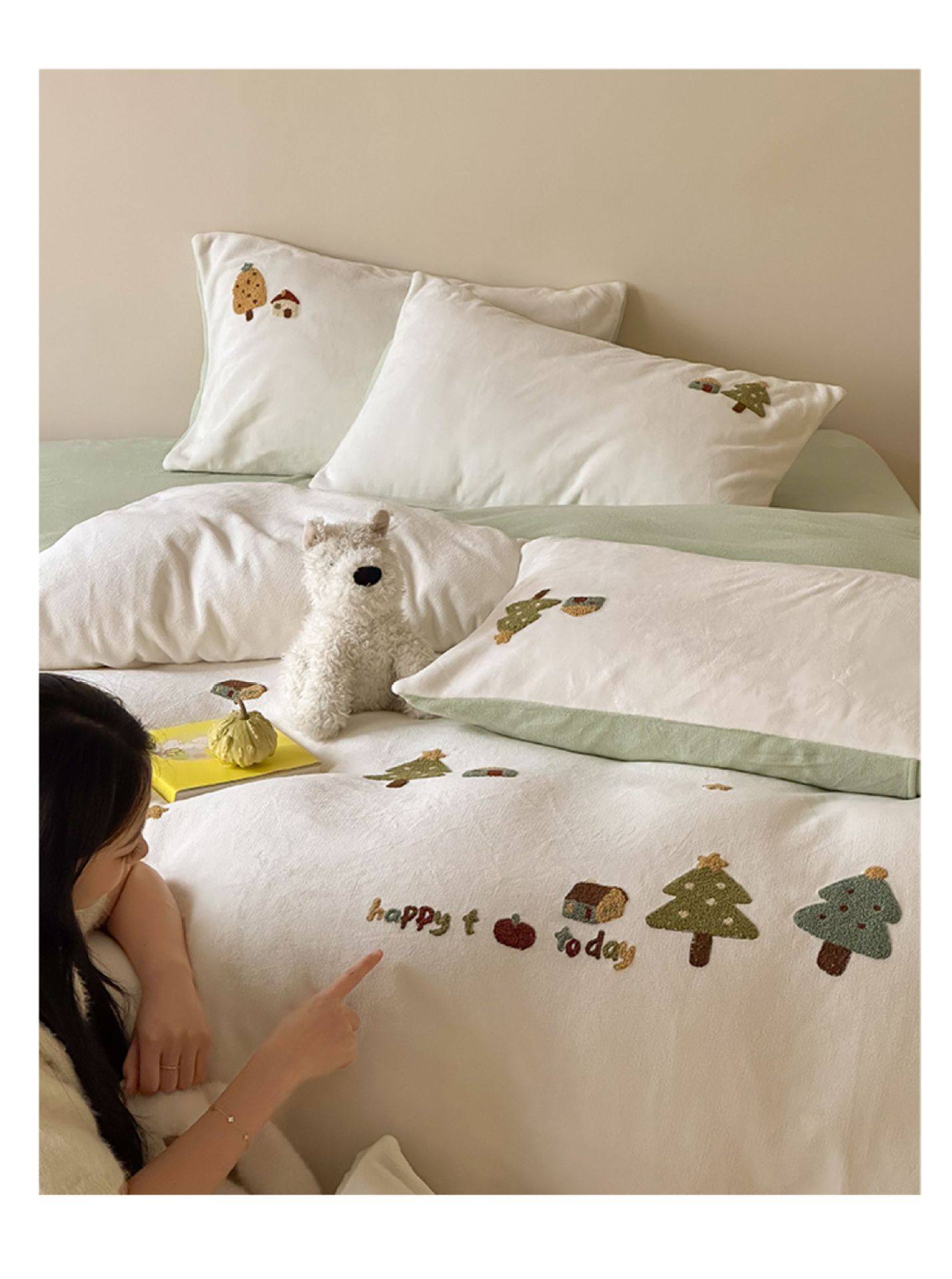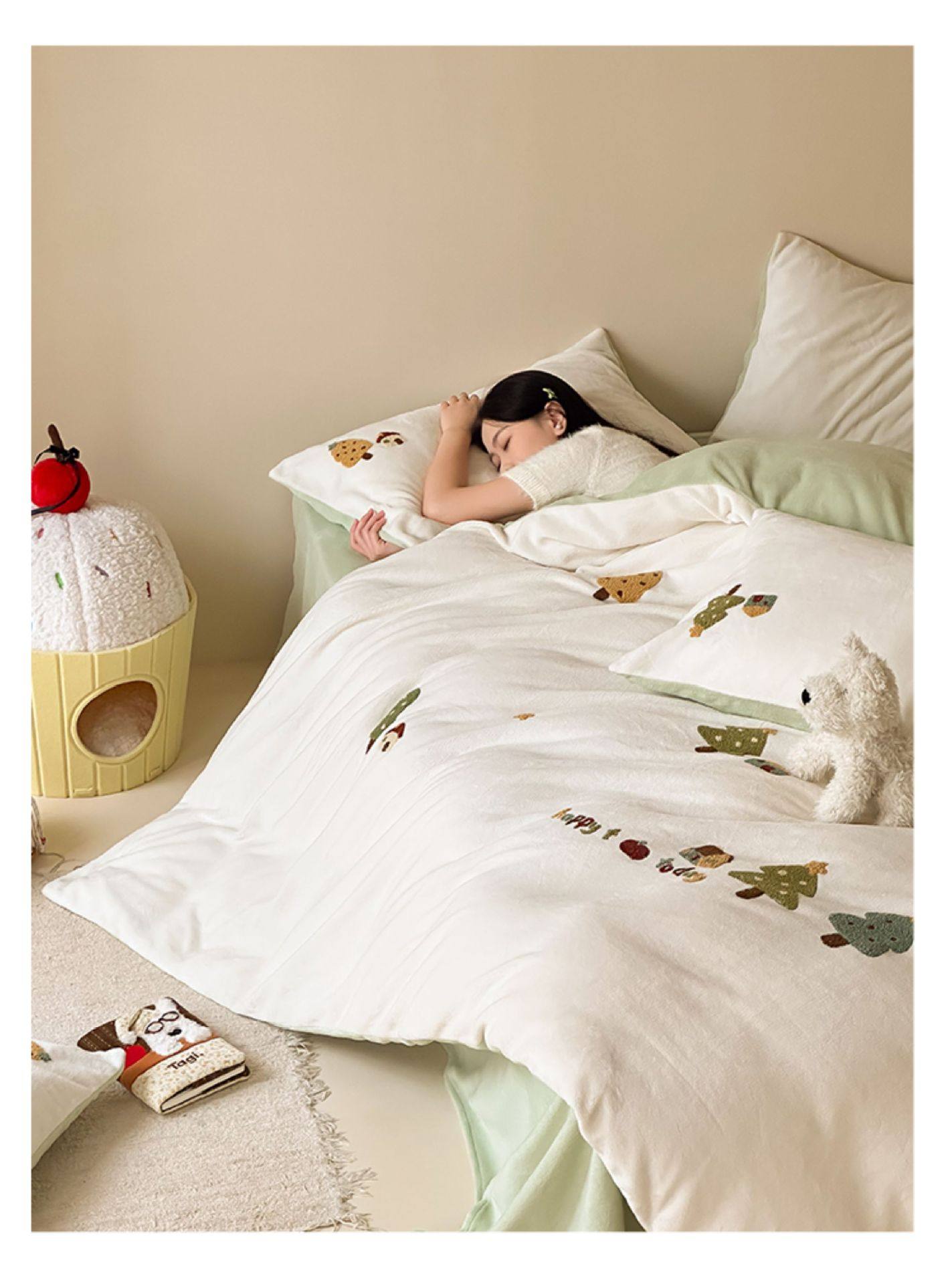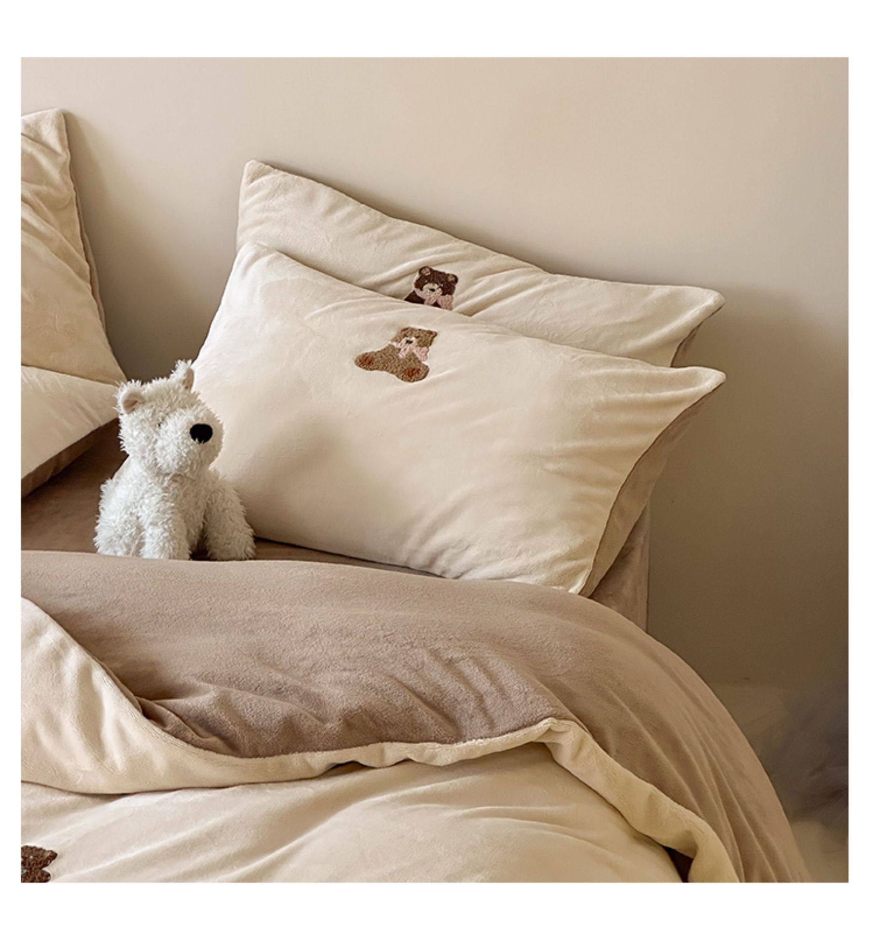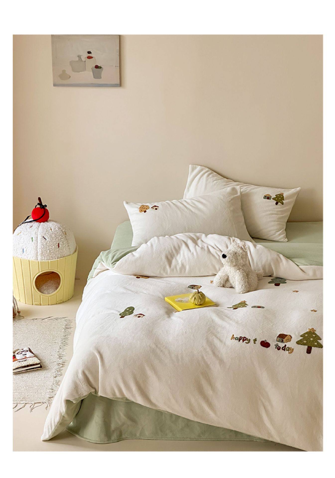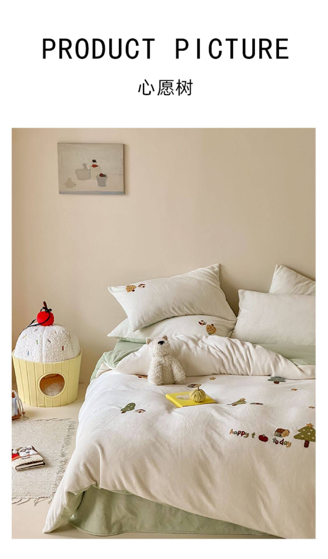 High Weight Milk Velvet Cartoon Towel Embroidered Four-Piece Set Double-Sided Velvet Anti-Static Coral Velvet Quilt Cover Kidsren's Three-Piece Set