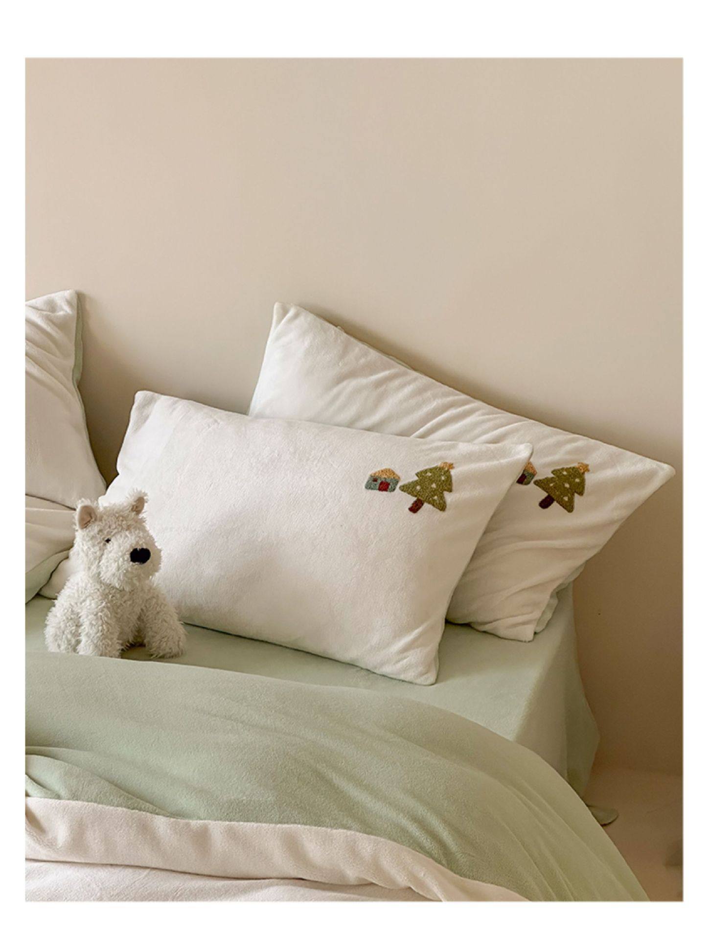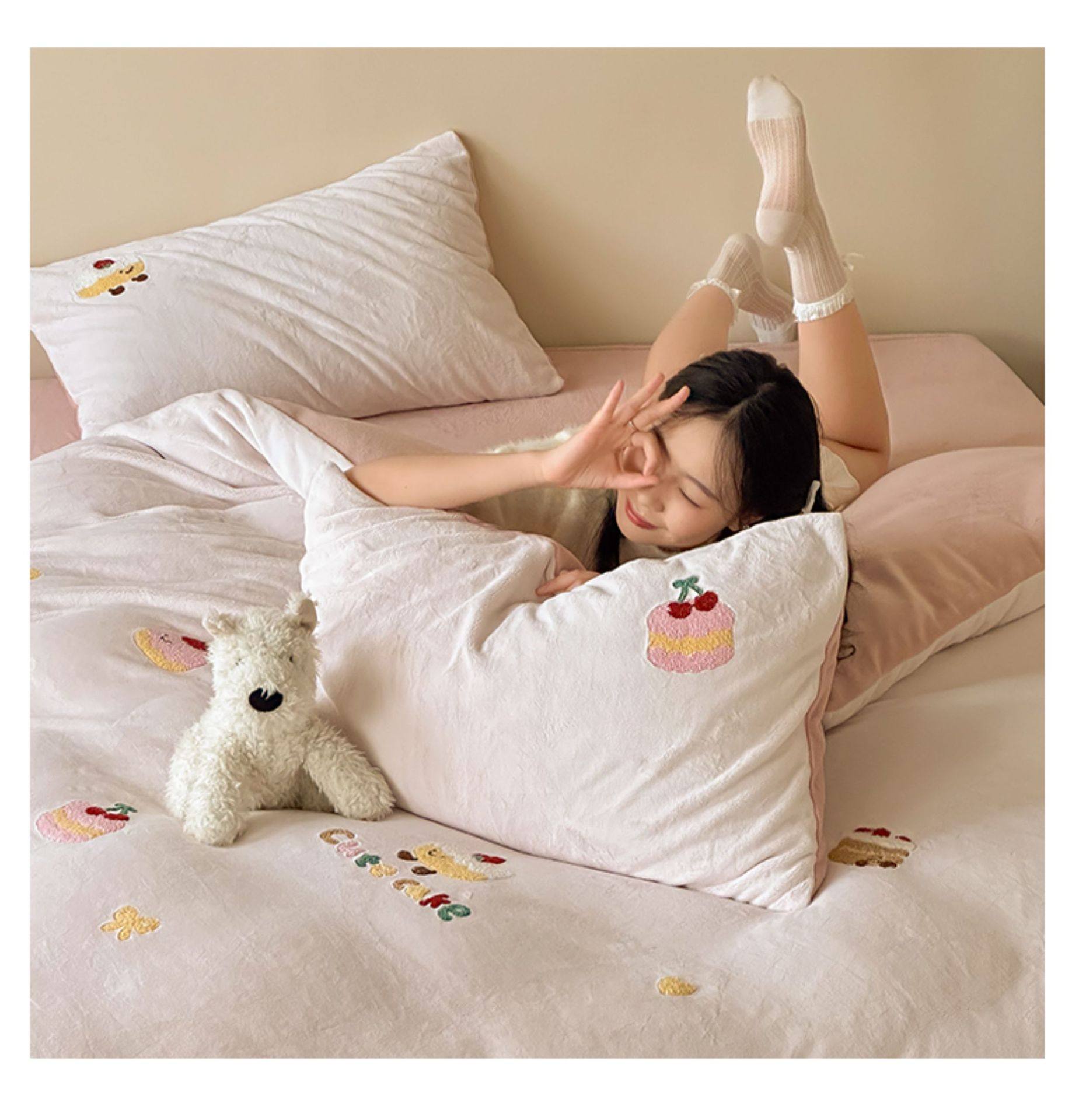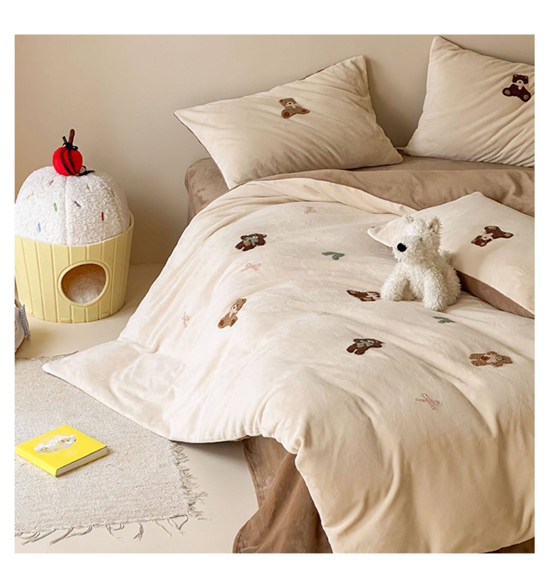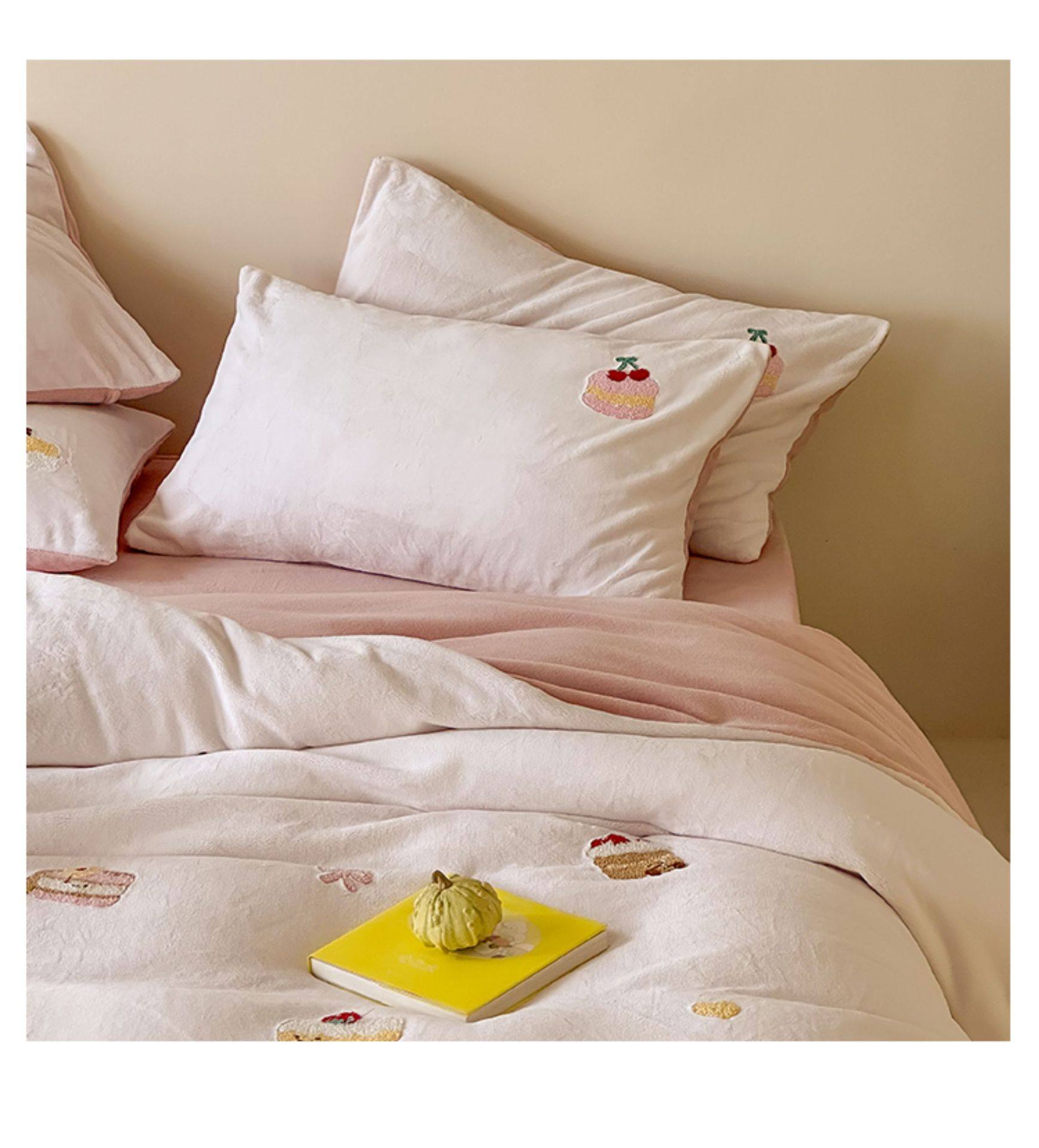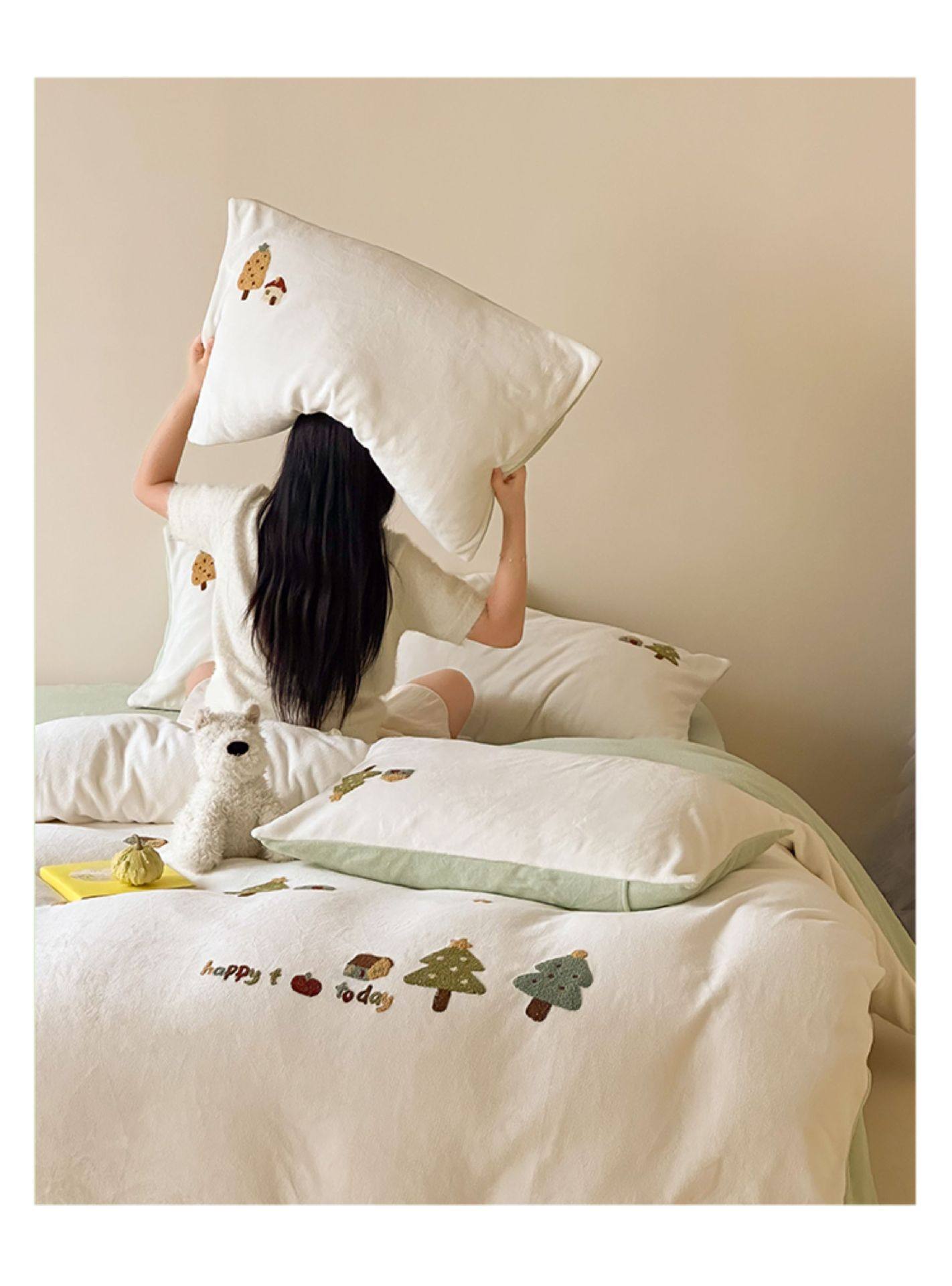 High Weight Milk Velvet Cartoon Towel Embroidered Four-Piece Set Double-Sided Velvet Anti-Static Coral Velvet Quilt Cover Kidsren's Three-Piece Set