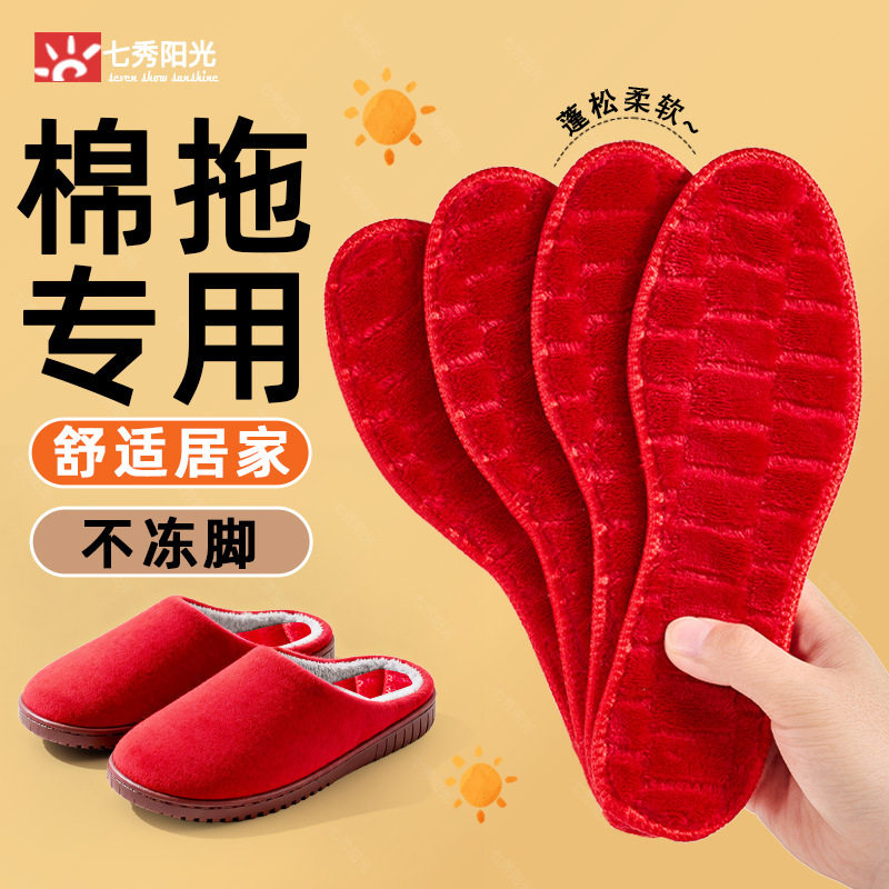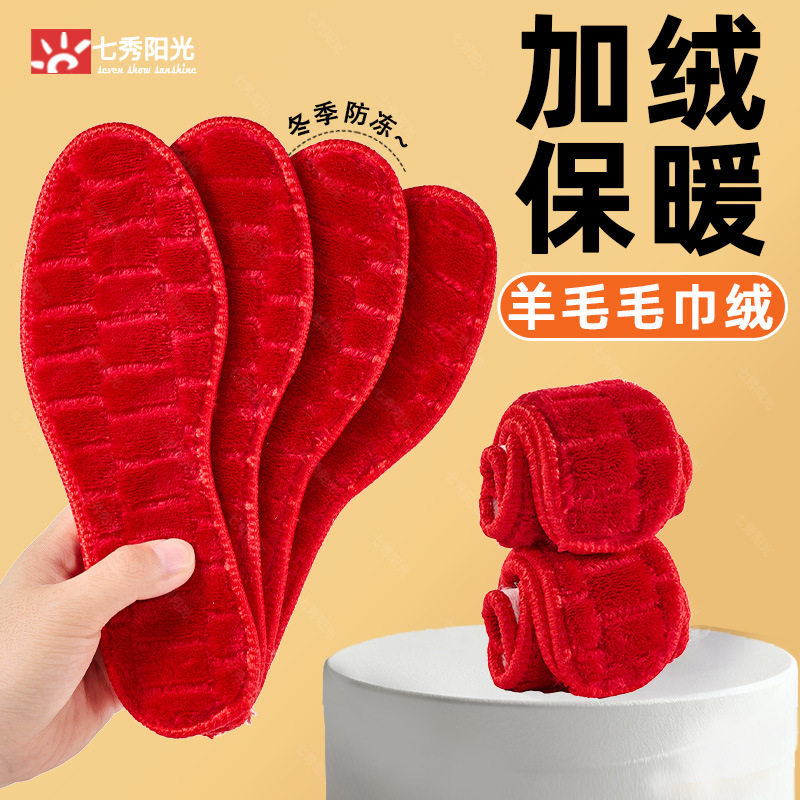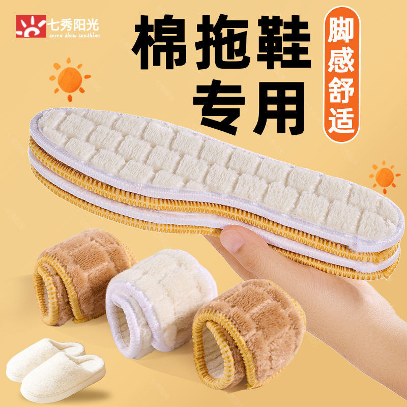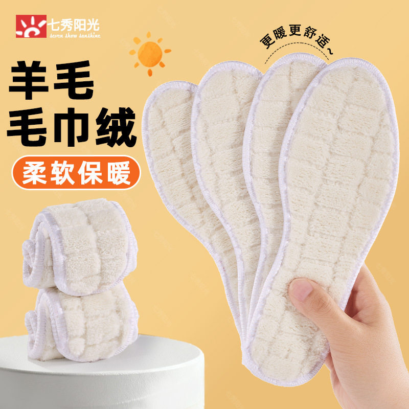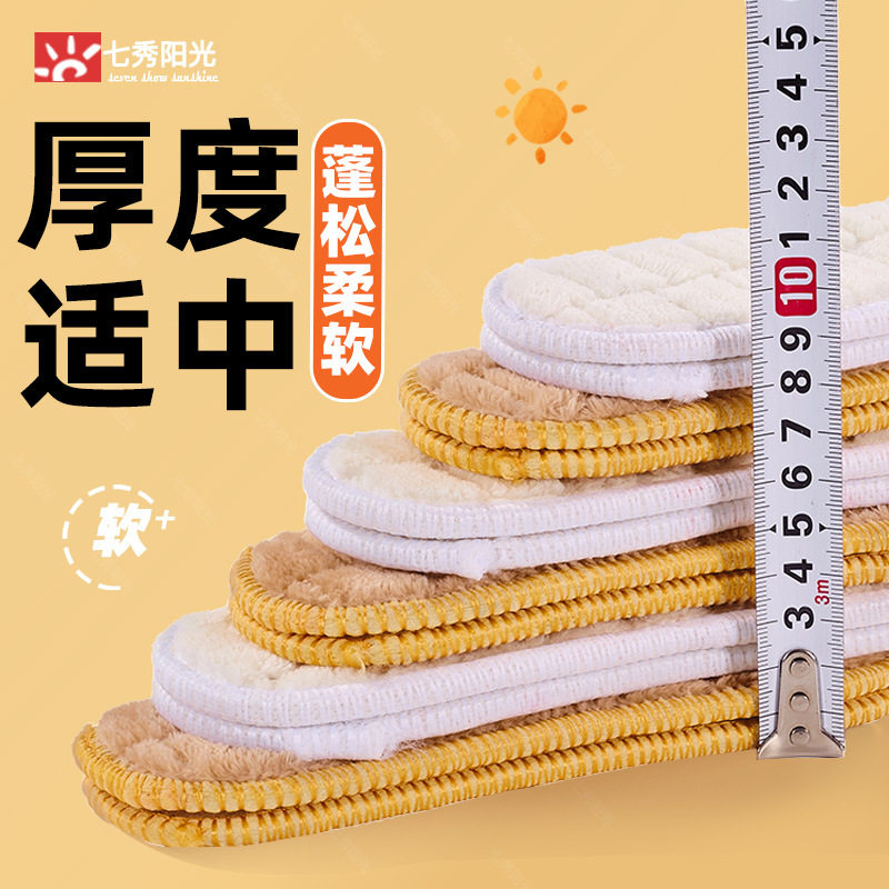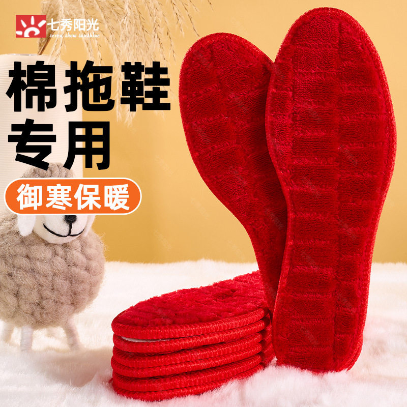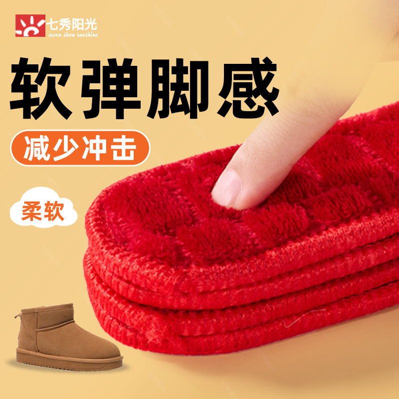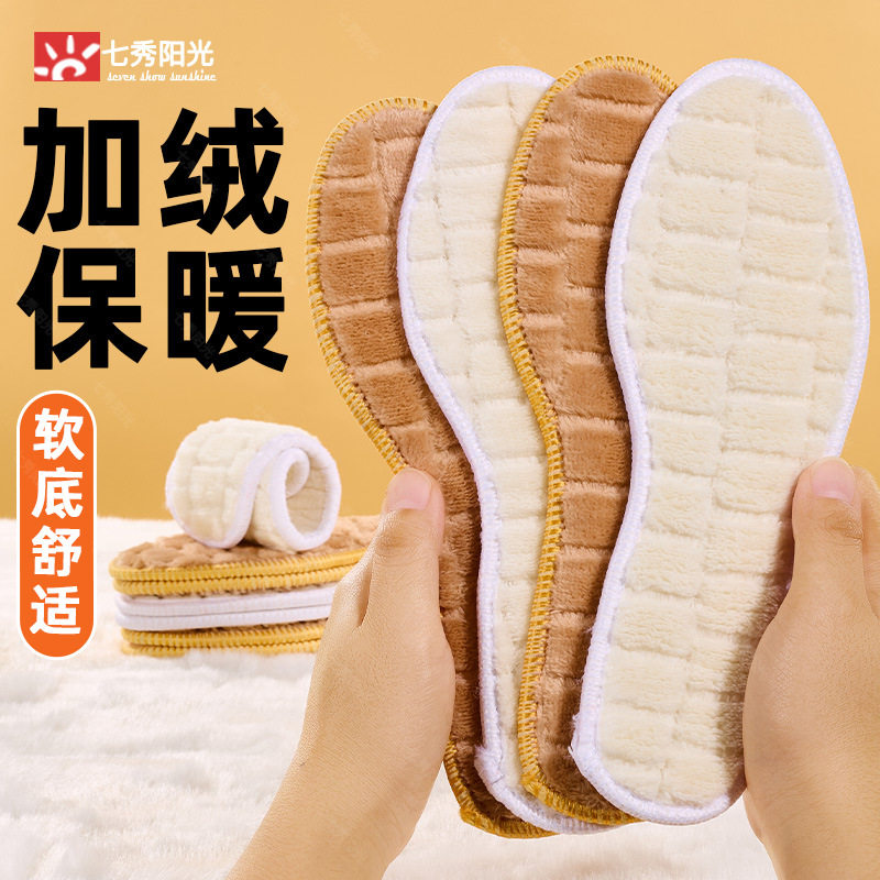 Warm Insole Women's Soft Sole Plaid Integrated Plus Velvet Thickened Winter Sports Warm Cotton Insole