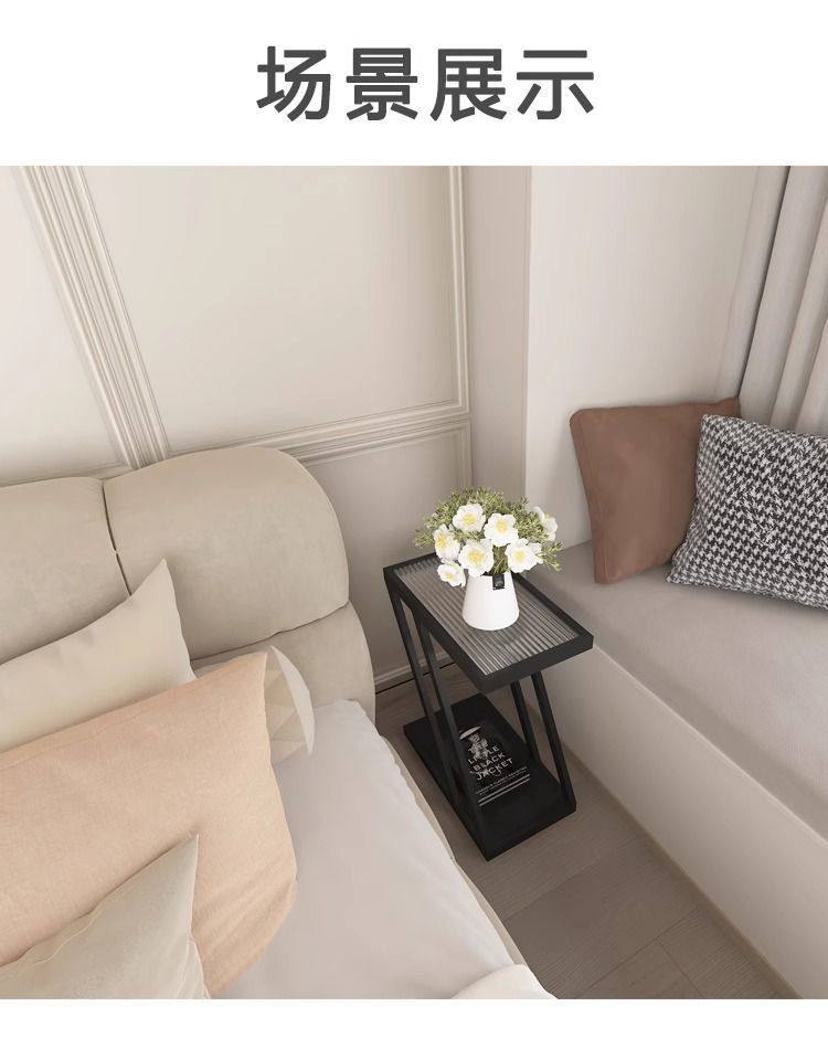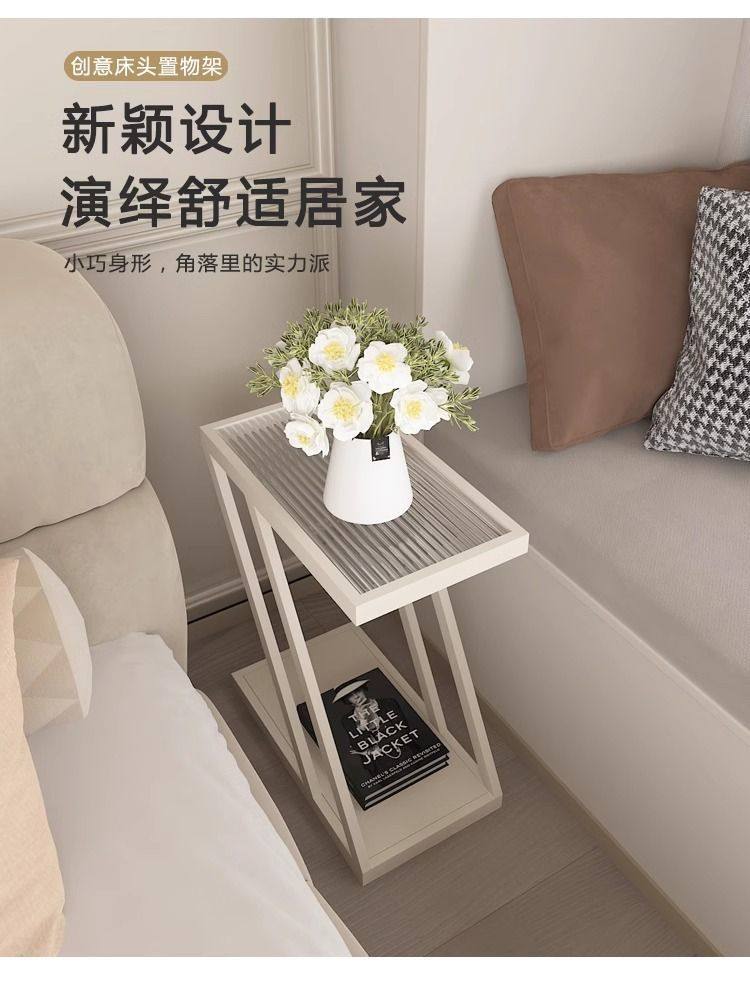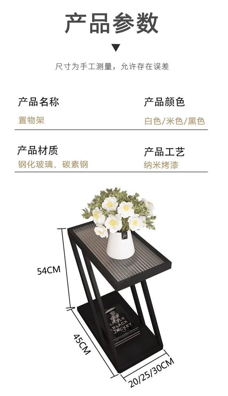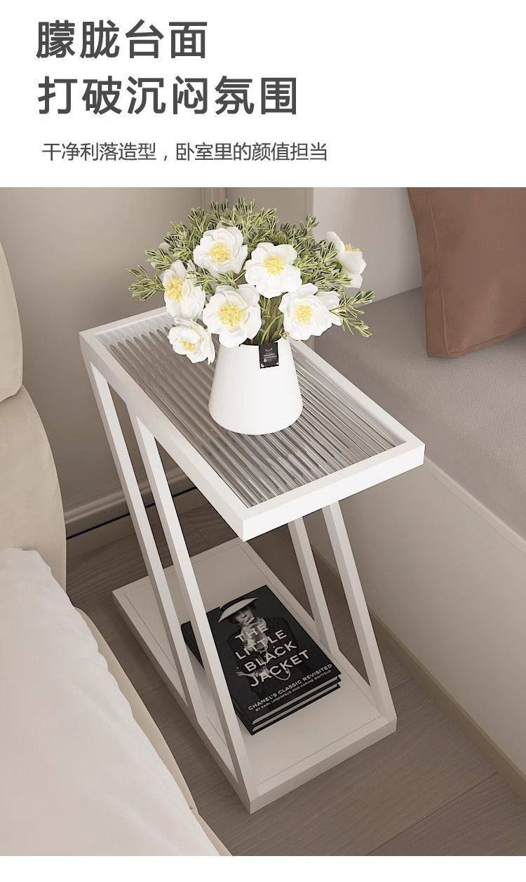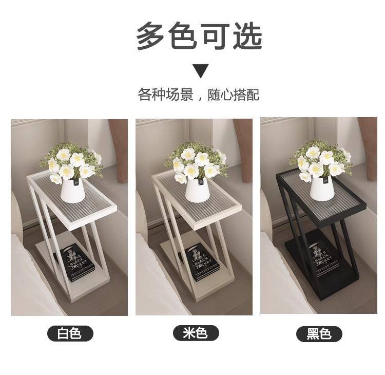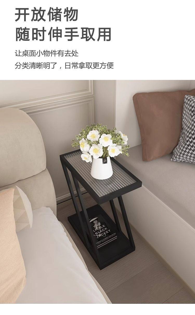 Living Room Sofa Side Table Changhong Glass Floor-Standing Storage Rack Iron Ultra-Narrow Bedside Table Small Narrow Corner Table