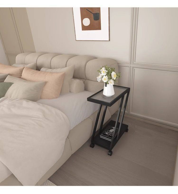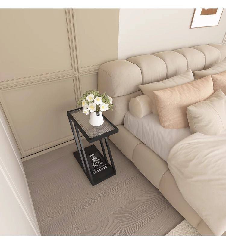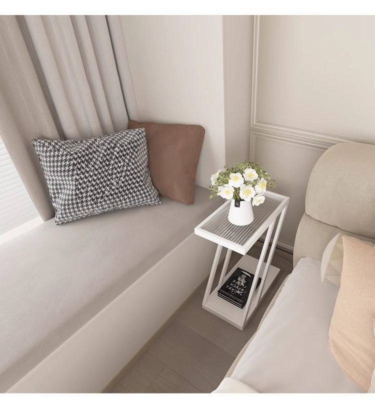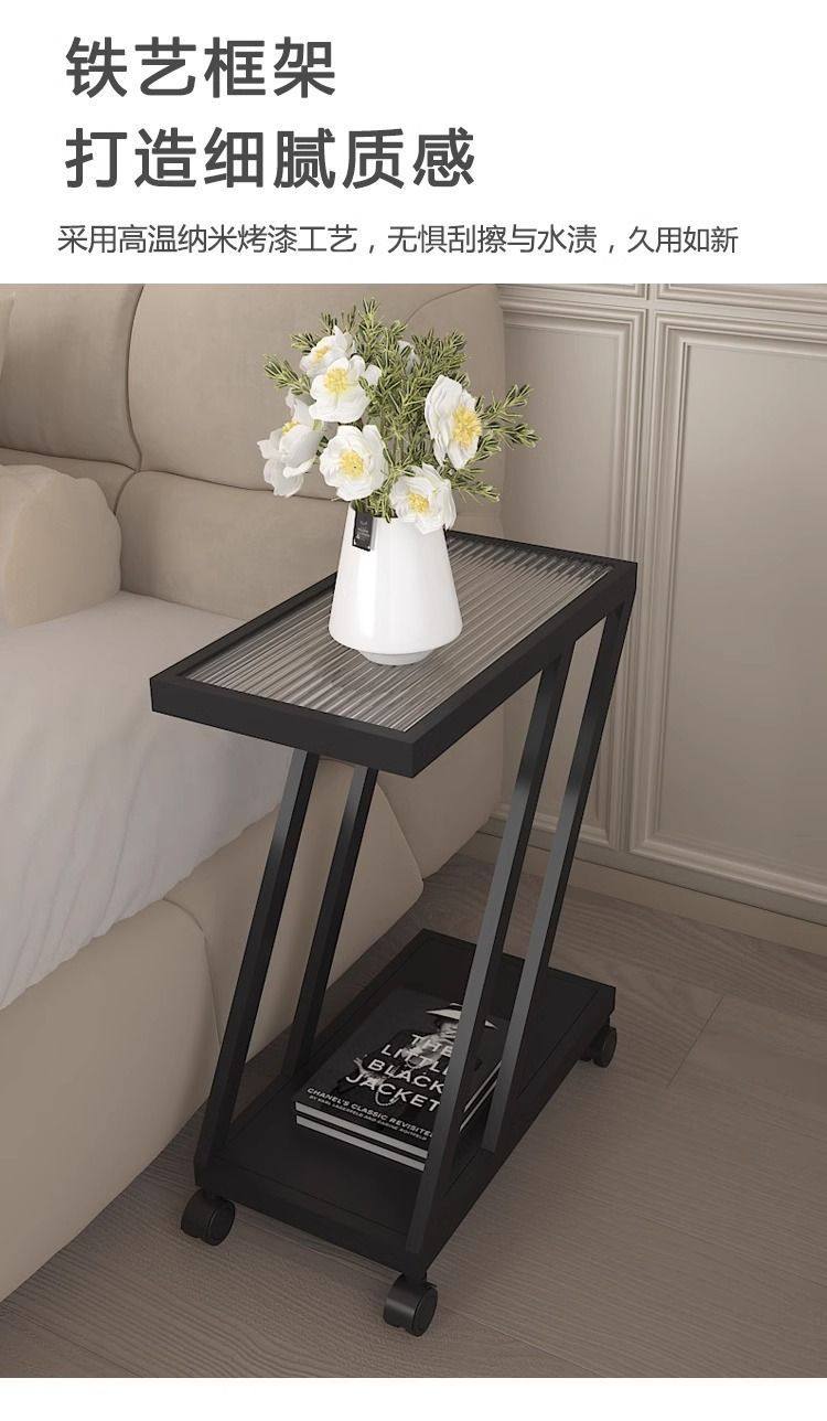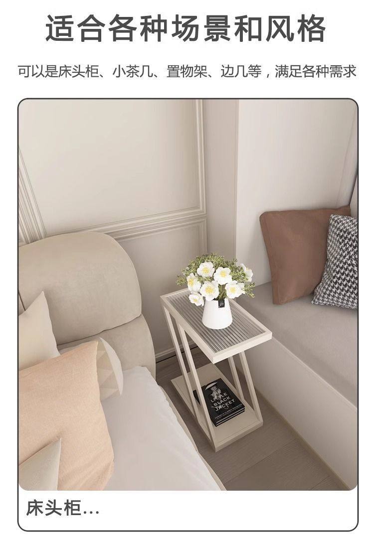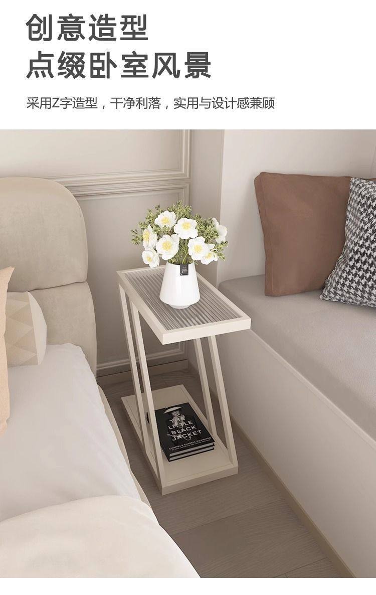 Living Room Sofa Side Table Changhong Glass Floor-Standing Storage Rack Iron Ultra-Narrow Bedside Table Small Narrow Corner Table