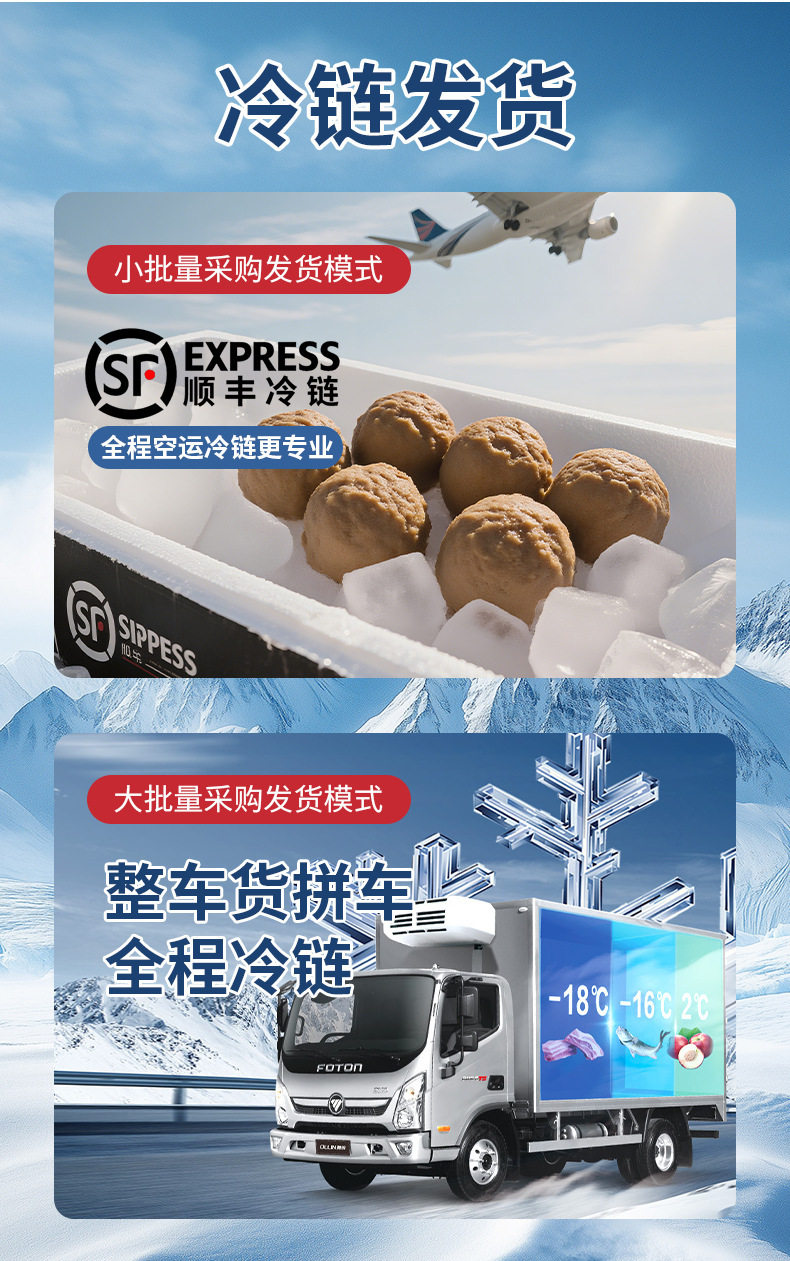 | Packaging specifications | 200g beef balls [93% meat content],200g beef balls [95% meat content] yellow label |