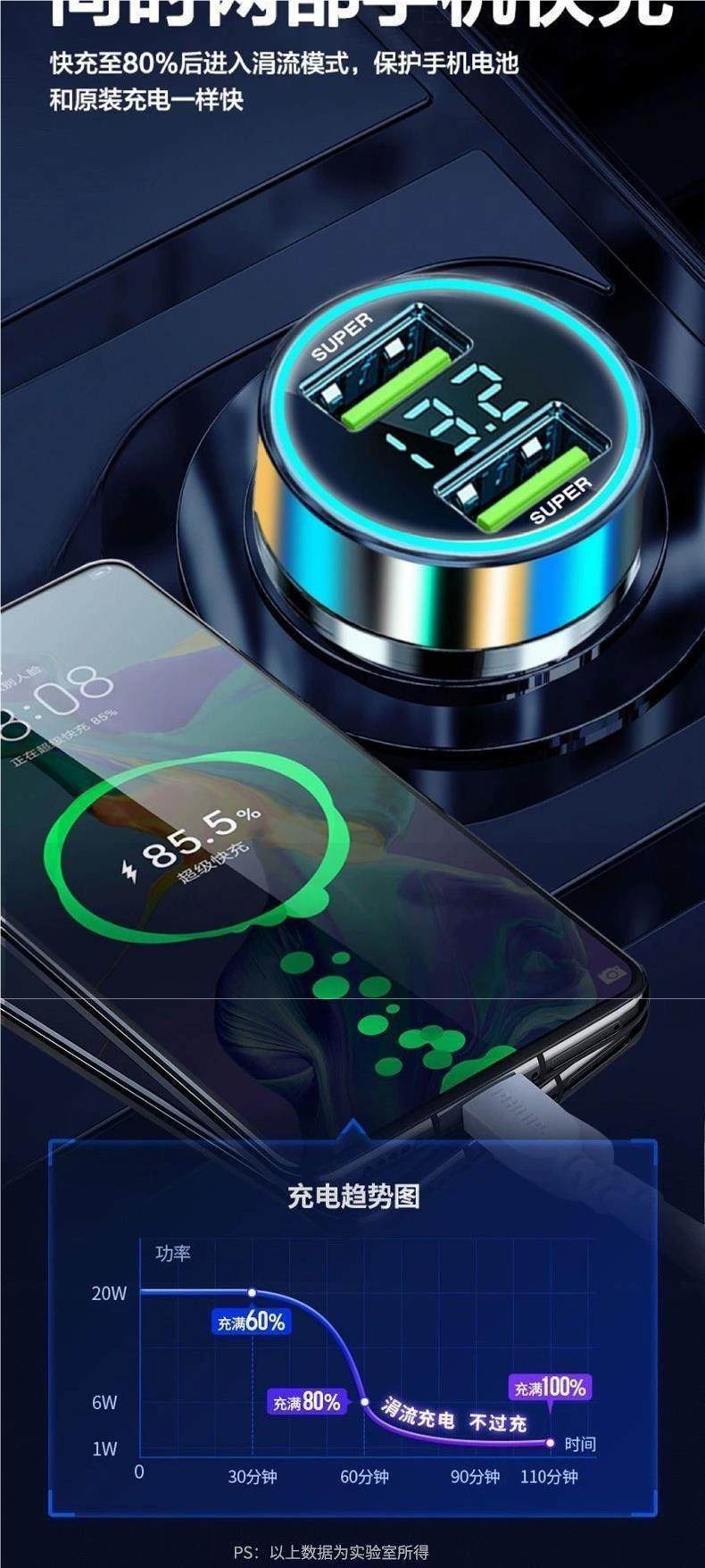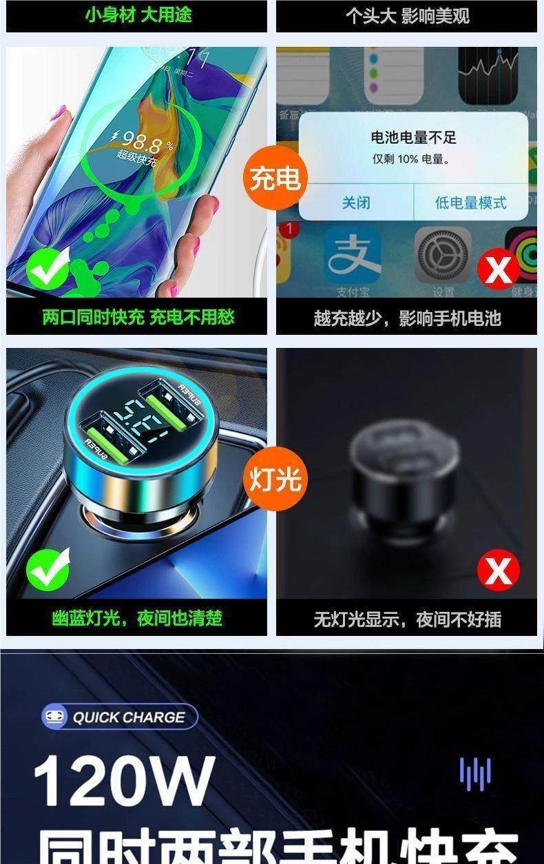 Mobile Phone Car 66W Multi-Point Cigarette Conversion Plug One to Two Car Charger USB Fast Charging Protocol Car Charger