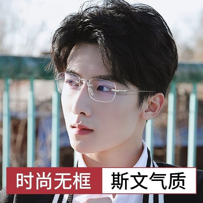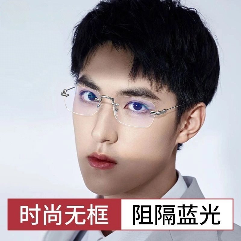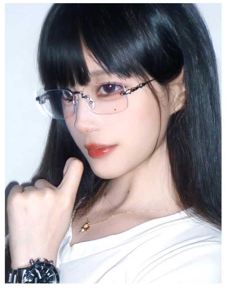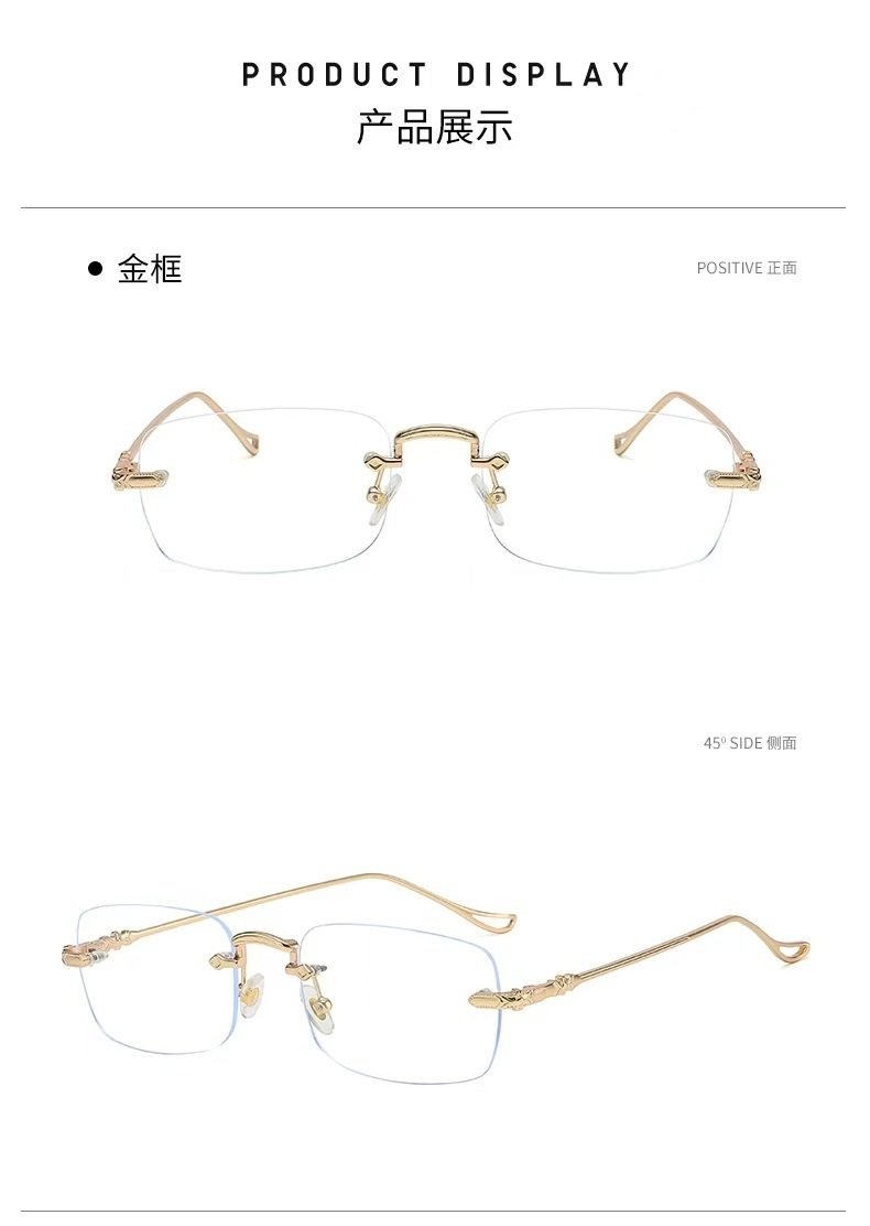 Plain Gold Wire Rimless Glasses for Myopic Women, High-End Rimless Pure Lust Anti-Blue Light Cut Edge Silver Frame