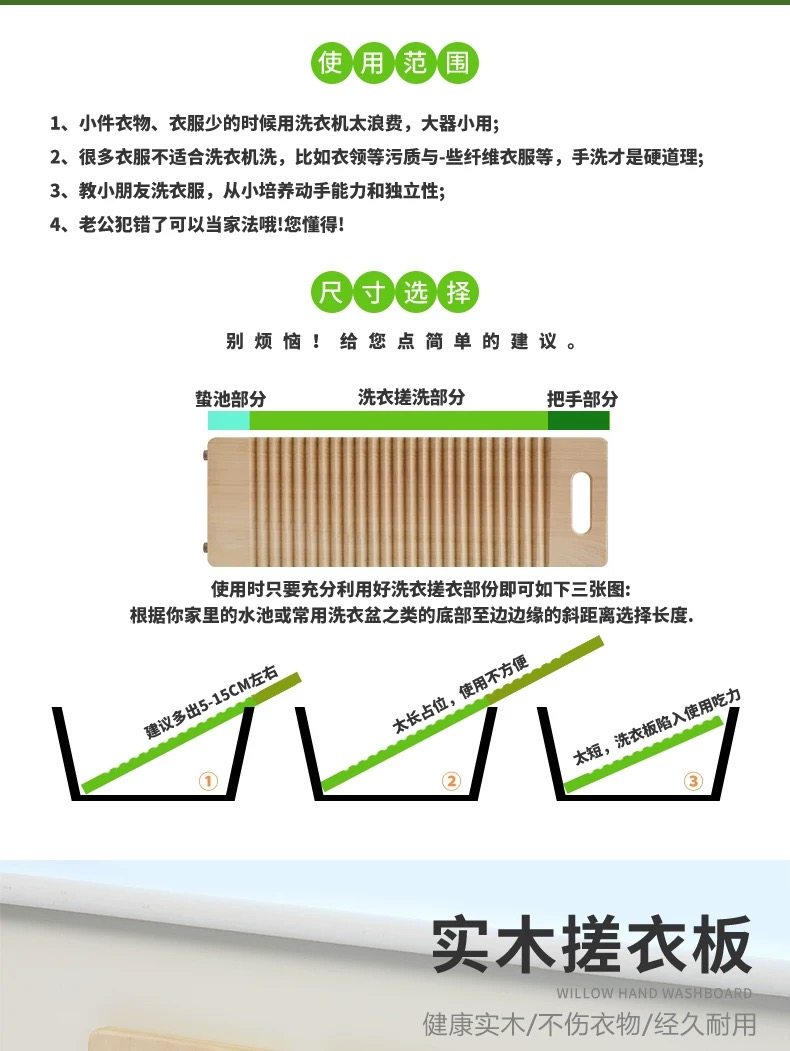 | Specifications | â Old-fashioned laundry stick 2.5cm thick â,â 30cm long, 14-16cm wide, 2.5cm thick, cross-hole style (a must-have for travel and business trips) â,â 35cm long, 15-16cm wide, 2.5cm thick, horizontal hole model (small wash basin) â,â 40cm long, 17-20cm wide, 2.5cm thick, horizontal hole model (for wash basin) â,â 45cm long, 17-20 wide, 2.5cm thick, cross-hole type (universal for home use) â,â 50cm long, 17-20cm wide, 2.5cm thick, cross-hole type (universal for home use) â,â Length 55cm, width 17-20cm, thickness 2.5cm, horizontal hole type (for laundry tub) â,â 60cm long, 17-20cm wide, 2.5cm thick, cross-hole type (for large laundry tubs) â,â Length 65cm, width 17-20cm, thickness 2.5cm, horizontal hole type (for large laundry tubs) â,â 70cm long, 17-20cm wide, 2.5cm thick, cross-hole model (for extra large laundry tubs) â |