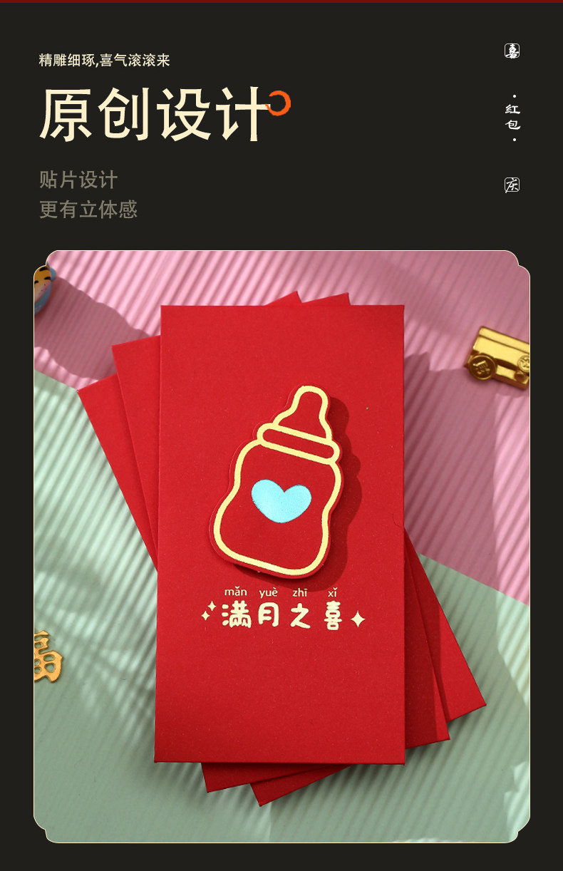 Baby Red Packet Happy Birthday 2023 New Creative Large Red Packet Full Moon Return Gift Smart and Smart Red Ginger Tea