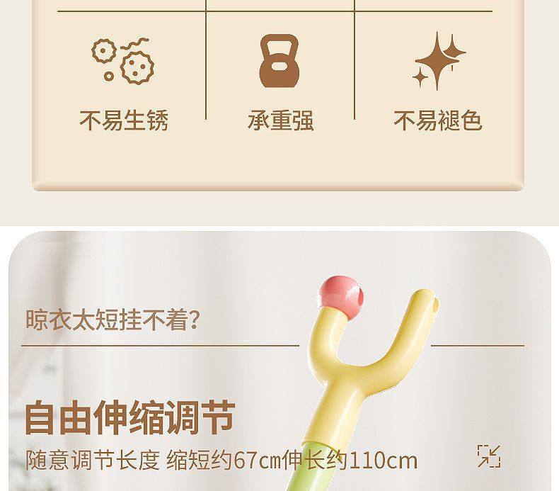 Household Retractable Clothes Rod, Personalized Creative Clothes Fork, Clothes Drying Rod, Balcony Clothes Rod