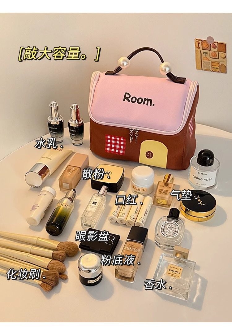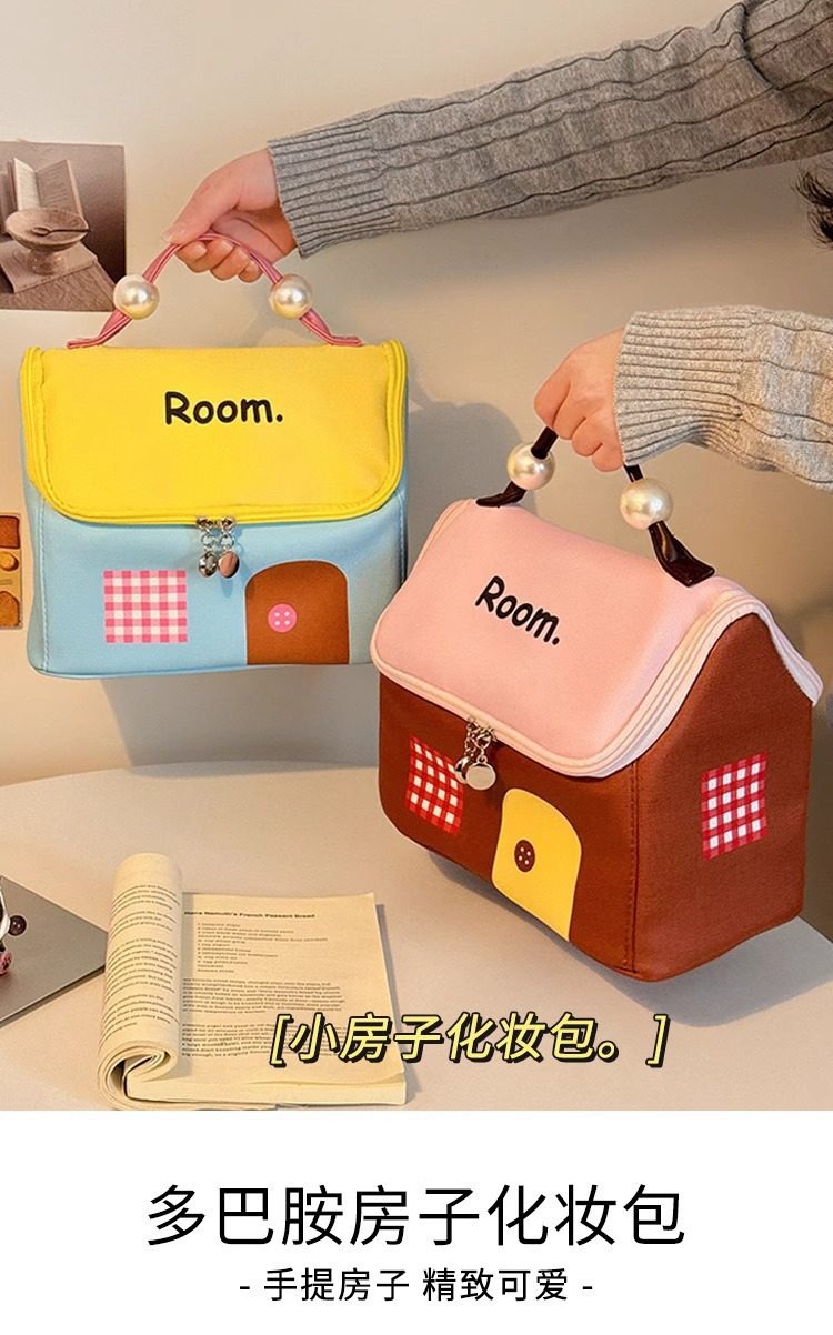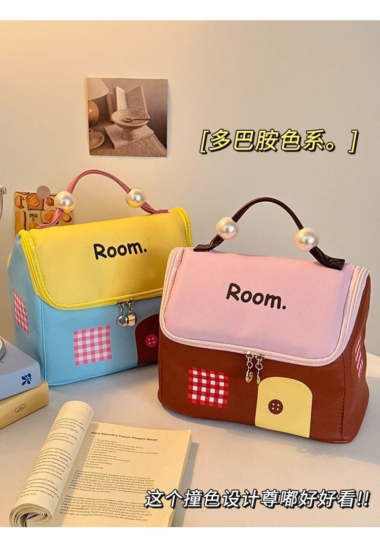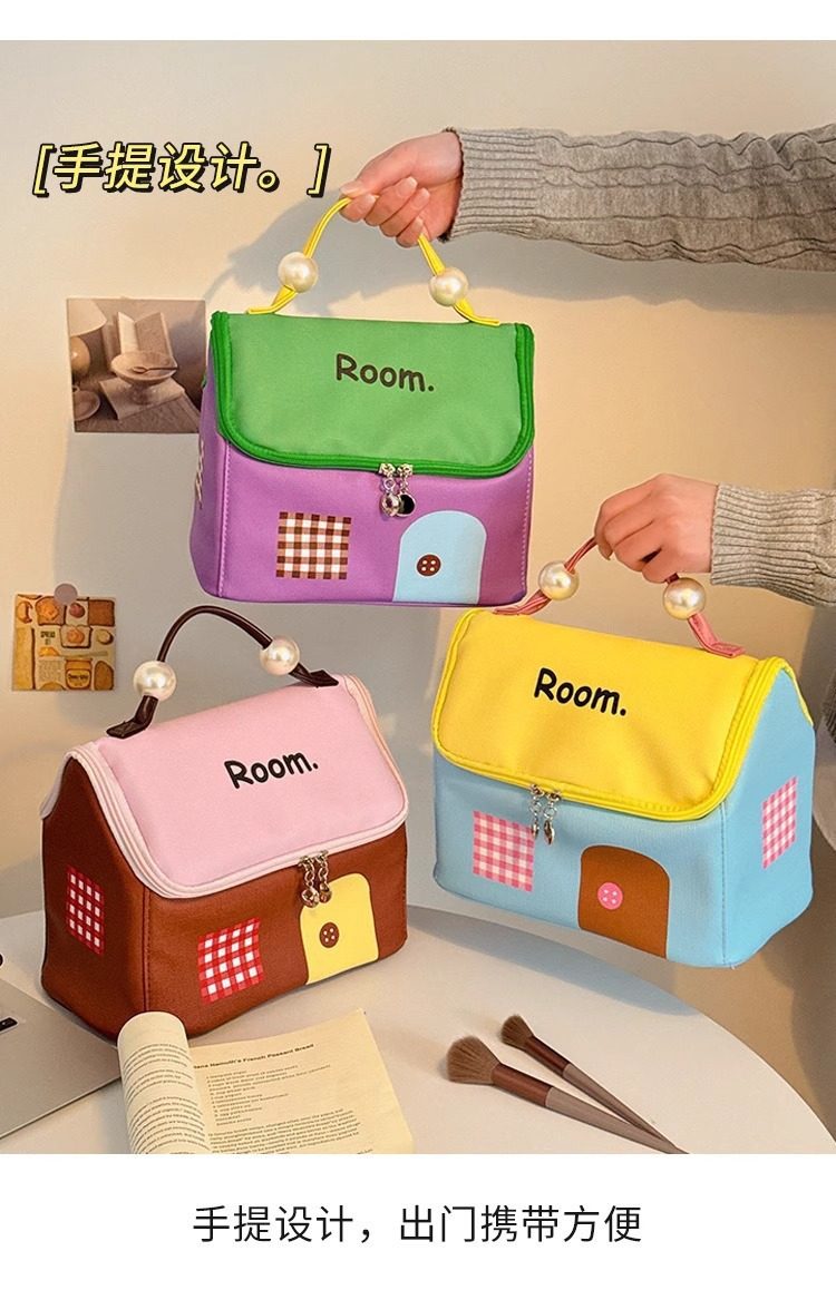 New Small House Cosmetic Bag Dopamine Color Large Capacity Partition Travel Portable Travel Toiletry Bag Waterproof