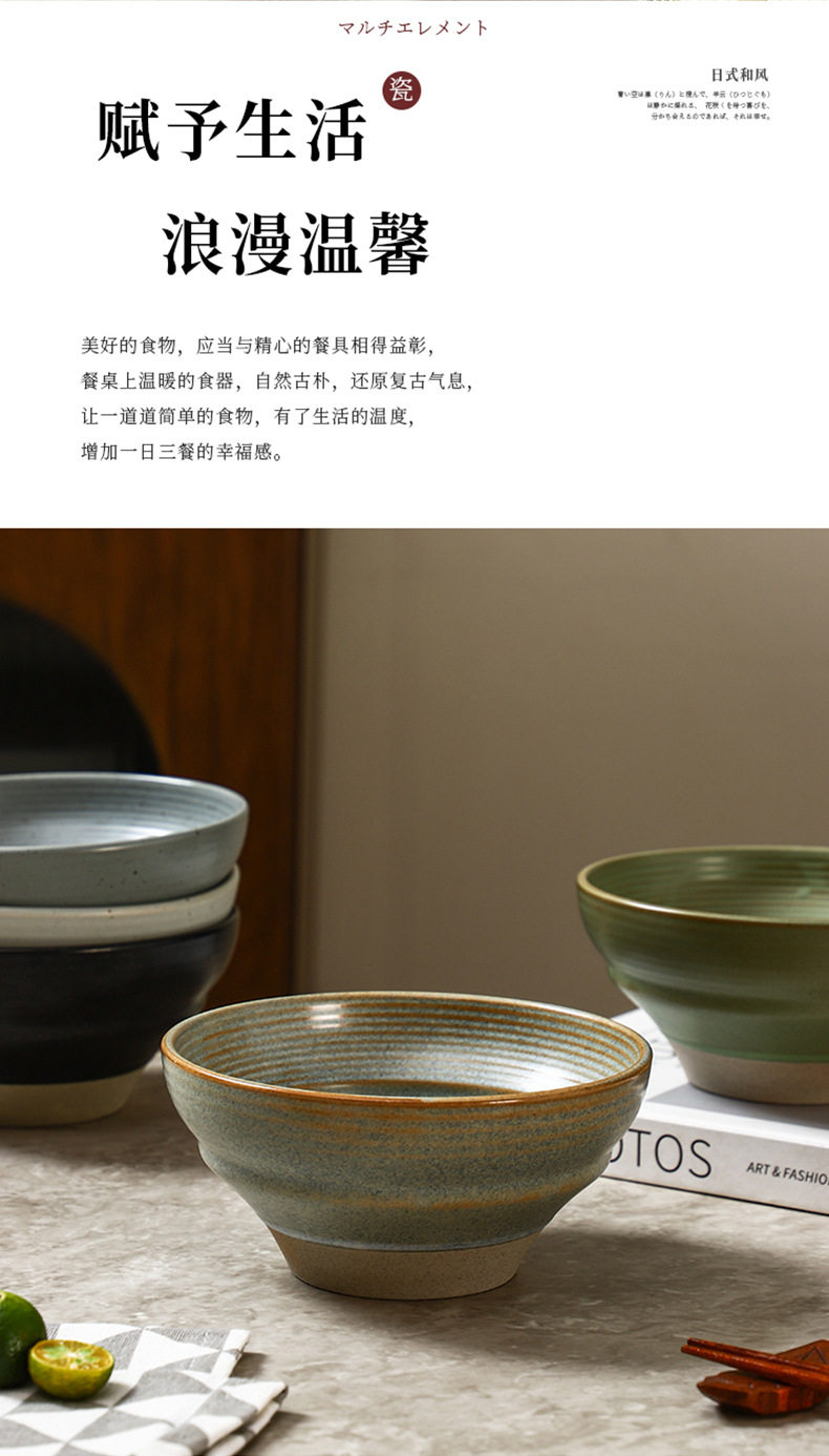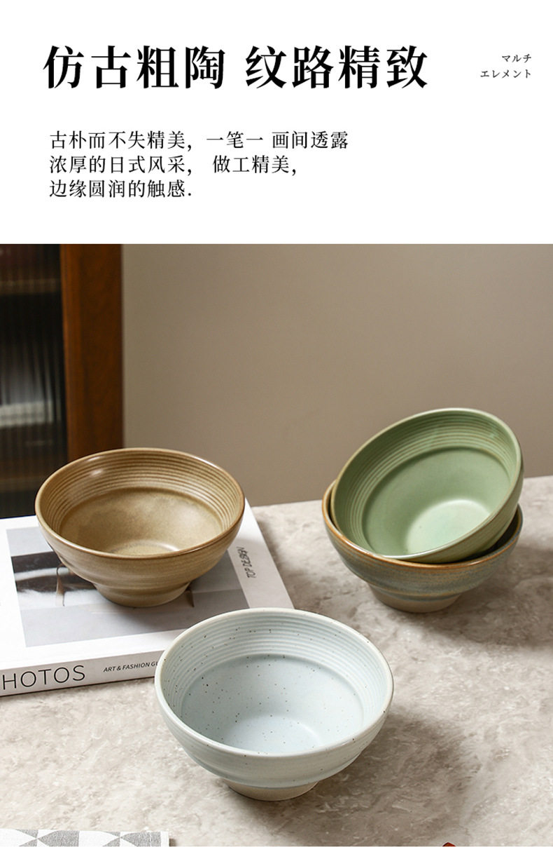 Japanese Stoneware Rice Bowl Ceramic Soup Bowl Commercial Creative Tableware Wholesale Household Eating Bowl Retro Snack Dessert Bowl