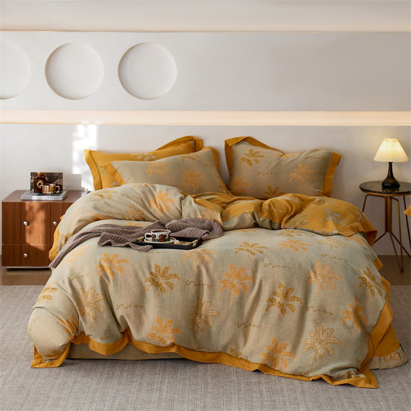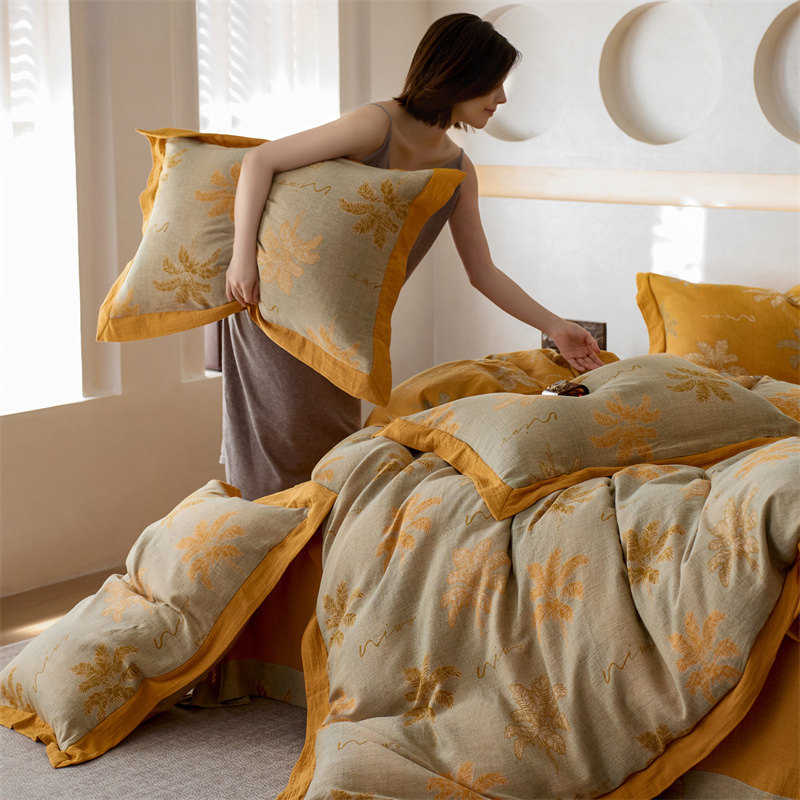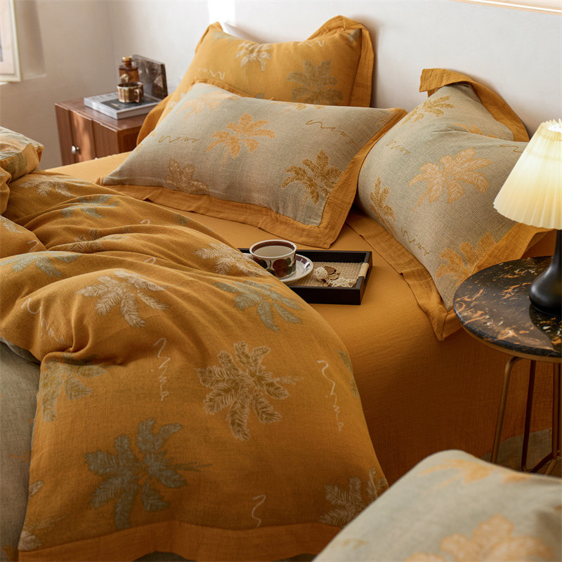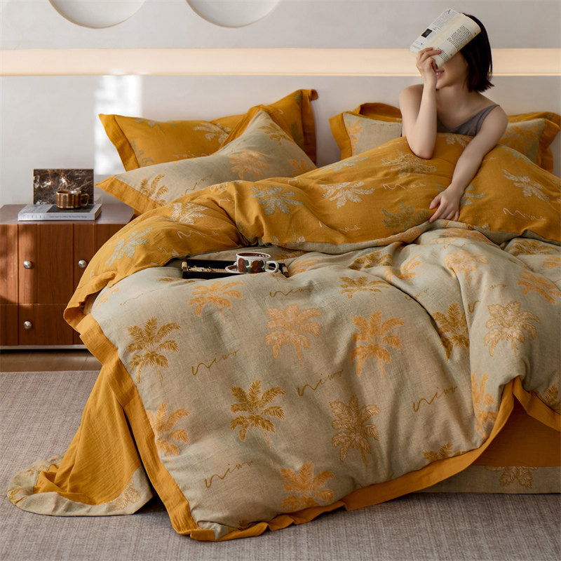 Retro Class a Maternal and Infant Grade 60-Count High-End Cotton Double-Layer Yarn Four-Piece Set 100 Pure Cotton Gauze Quilt Cover Bedding