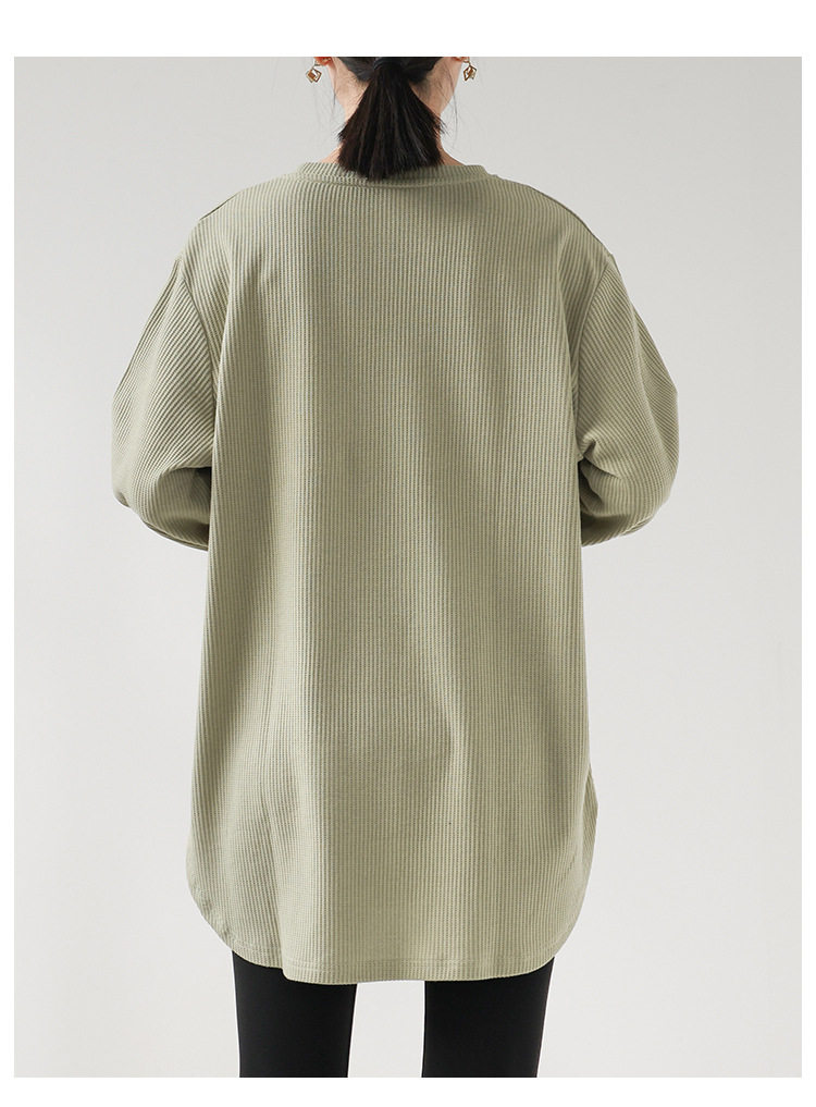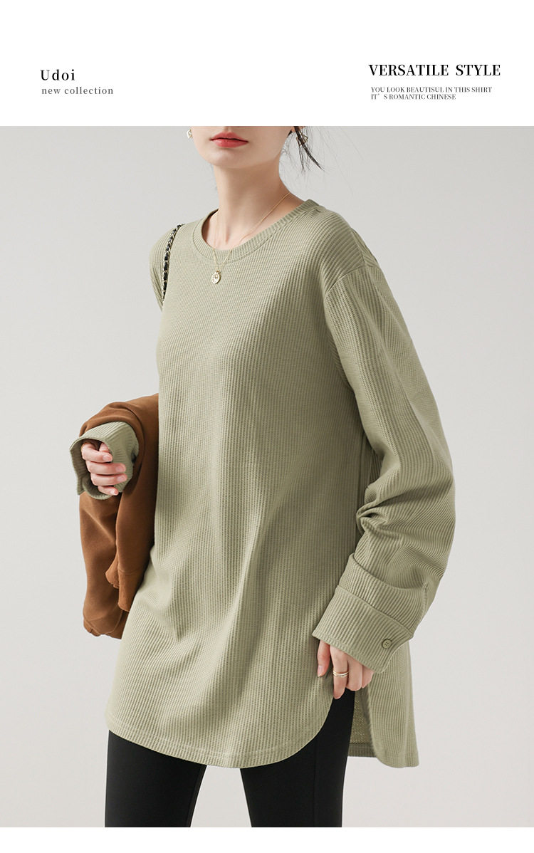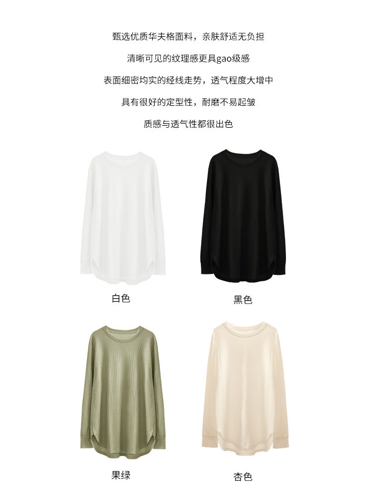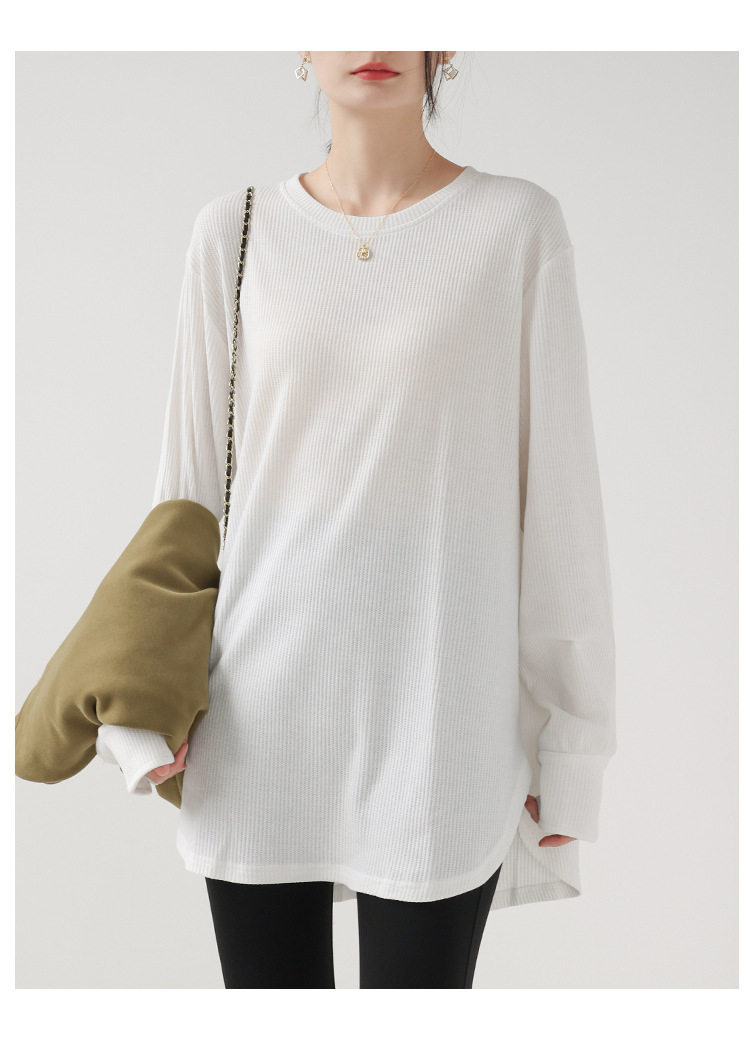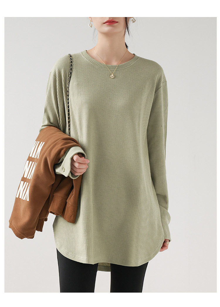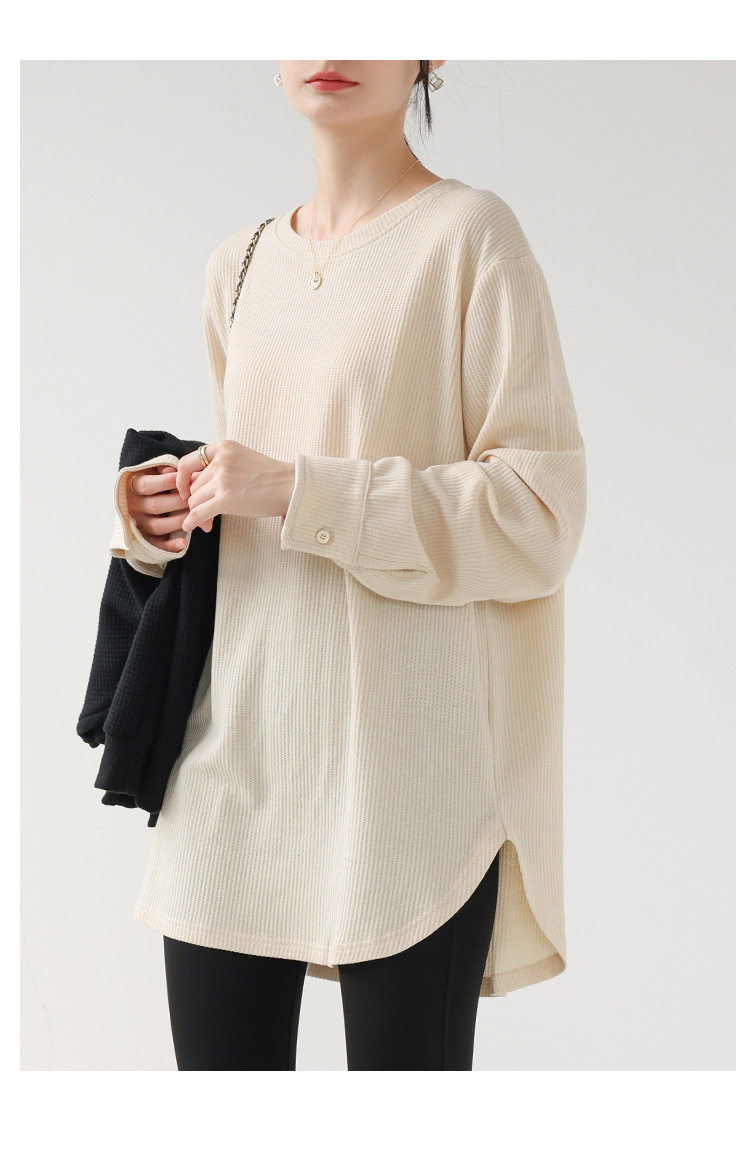 Waffle Butt-Covering Long-Sleeved T-Shirt for Women in Spring & Fall, Pregnant Women's Inner Arc Top, Mid-Length Loose Bottoming Shirt