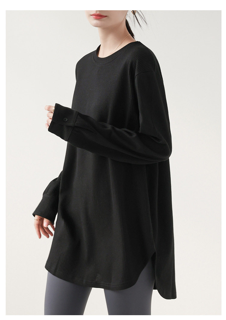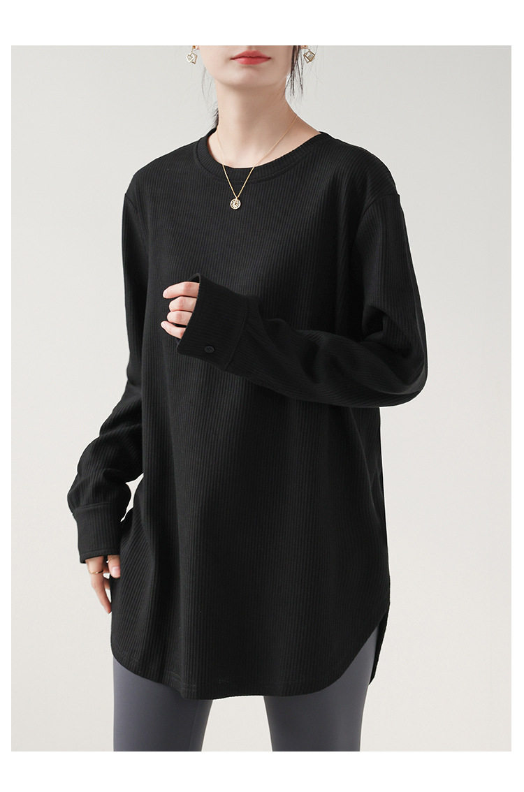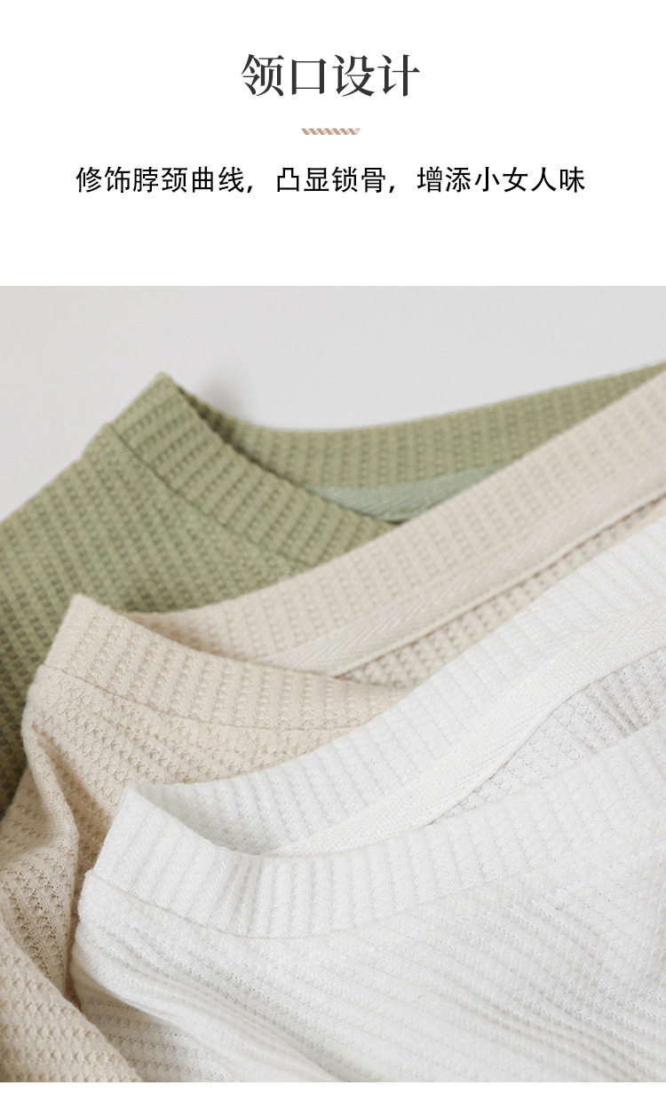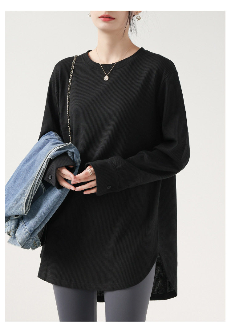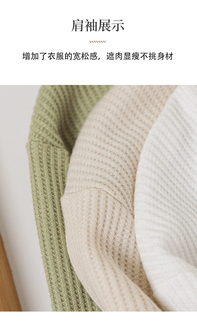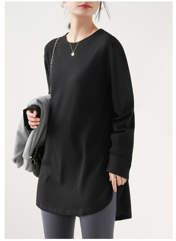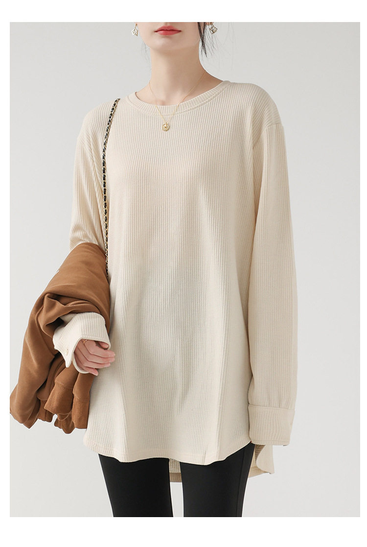 Waffle Butt-Covering Long-Sleeved T-Shirt for Women in Spring & Fall, Pregnant Women's Inner Arc Top, Mid-Length Loose Bottoming Shirt