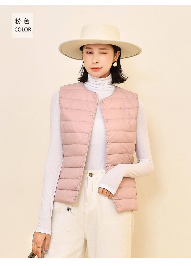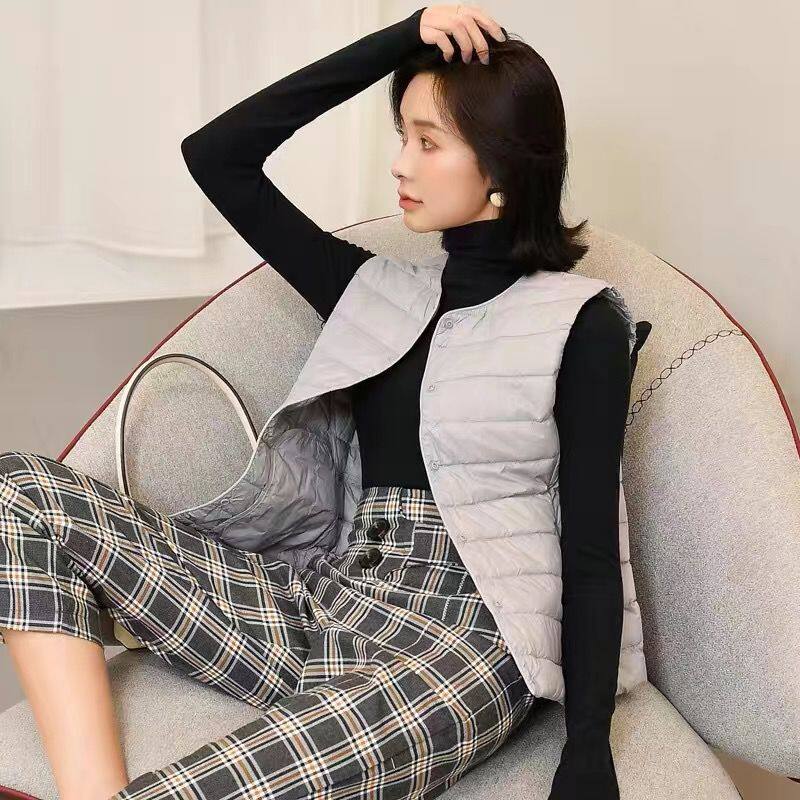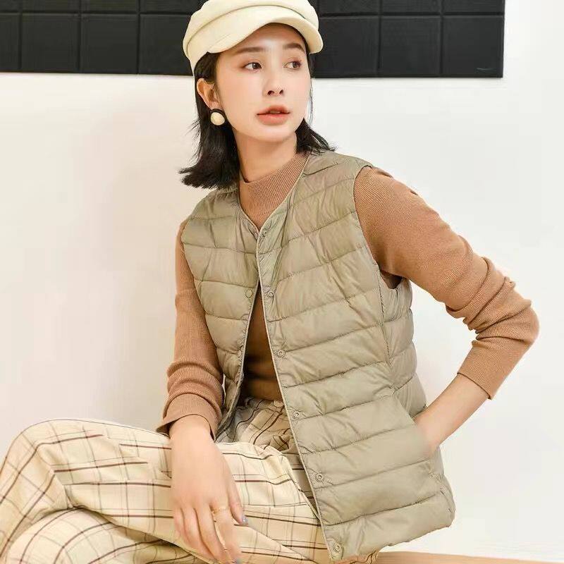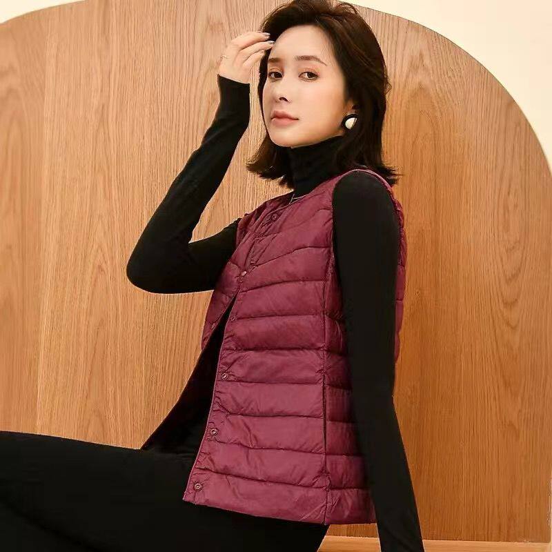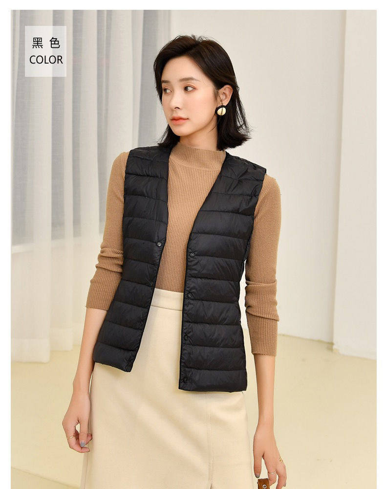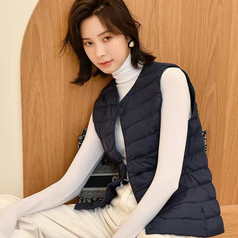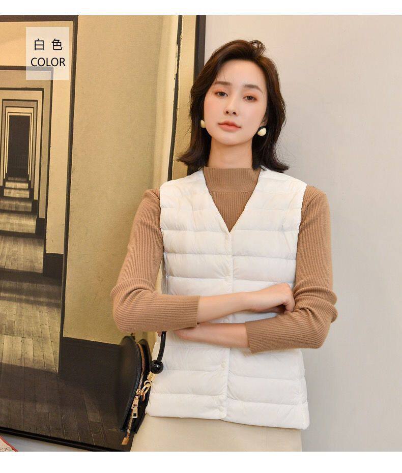 Autumn and Winter New Lightweight down Jacket Women's Collarless down Liner Vest V Neck Warm Jacket Large Size Waistcoat Vest