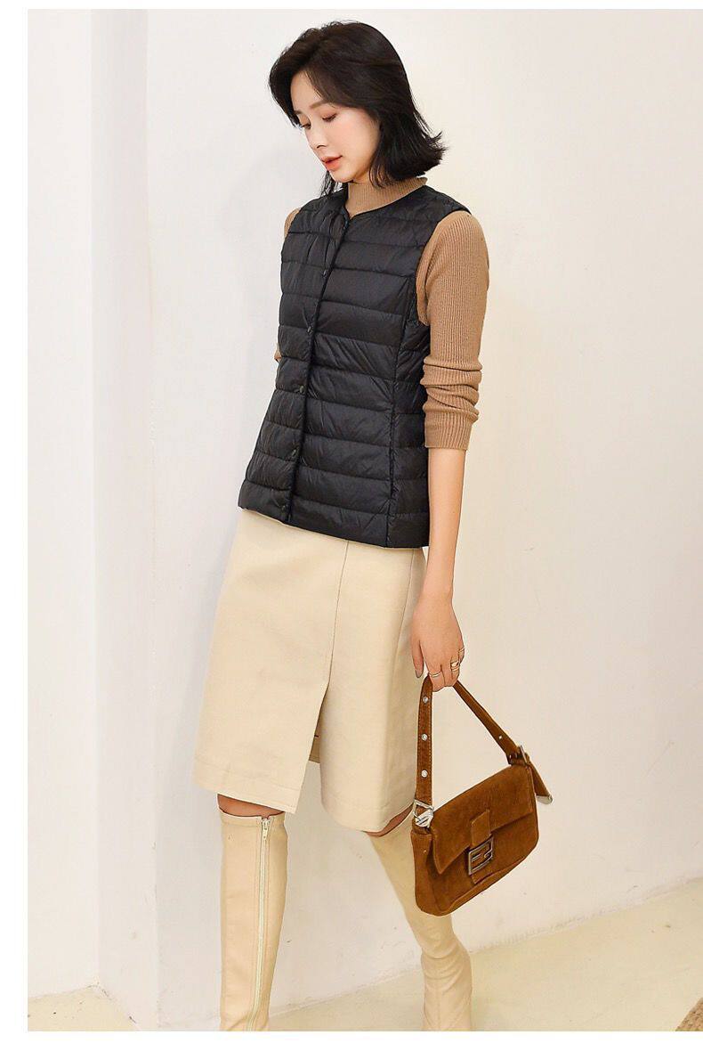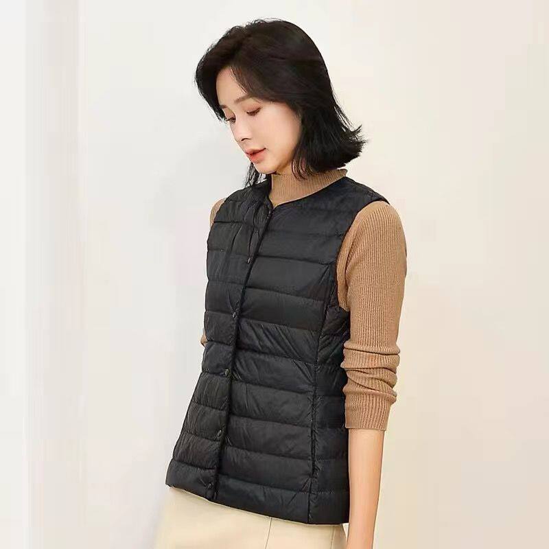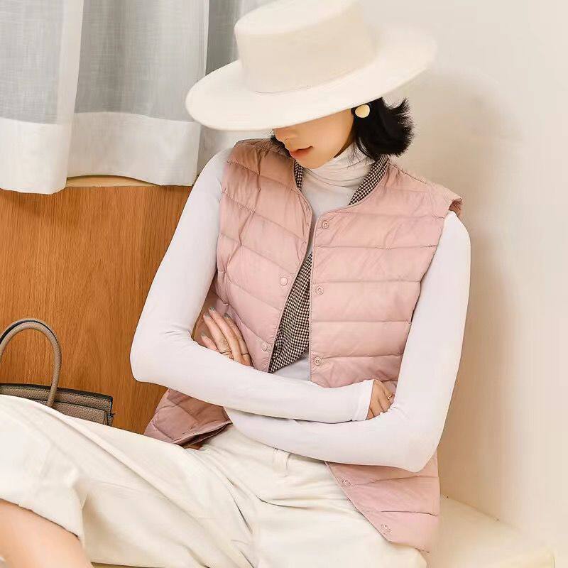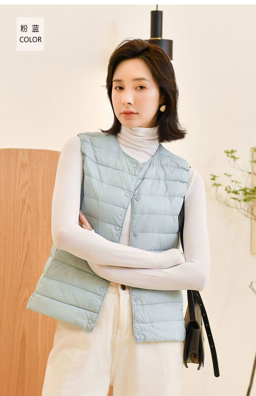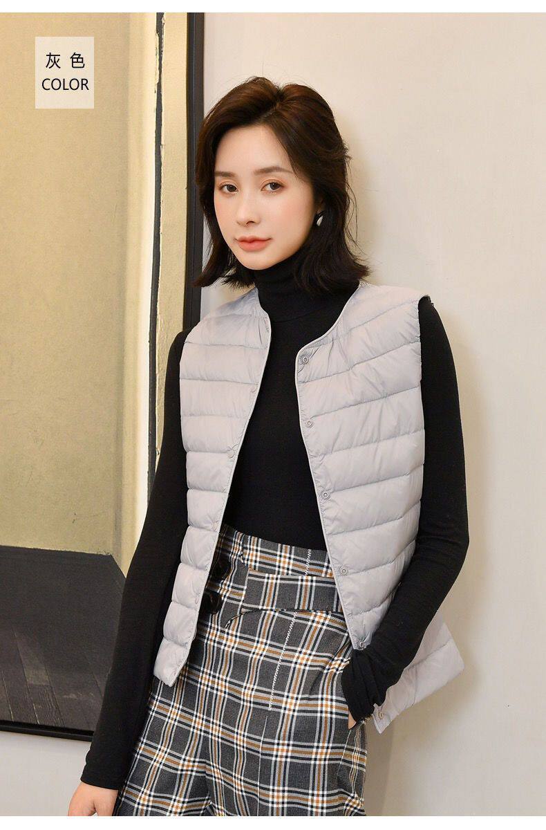 Autumn and Winter New Lightweight down Jacket Women's Collarless down Liner Vest V Neck Warm Jacket Large Size Waistcoat Vest