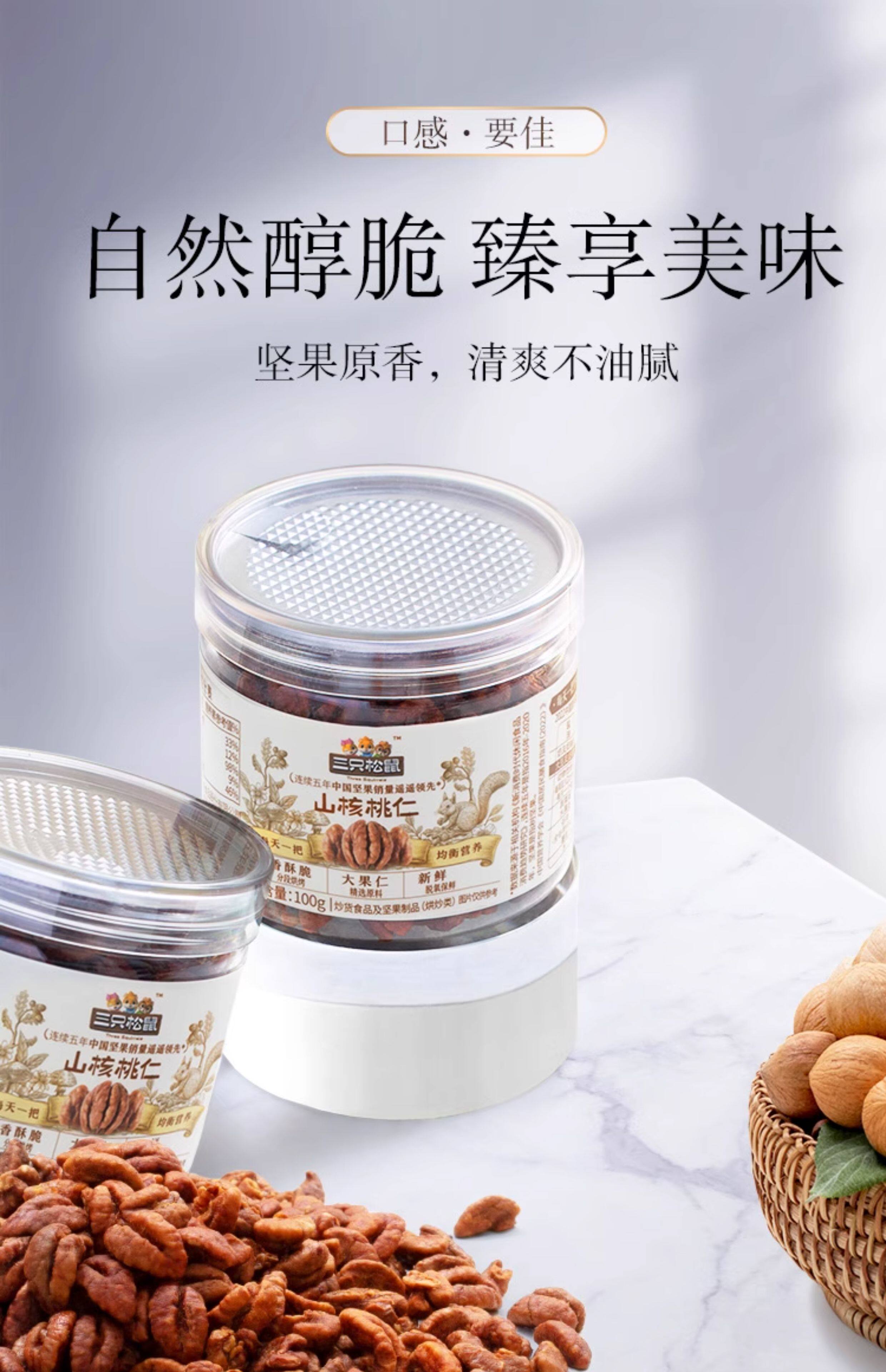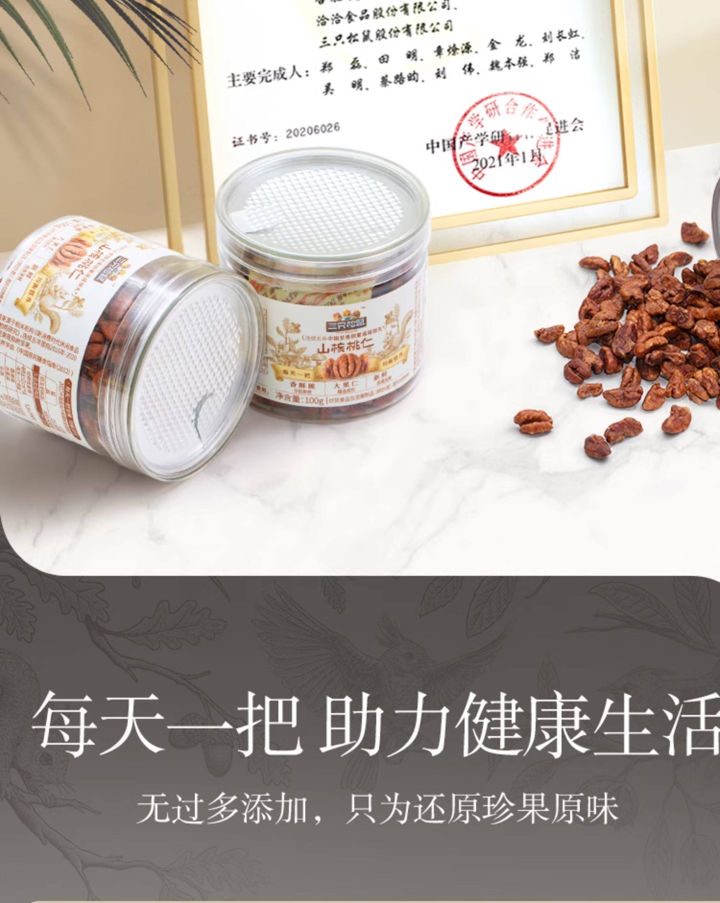 [Three Squirrels_Canned Pecan Kernels 100g] Snack Specialty Nuts Roasted Seeds and Dried Fruits