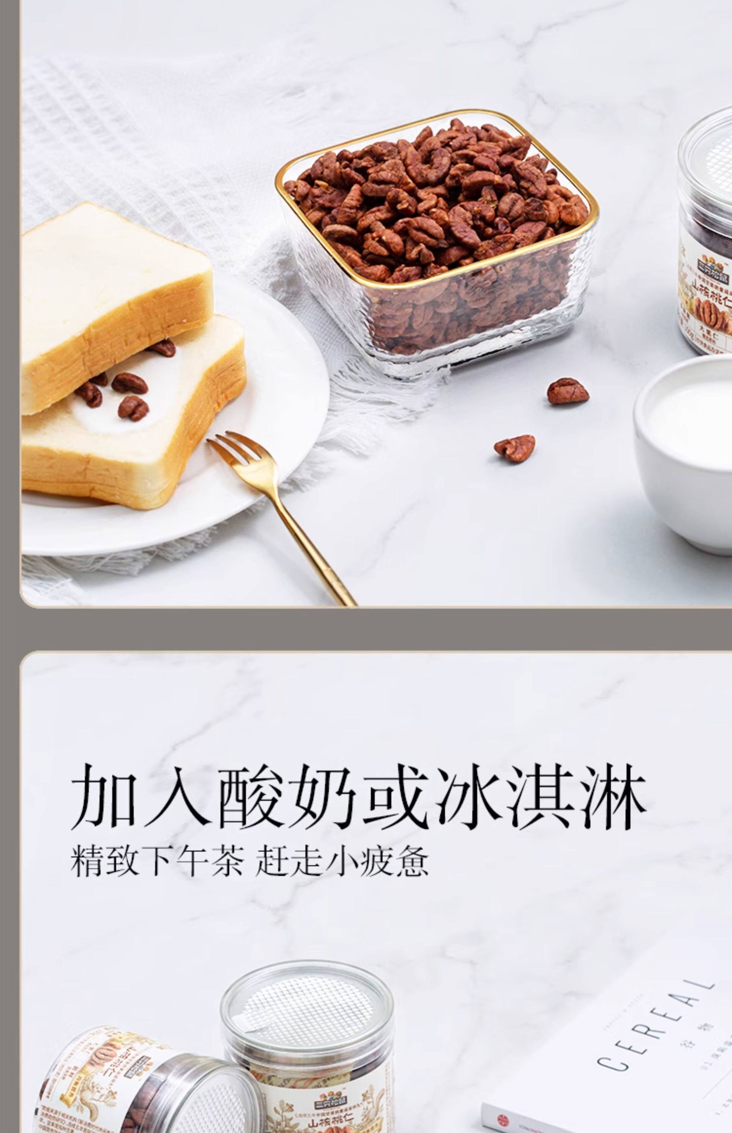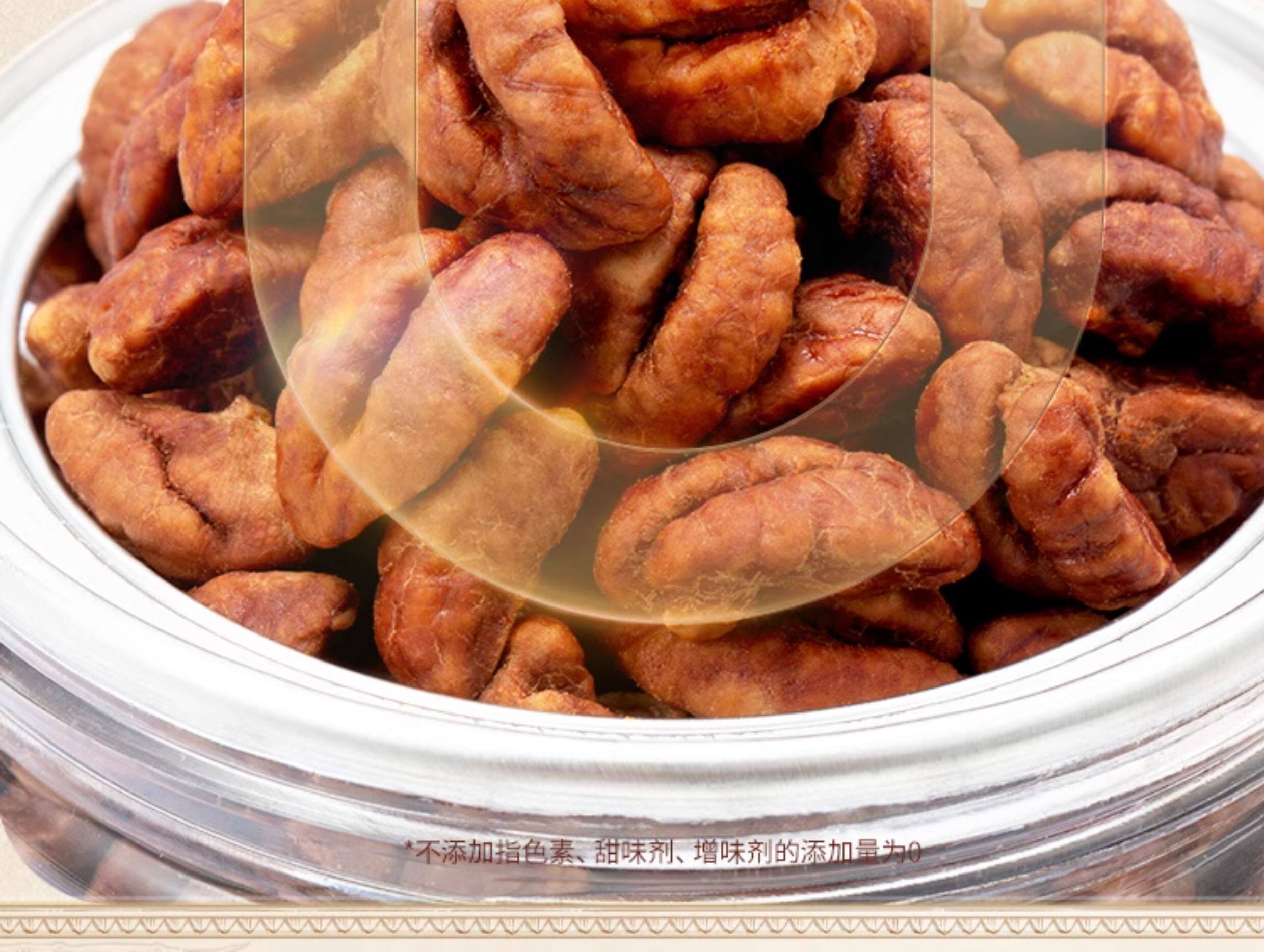 | Packaging specifications | [wild pecan kernels 100gx1 can] early adopter pack,[wild pecan kernels 100gx3 cans] main recommendation,[wild pecan kernels 100gx5 cans] stock up on money |