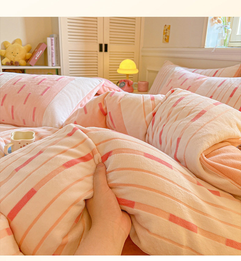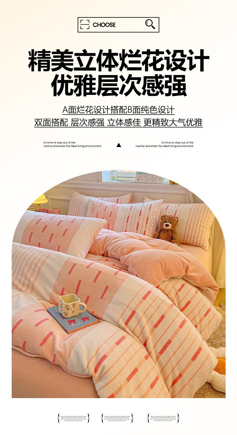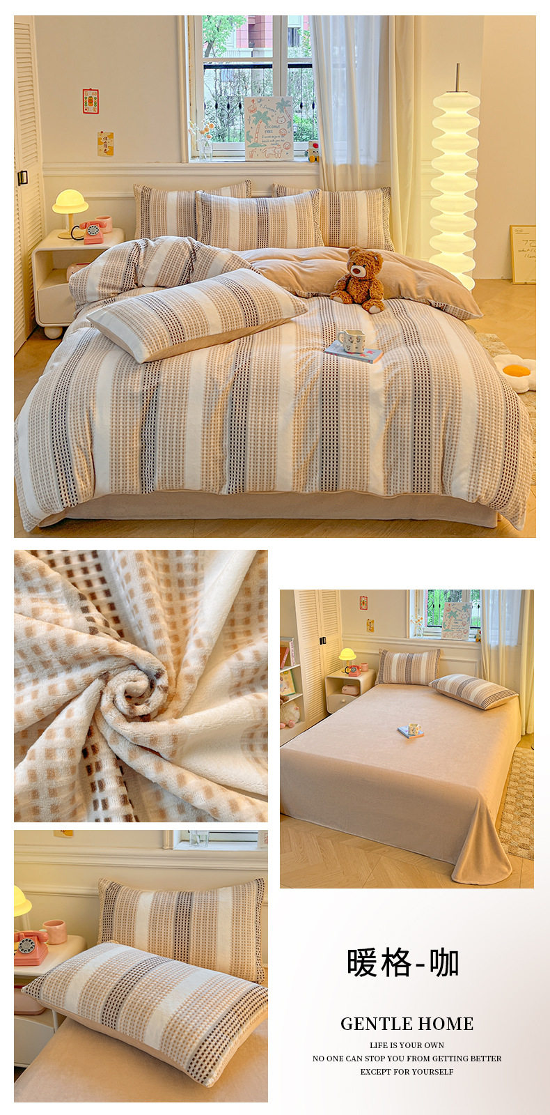 New Milk Velvet Burnt Four-Piece Set, Skin-Friendly Thickeneded Winter Warm Fleece-Lined Double-Sided Bed Bed Sheetss and Quilt Covers Bedding