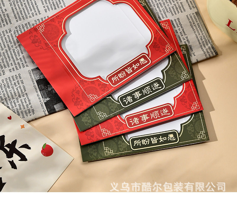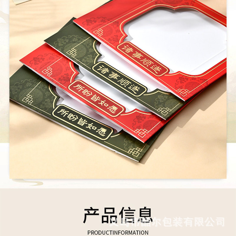 | Specifications and models | Red window-everything goes well;9*9*2cm,Red window-all goes well;11*11*2cm,Red window - everything you wish for comes true; 9*9*2cm,Red window-opening everything you wish for; 11*11*2cm,Green window-everything goes well;9*9*2cm,Green window-everything goes well;11*11*2cm,Green window-opening everything you wish for; 9*9*2cm,Green window-opening everything you wish for; 11*11*2cm,Fu character bottom - peace and joy; 9*9*2cm,Fu character bottom - peace and joy; 11*11*2cm,Fu character bottom - peace and joy; 7*7*2cm,Fu character bottom - everything goes well; 9*9*2cm,Fu character bottom - everything goes well; 11*11*2cm,Fu character bottom - everything goes well; 7*7*2cm,Bottom with word "福" - all your wishes come true 9*9*2cm,Bottom with word "福" - all your wishes come true 11*11*2cm,Bottom with word "福" - all your wishes come true 7*7*2cm,Hot stamping and embossing-all goes well; 9*9*2cm,Hot stamping and embossing-all goes well;11*11*2cm,Hot stamping and embossing-all goes well;7*7*2cm,Hot stamping and embossing-peace and joy;9*9*2cm,Hot stamping and embossing-peace and joy; 11*11*2cm,Hot stamping and embossing-peace and joy;7*7*2cm,Hot stamping and embossing-all your wishes come true; 9*9*2cm,Hot stamping and embossing-all your wishes come true; 11*11*2cm,Hot stamping and embossing-all your wishes come true; 7*7*2cm,Hot stamping and embossing-good luck; 9*9*2cm,Hot stamping and embossing-good luck; 11*11*2cm,Hot stamping and embossing-good luck; 7*7*2cm,Suspension box-red;9*9*2cm,Suspension box-red;11*11*2cm,Suspension box-red;7*7*2cm,Suspension box-green;9*9*2cm,Suspension box-green;11*11*2cm,Suspension box-green;7*7*2cm |