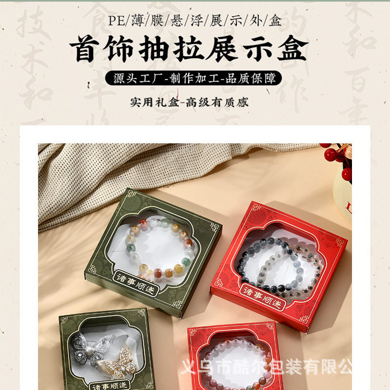 New Pull-Out Suspension Box Envelope Pe Film Box Paper Sleeve White Cardboard Hot Stamping Paper Sleeve Bracelet Packaging Wholesale