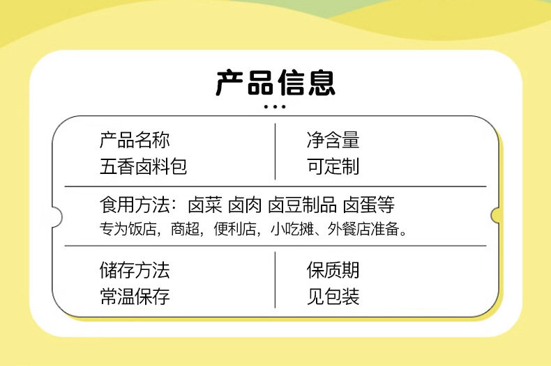 | Specifications | Five-spice marinade bag |