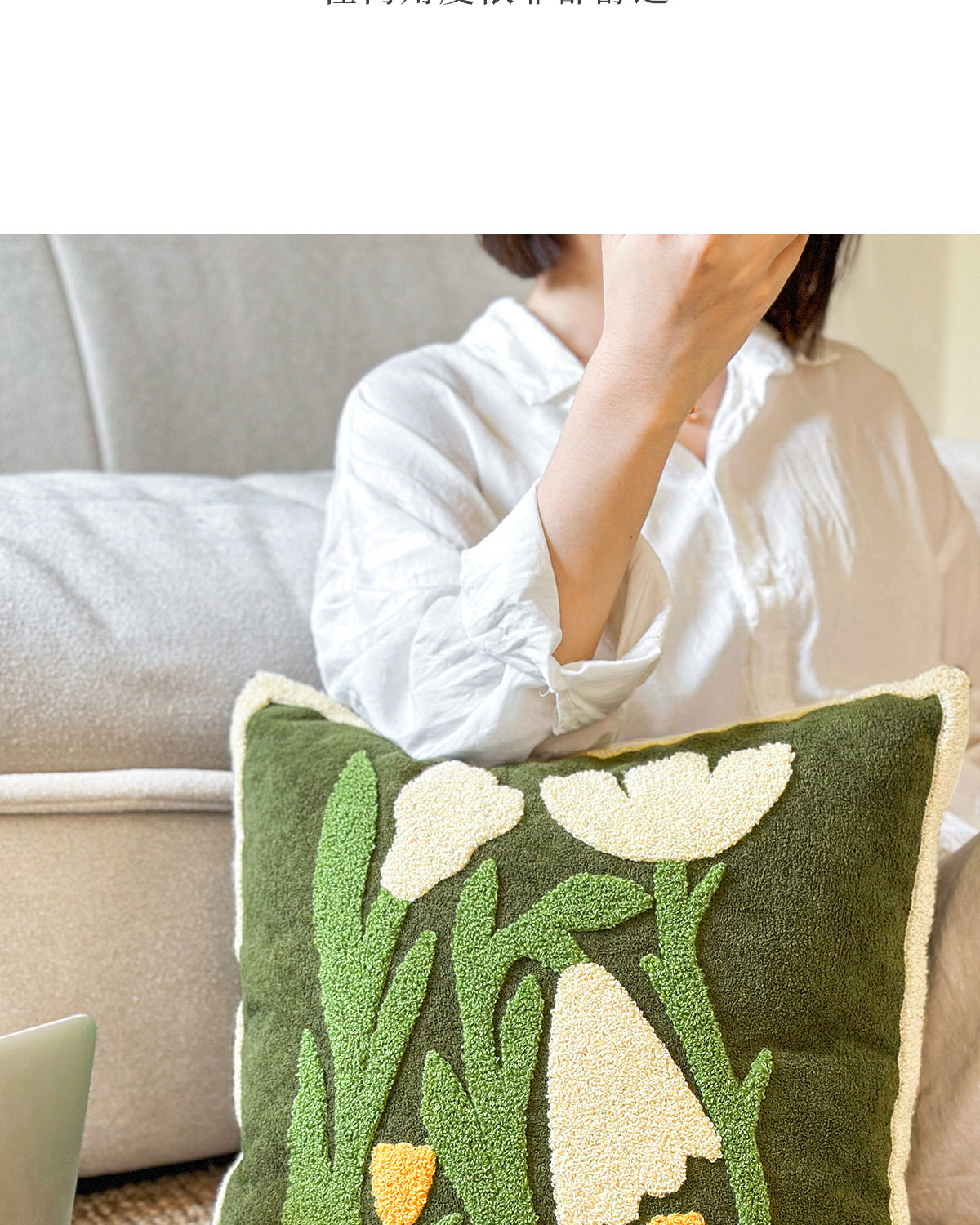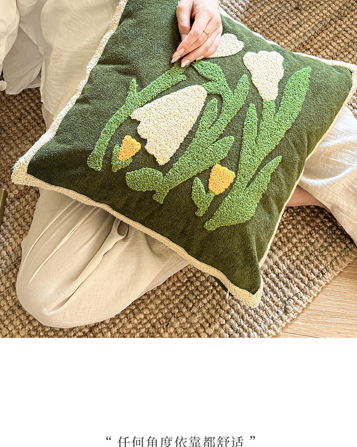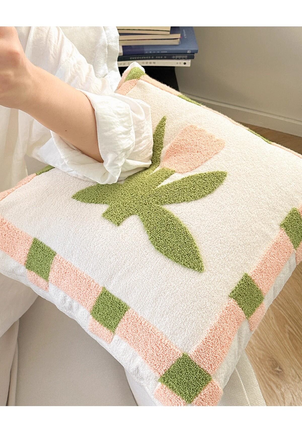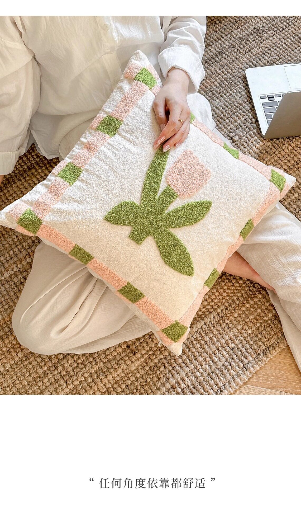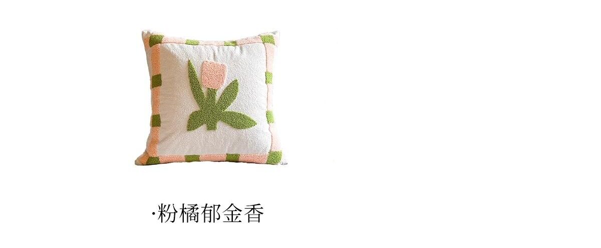 Cream Style Living Room Towel Embroidered Pillow Cushion Pink Flower Bedroom Bedside Cushion Lumbar Pillow Backrest Pillow Cover Included