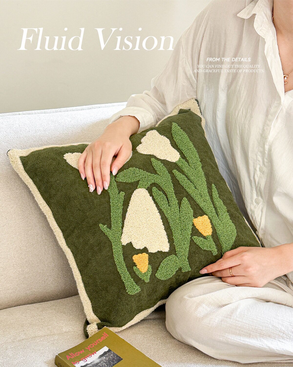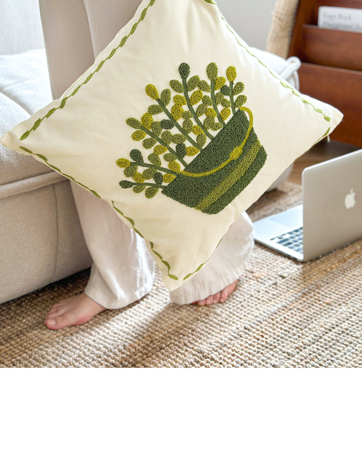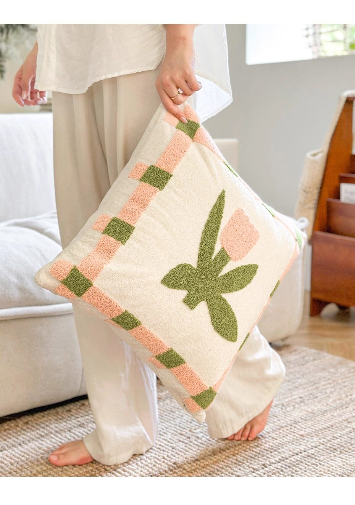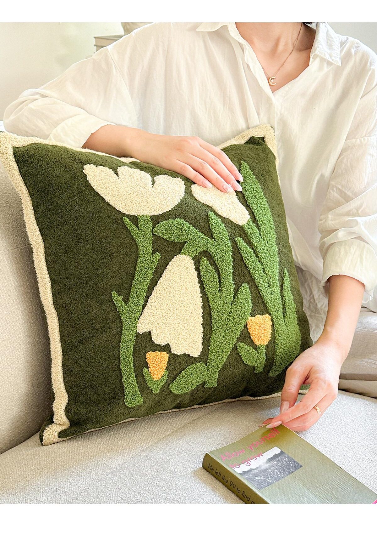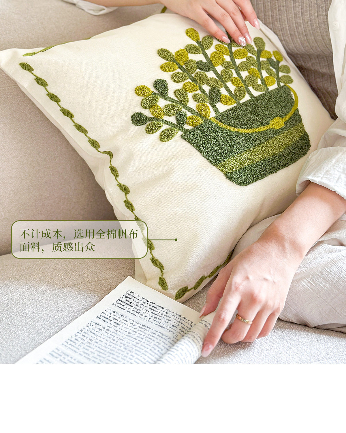 Cream Style Living Room Towel Embroidered Pillow Cushion Pink Flower Bedroom Bedside Cushion Lumbar Pillow Backrest Pillow Cover Included