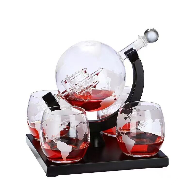 Manufacturer's Ready-Made Globe Wine Bottle Glass Decanter Built-In Sailboat Whiskey Bottle Wine Dispenser Gift Set
