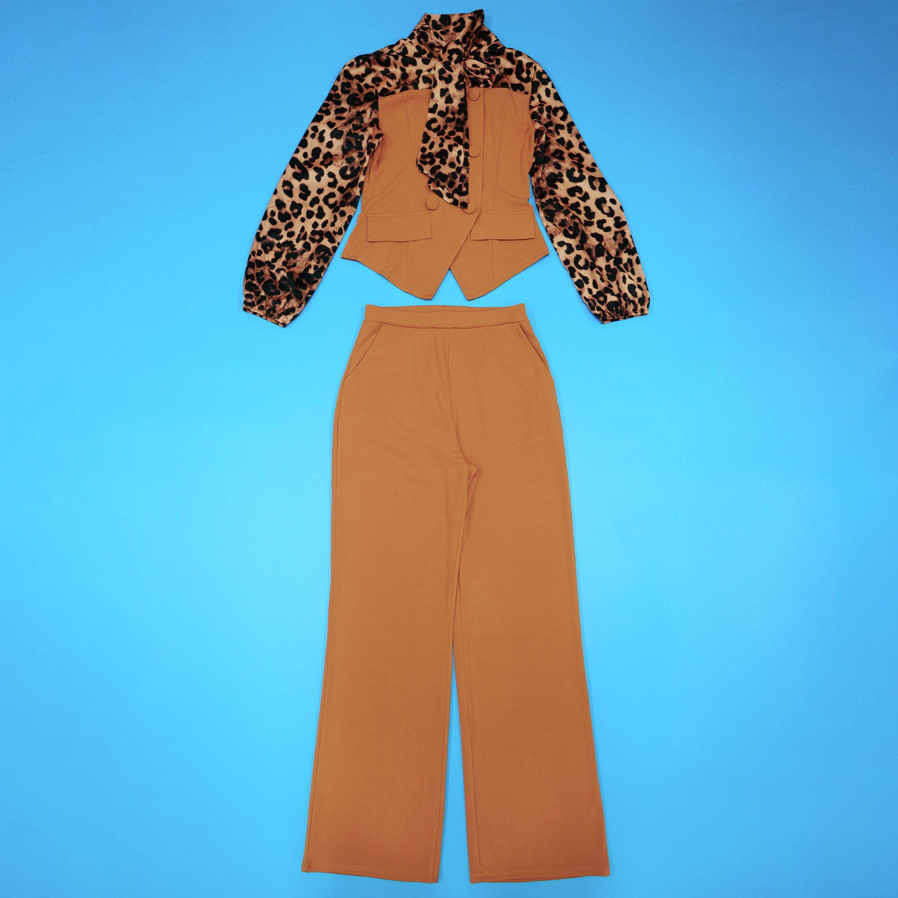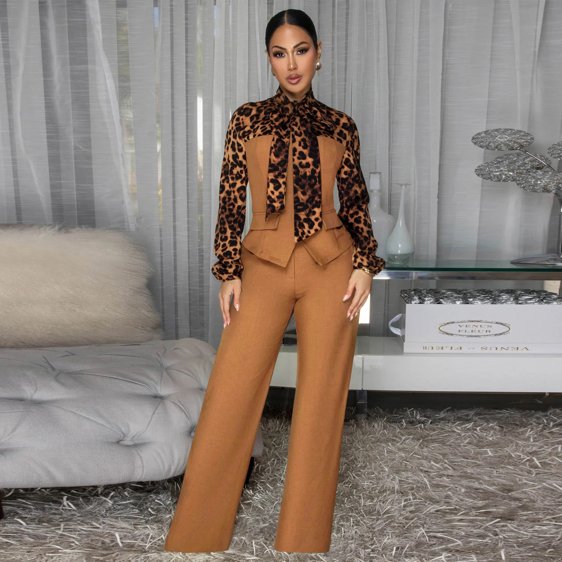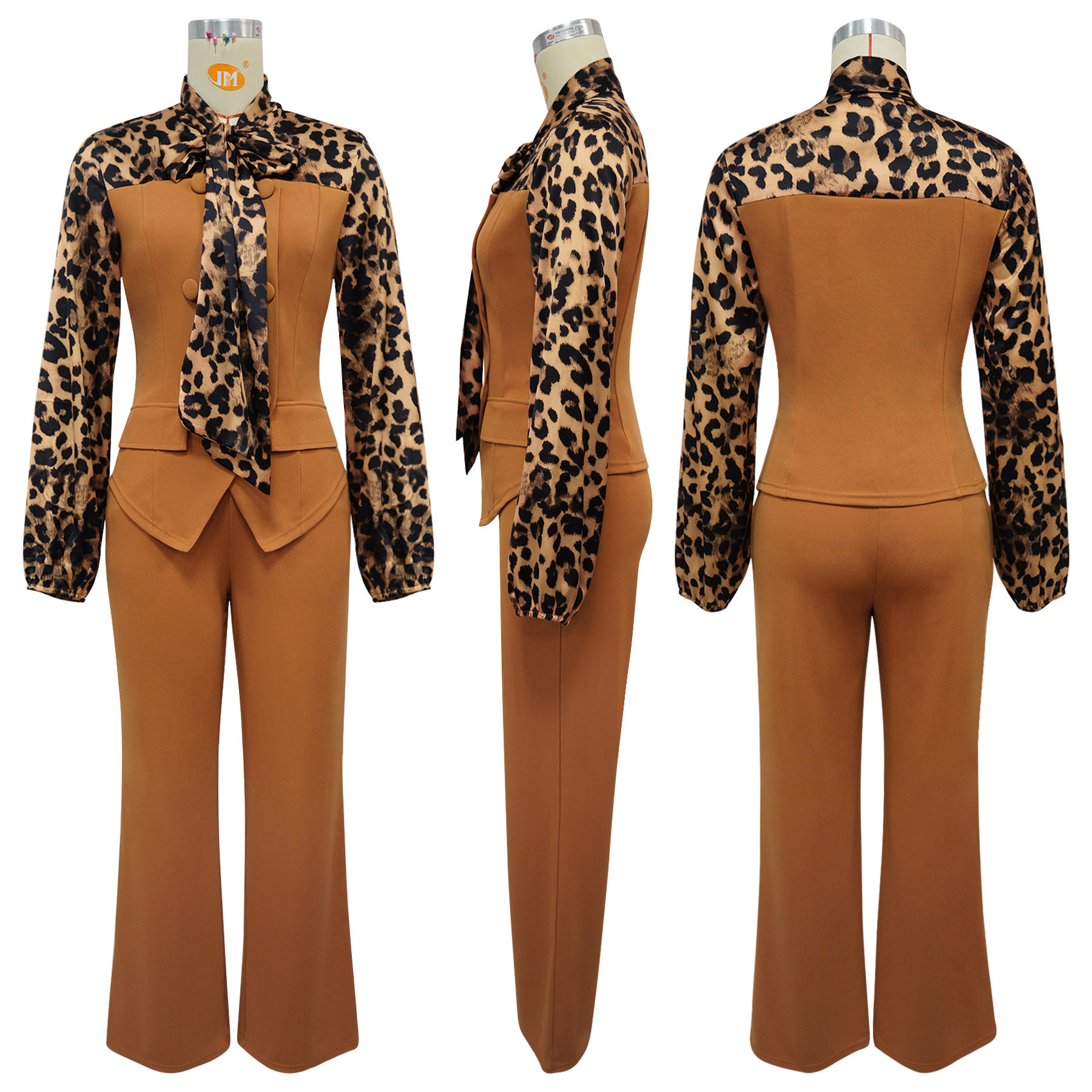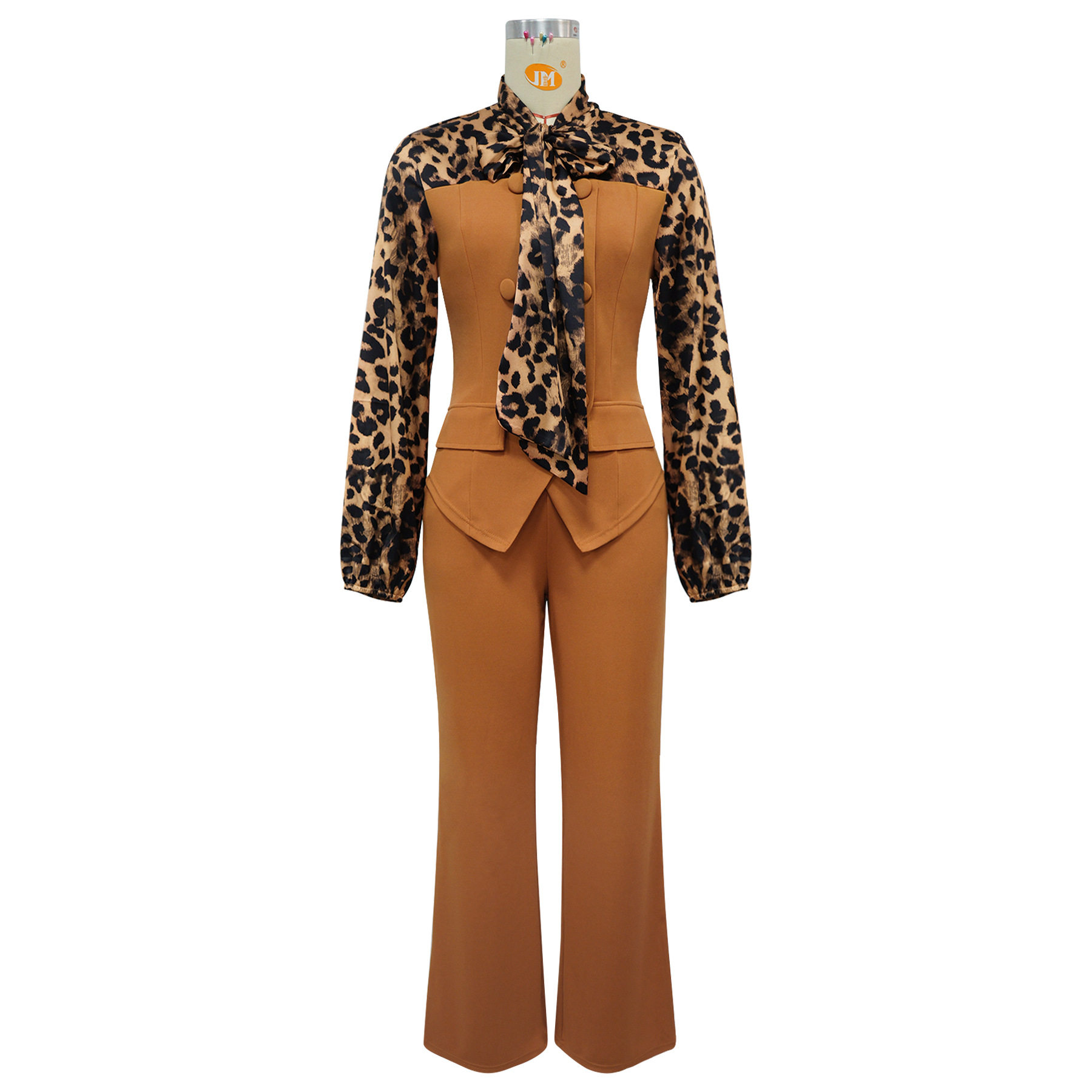 934 Cross-Border Exclusive Amazon Autumn Popular European and American Fashion Women's Leopard Print Tie Shirt Casual Set
