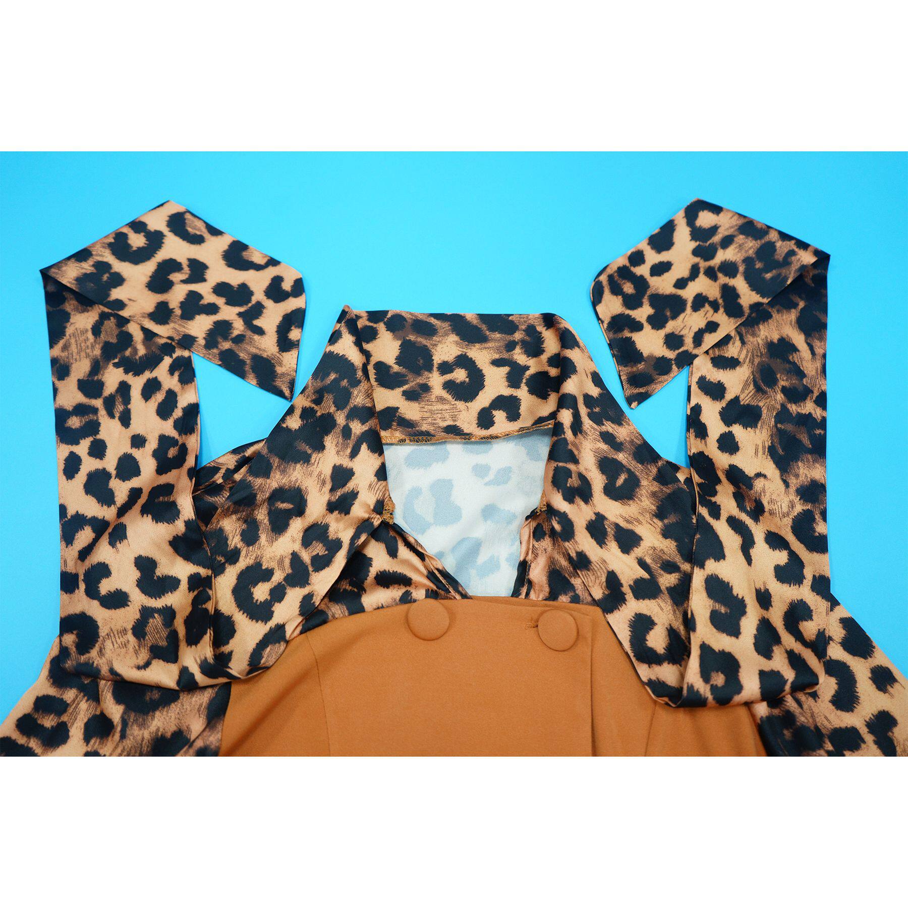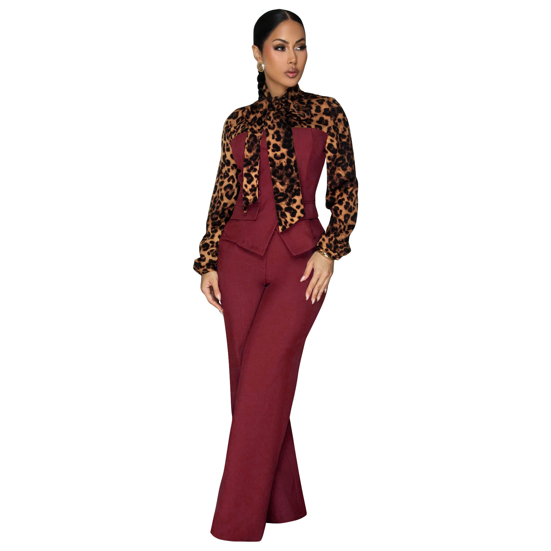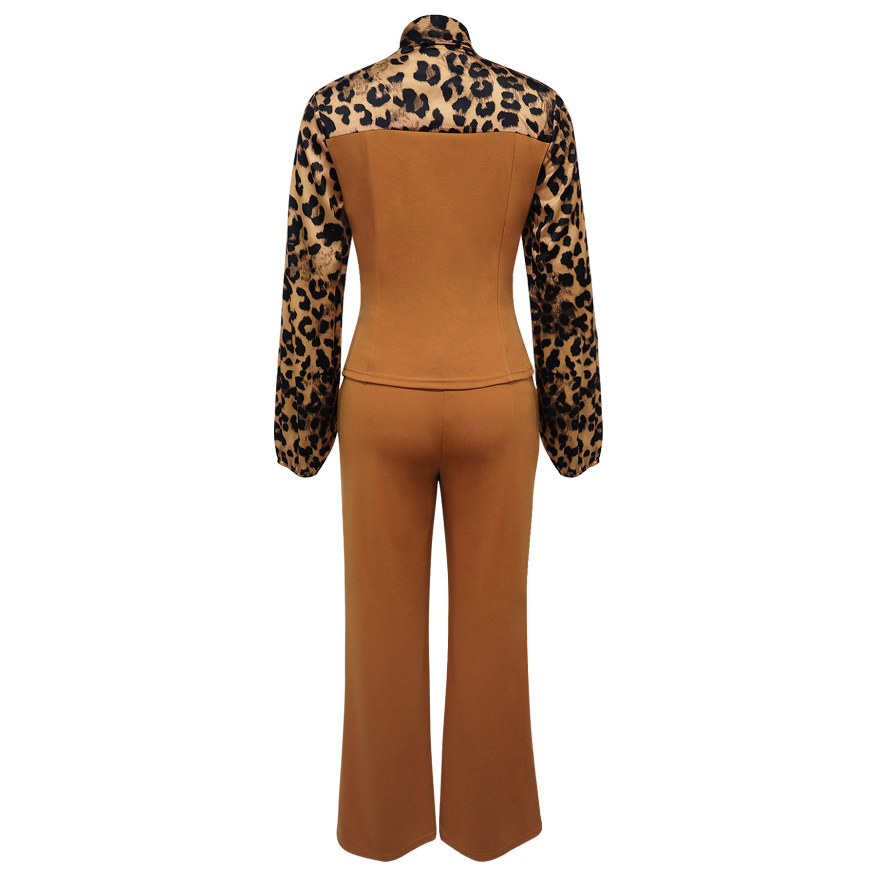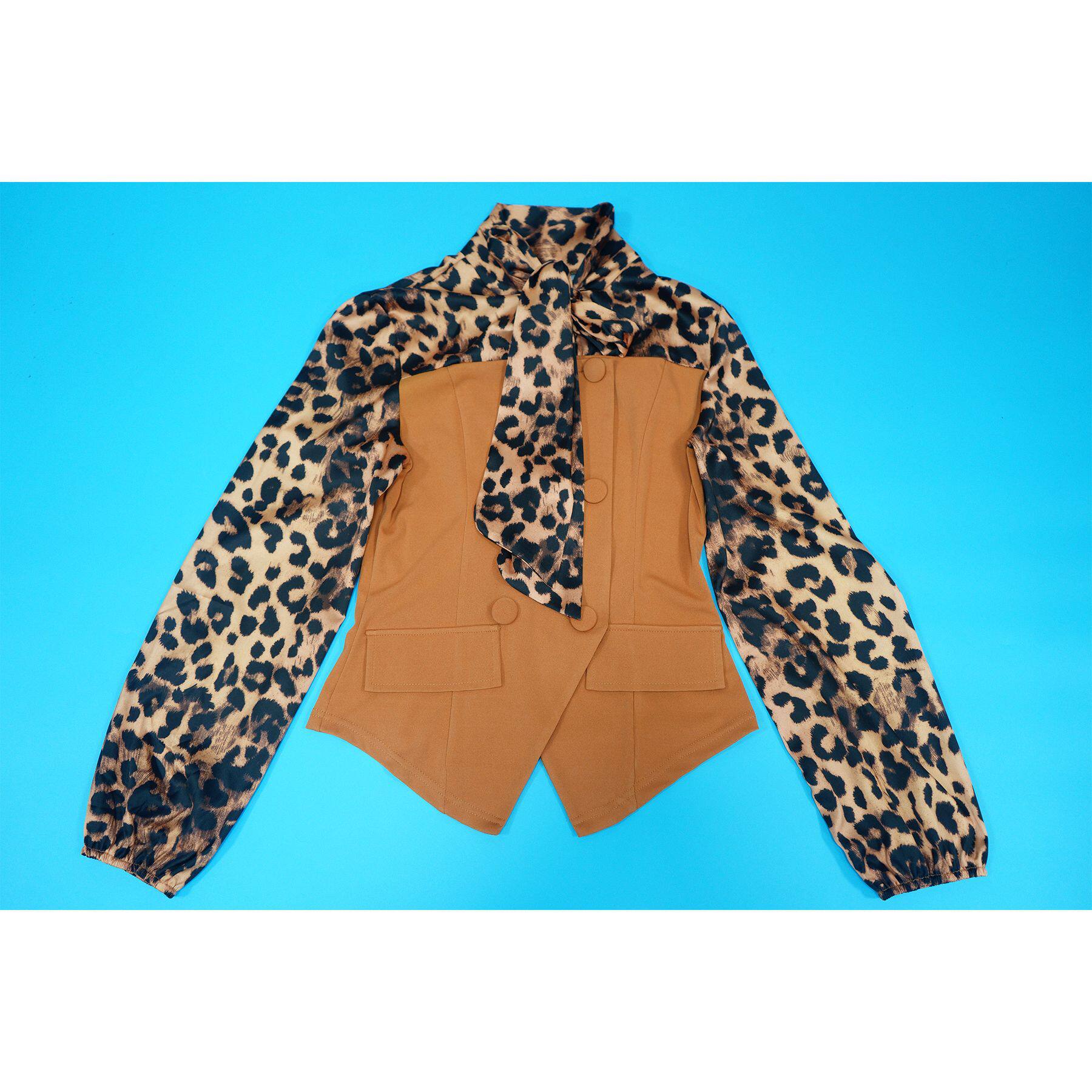 934 Cross-Border Exclusive Amazon Autumn Popular European and American Fashion Women's Leopard Print Tie Shirt Casual Set