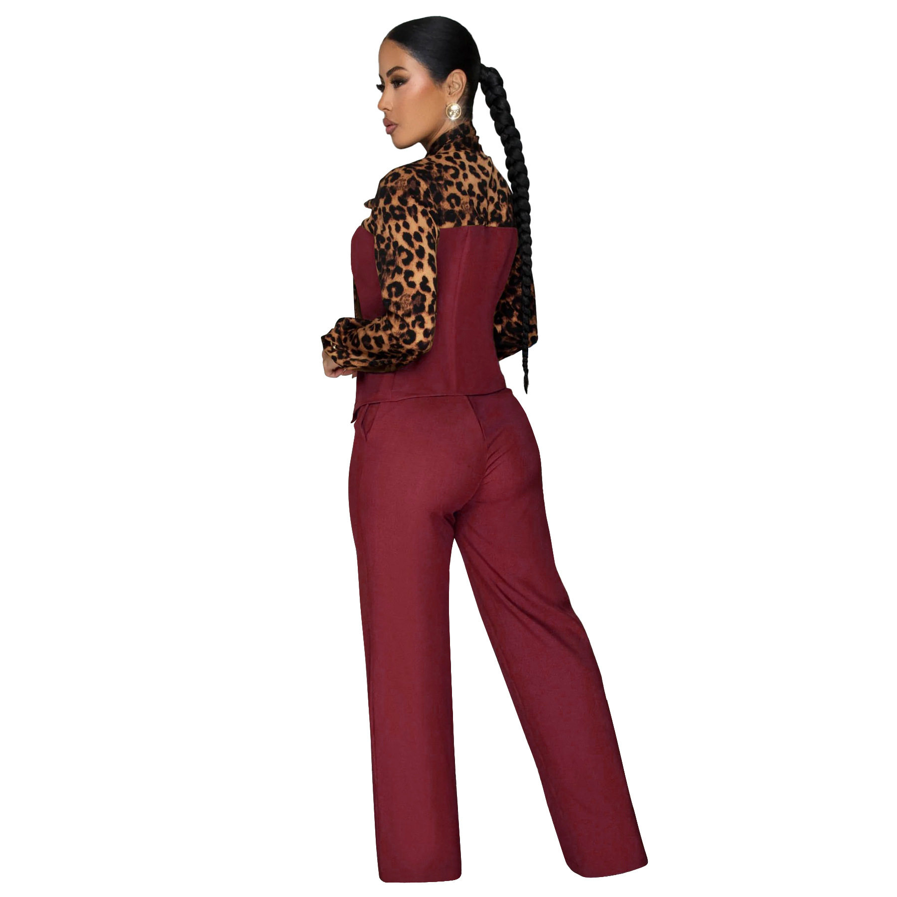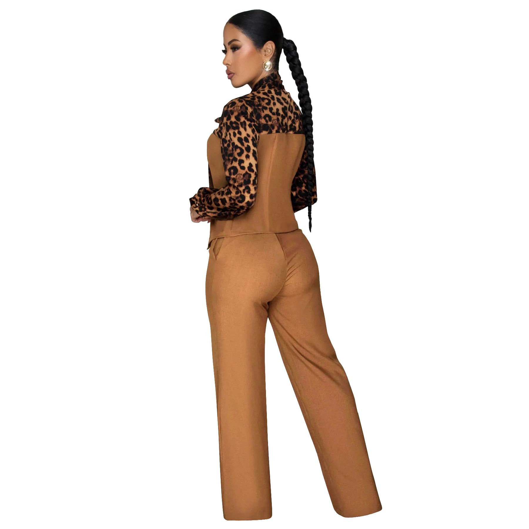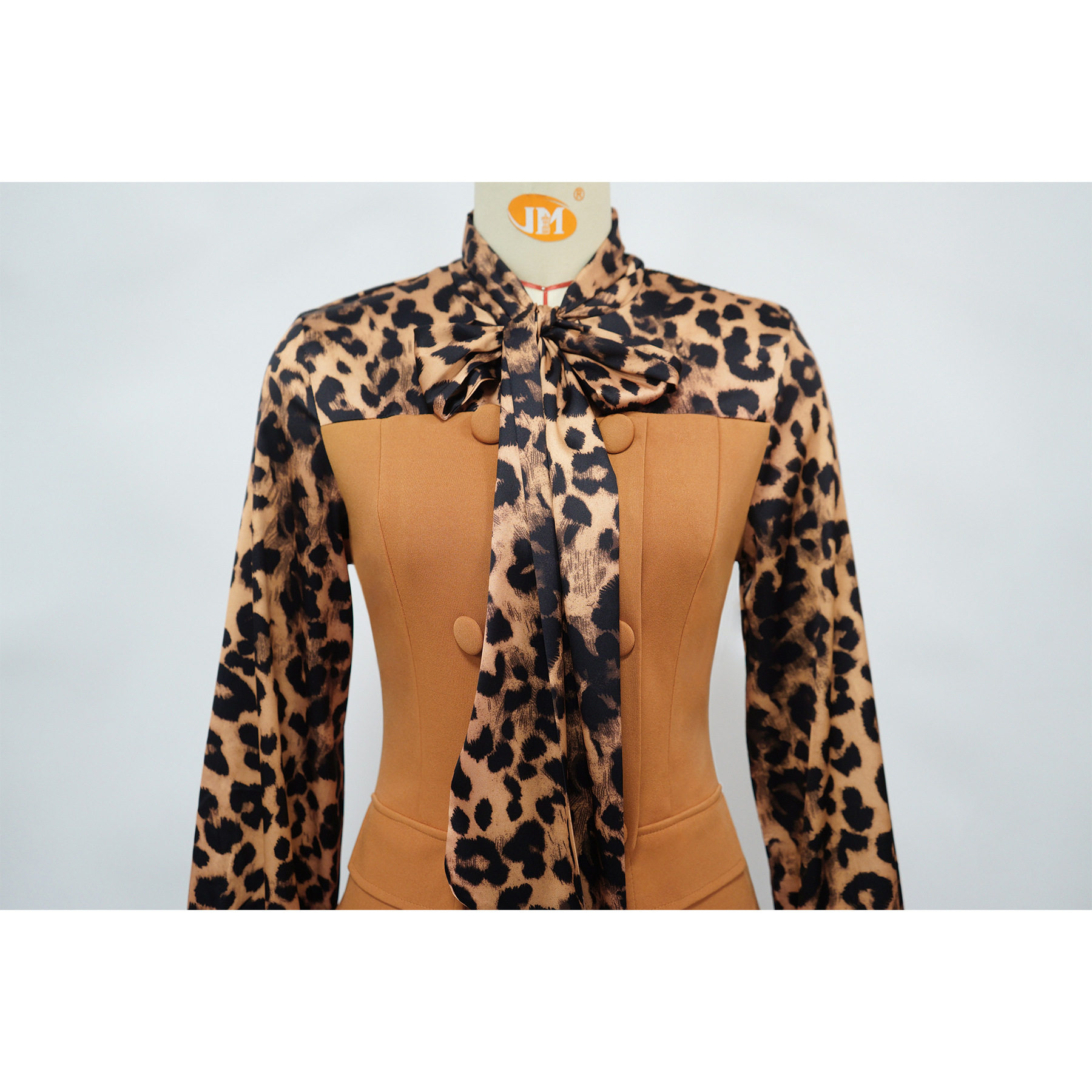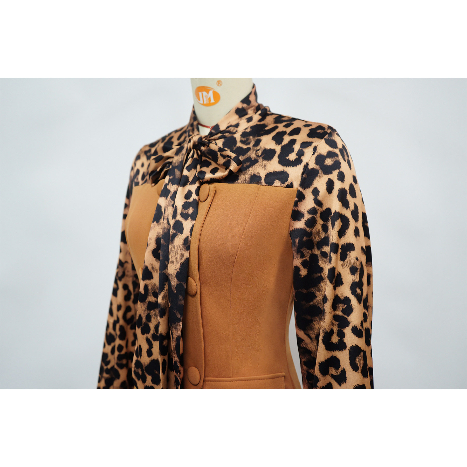 934 Cross-Border Exclusive Amazon Autumn Popular European and American Fashion Women's Leopard Print Tie Shirt Casual Set