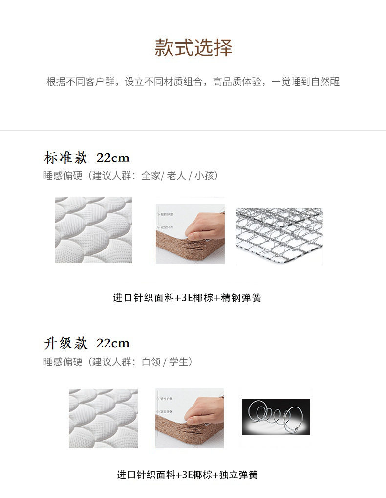 | Color | [upgraded model] antibacterial fabric + independent spring + environmentally friendly coconut palm |