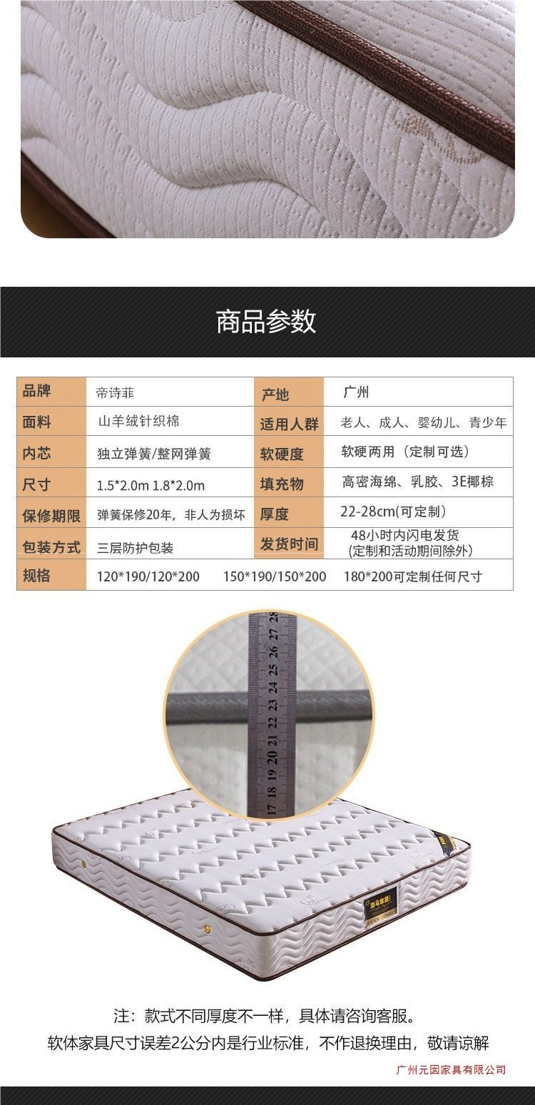 | Color | Economical and affordable 20cm knitted sheep + bonier spring,Economical and soft 22cm knitted sheep+bonier+latex,Economical and hard 22cm knitted sheep+bonier+brown,Economical dual-purpose 24cm knitted sheep+brown+latex,Moderately silent 20cm cashmere + independent spring,Silent and soft 22cm cashmere + independent spring + latex,Silent and hard 22cm cashmere + independent spring + brown,Silent dual-purpose 24cm independent spring + brown + latex,Silent low model 12cm cashmere + low independent,Low-profile, soft 15cm mattress featuring a blend of cashmere, independent pocket springs, and latex,Short and hard 15cm cashmere + short independent + brown,Enjoy moderate 20cm velvet + independent spring,Enjoy the harder 22cm velvet + partition bag + brown,Enjoy soft 22cm velvet + partition + latex,Enjoy dual-purpose 24cm velvet + brown + latex,Luxury hotel 25cm partition + cloud layer (super soft),Autumn wheat color palm mattress (cross-border) |