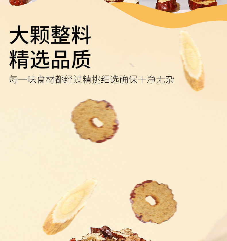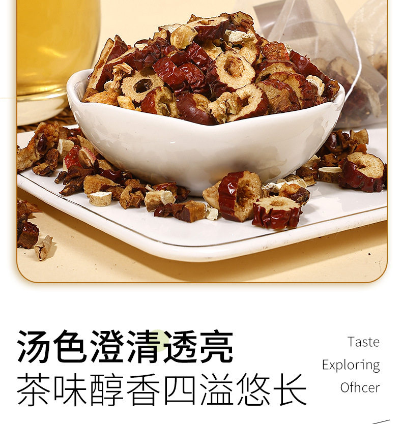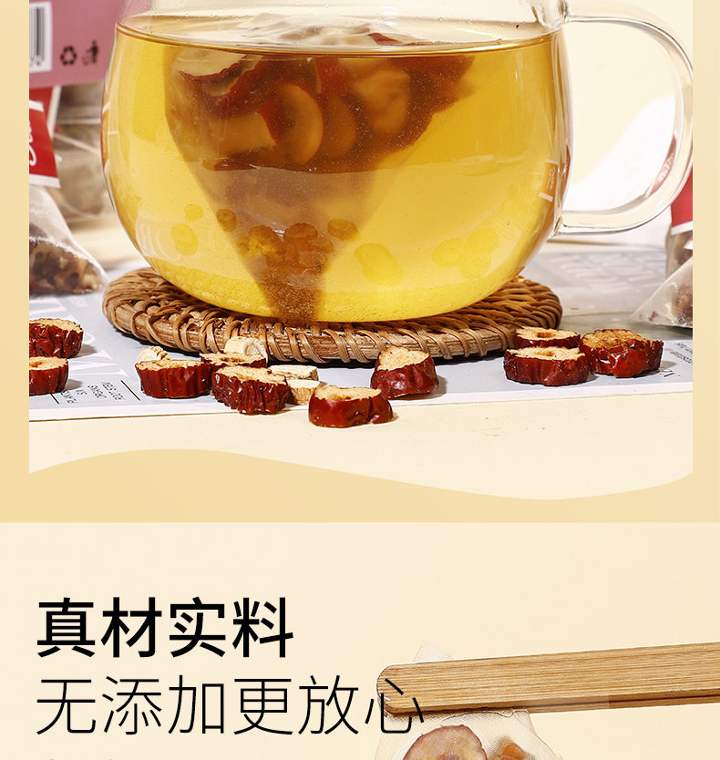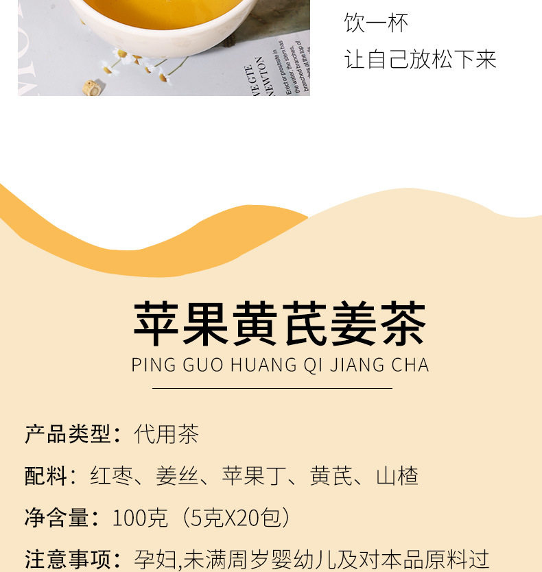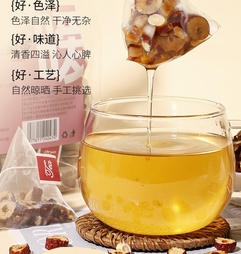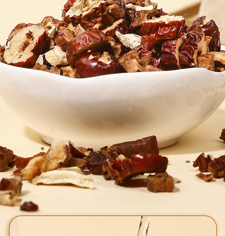 | Raw materials and ingredients | Red dates, shredded ginger, diced apples, astragalus, hawthorn |