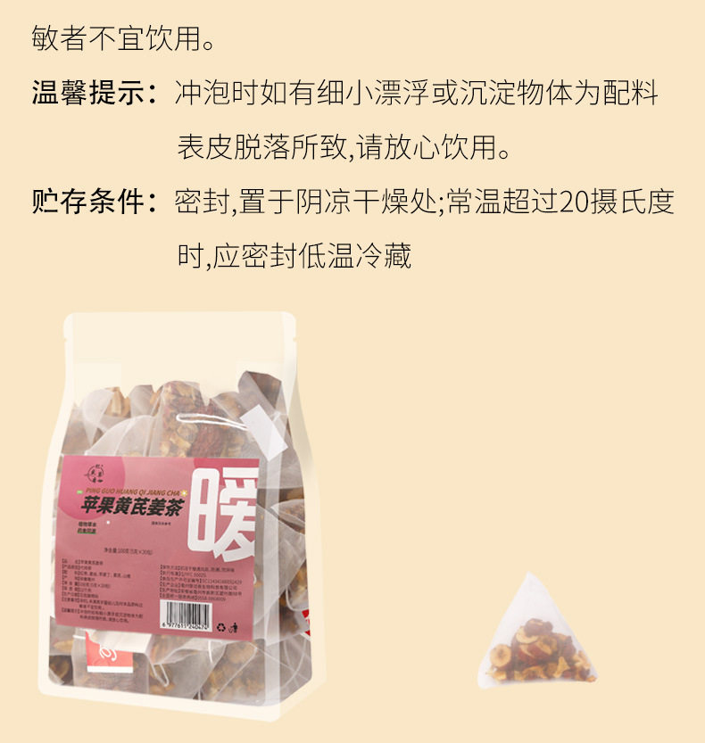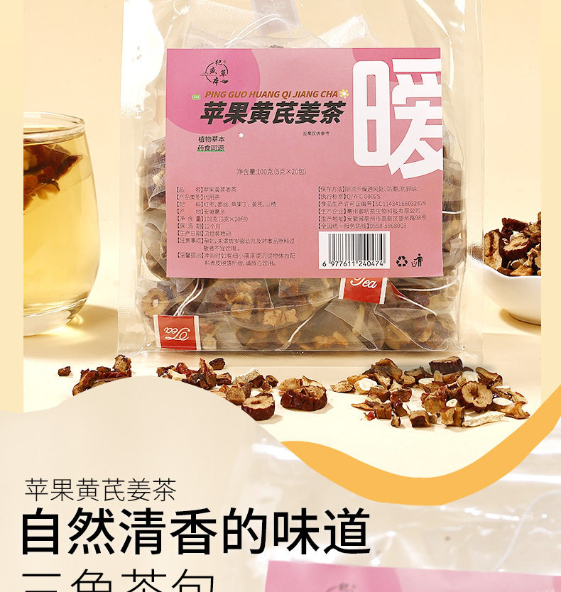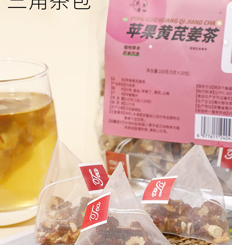 Source Manufacturer Apple Astragalus Ginger Tea Triangular Small Tea Bag Combination Tea Bag 3g 20 Bags Wholesale and Retail One Piece
