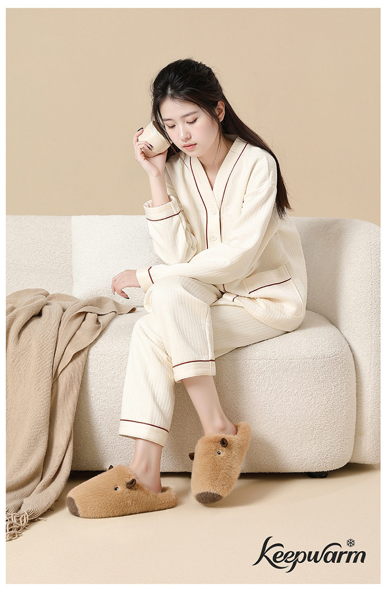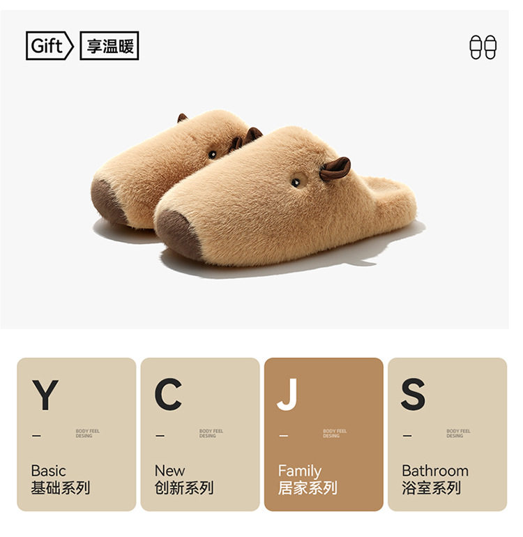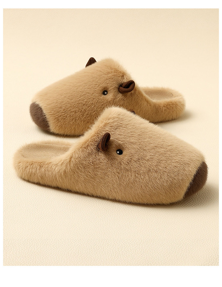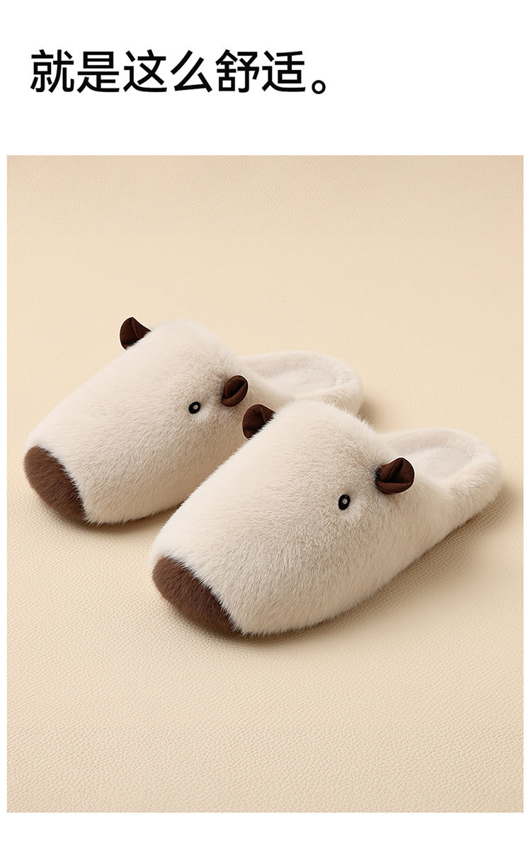 Kapibala Plush Cotton Slippers for Women Autumn and Winter 2025 New Indoor Warm Home Plush Cotton Slippers for Men