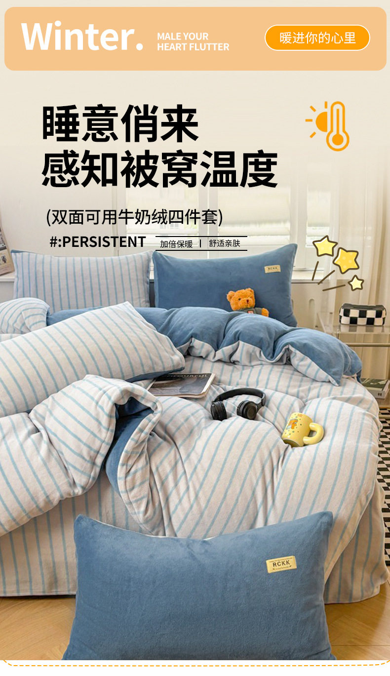 Milk Velvet Bed Four-Piece Set 2025 New Winter Thickeneded Coral Velvet Bed Bed Sheets Quilt Cover Three-Piece Bedding Set