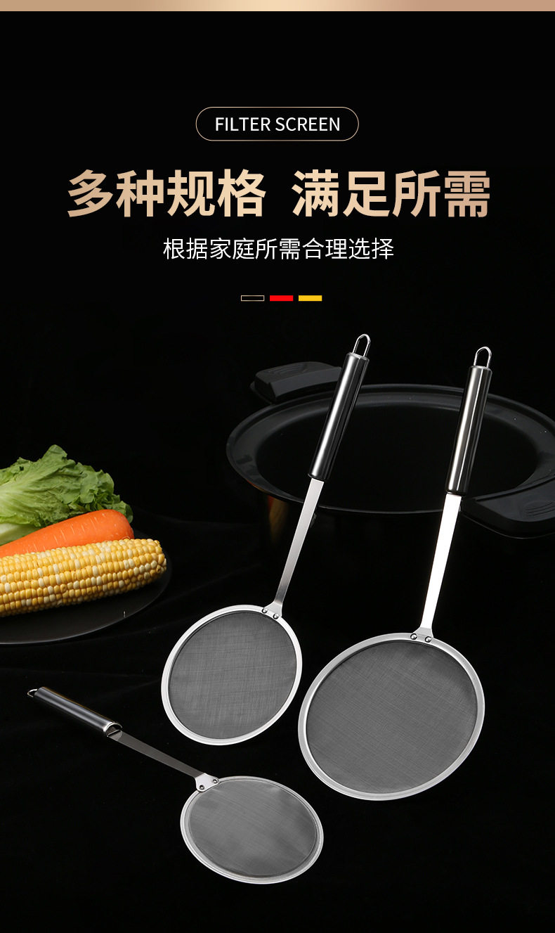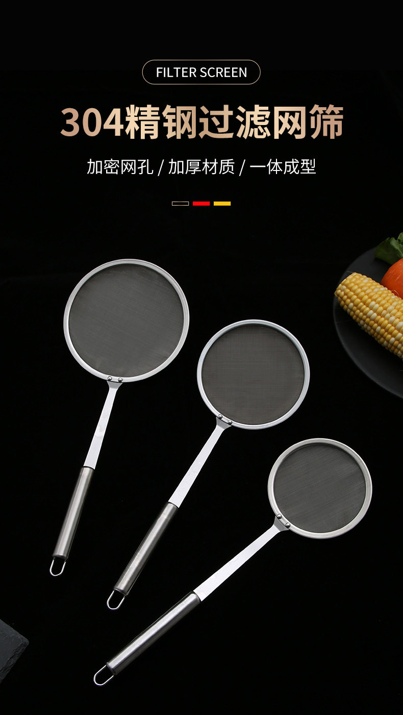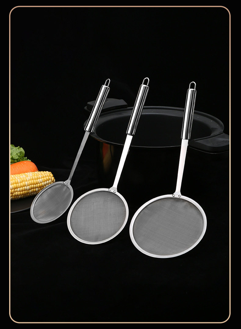 304 Stainless Steel Mesh Oil Leakage Separator Narrow Edge Grease Filter Spoon Juice Soy Milk Filter Spoon Kitchen Stainless Steel Mesh Sieve