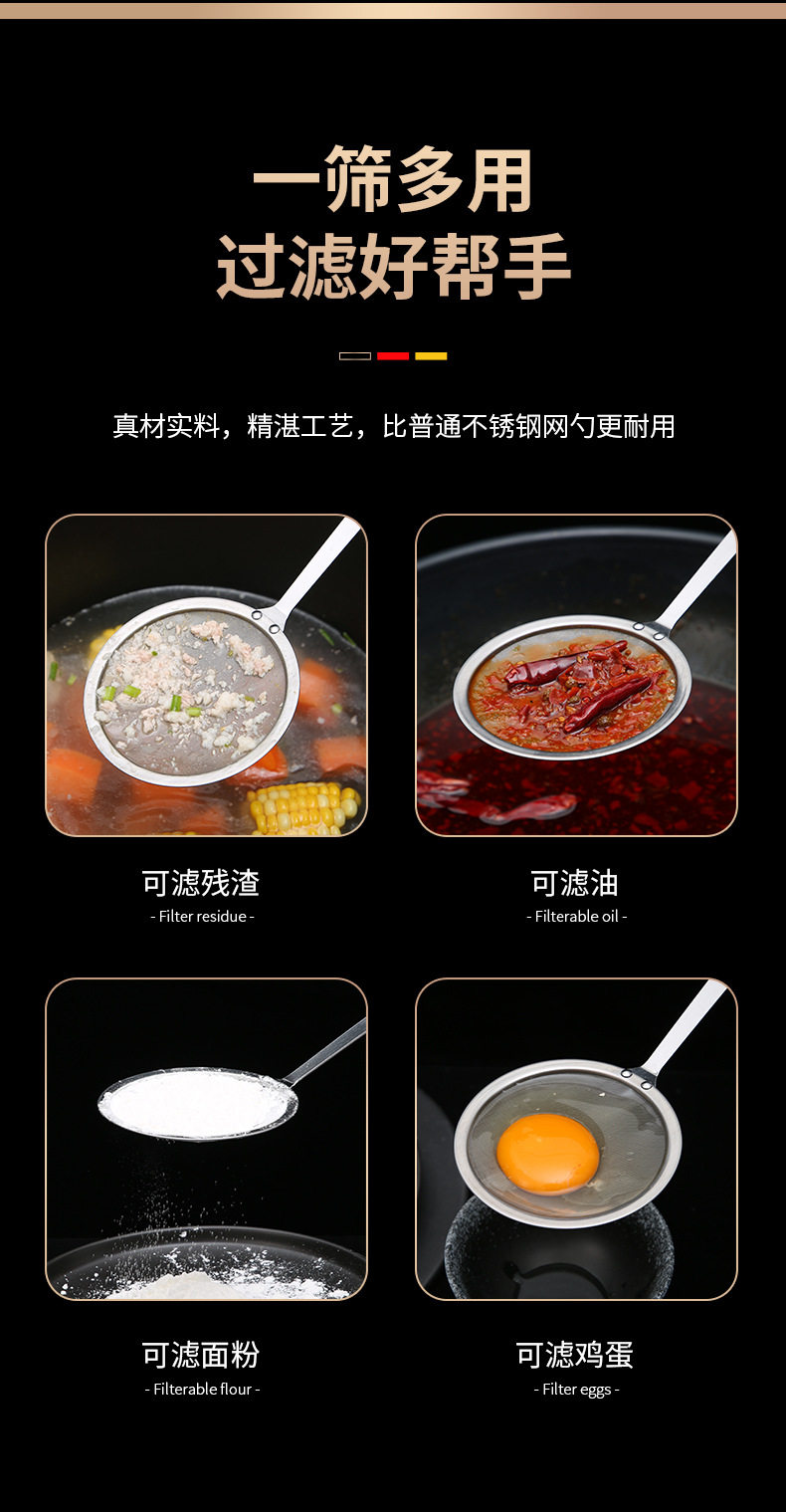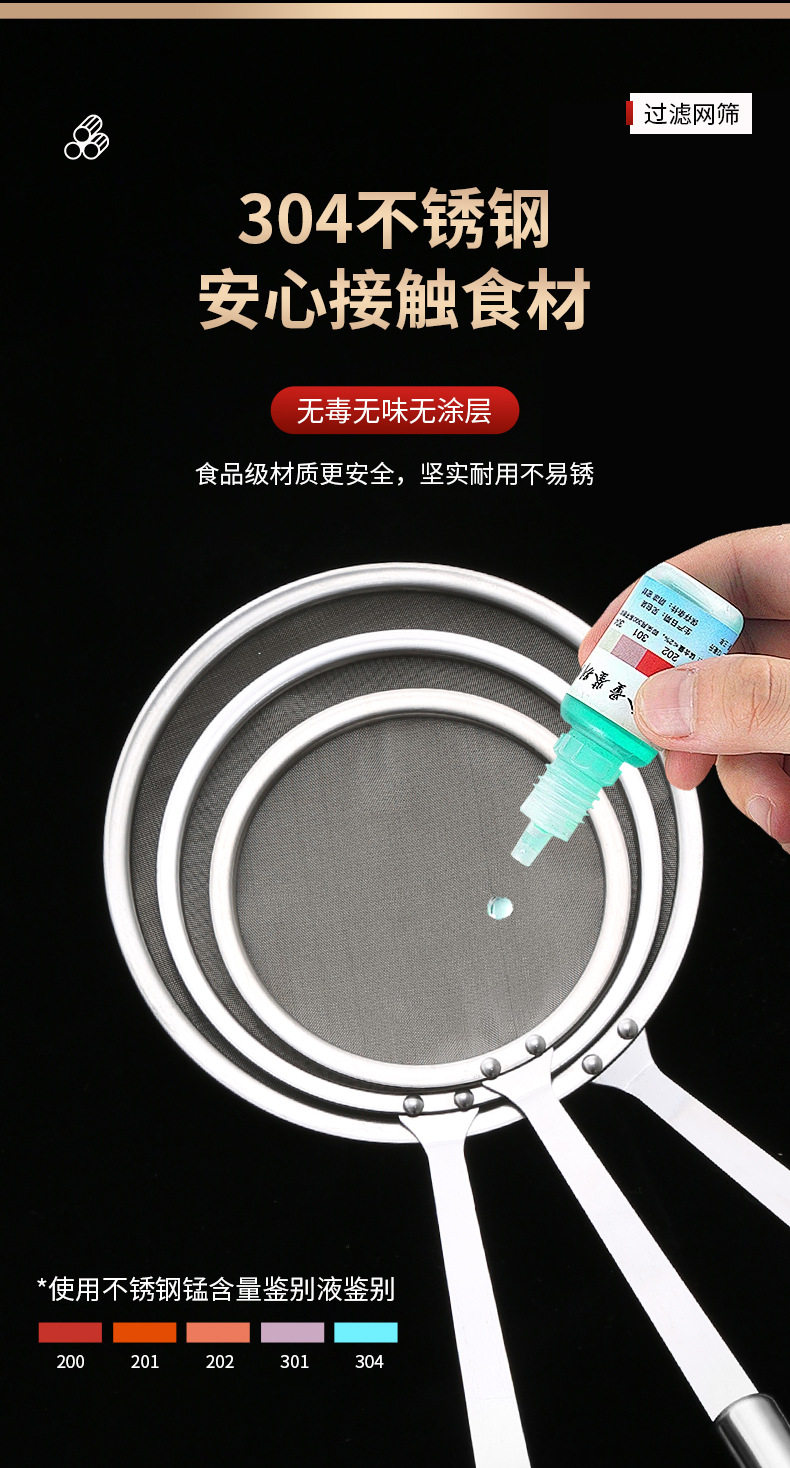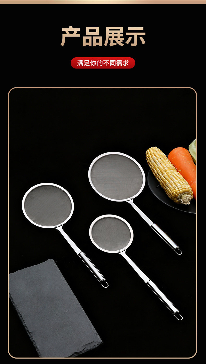 304 Stainless Steel Mesh Oil Leakage Separator Narrow Edge Grease Filter Spoon Juice Soy Milk Filter Spoon Kitchen Stainless Steel Mesh Sieve
