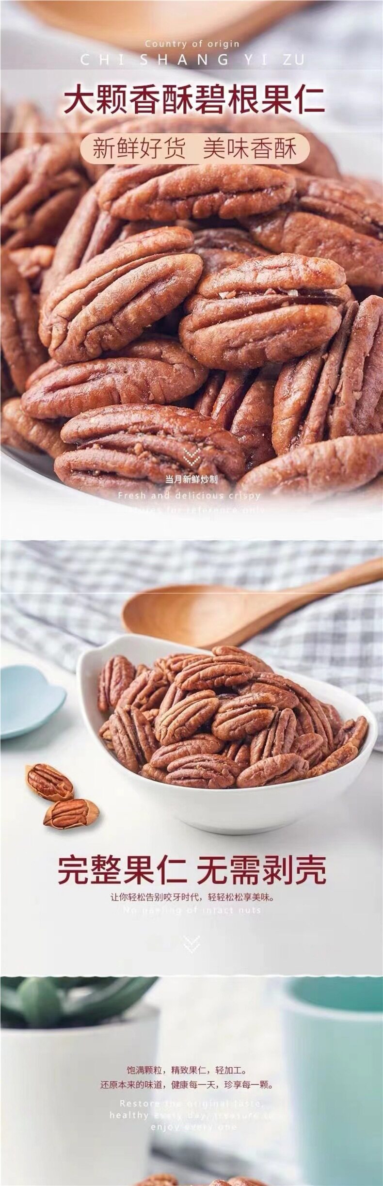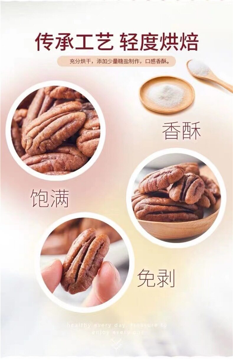 | Taste | 1 can of shellless pecan nuts, total weight 250g,2 cans of shellless pecan nuts with a total weight of 500g (recommended),4 cans of shellless pecan nuts with a total weight of 1000g (super cost-effective),Pecan nuts without shell half catty bag,Pecan nuts shellless 0.5kg bags (super affordable),Shellless pecan nuts 1.0kg bags (super affordable recommendation),Net weight 250g×2 bags【0.5kg】 |