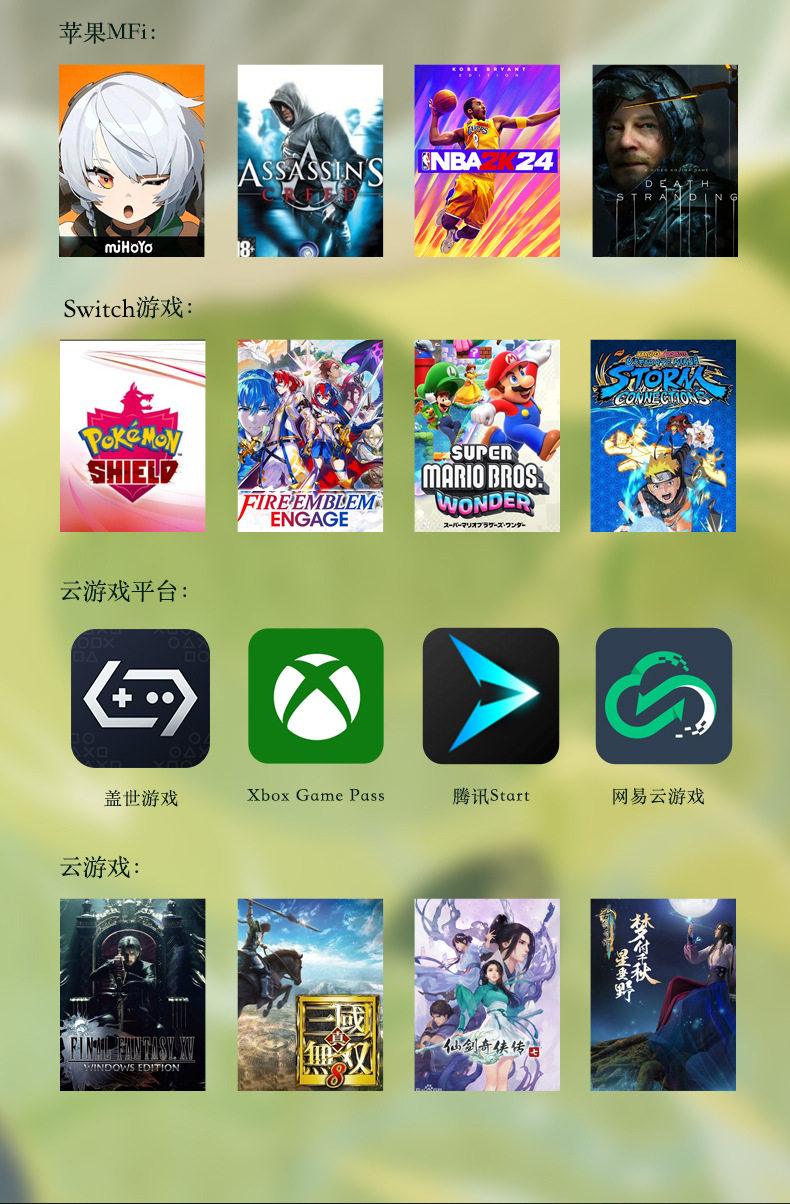 | Target audience | Pcs,Apple mobile phone,Switches,Android phone |