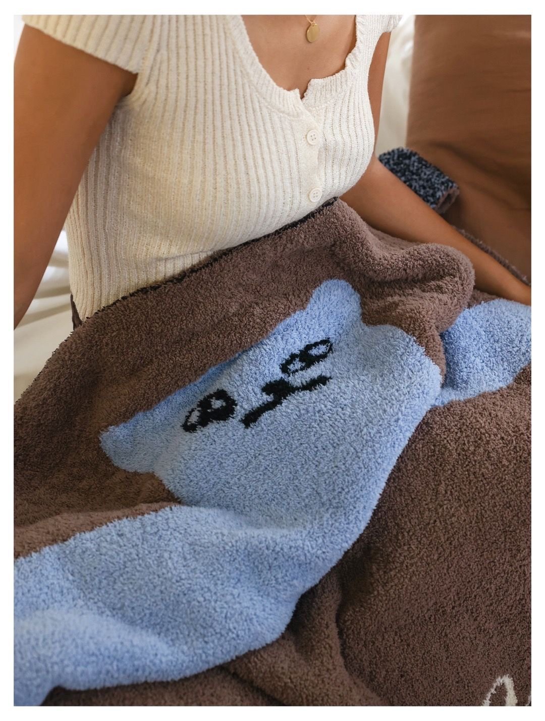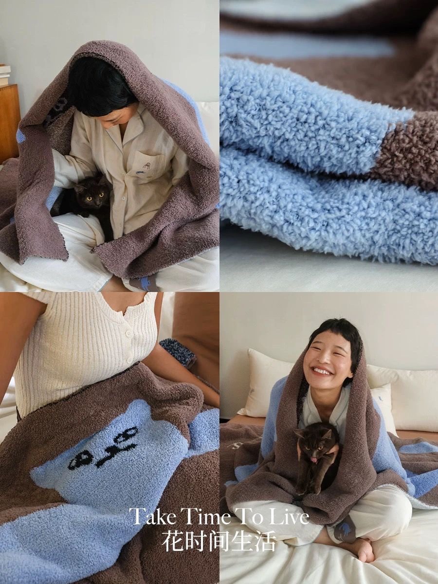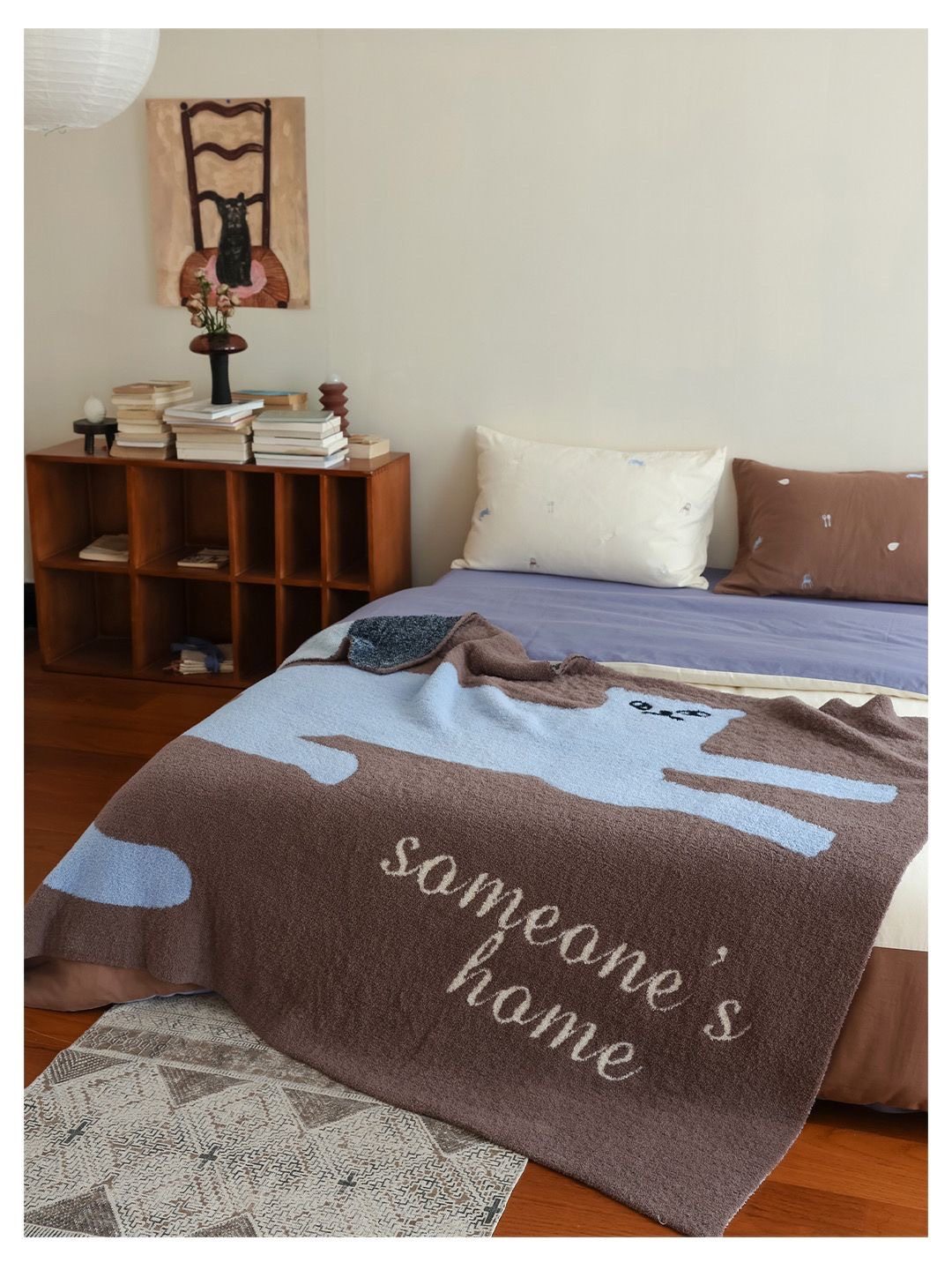 Fluffy Half-Fleece Nap Blanket Knitted Throw Blanket for Cats Single Sofa Air Conditioning Blanket