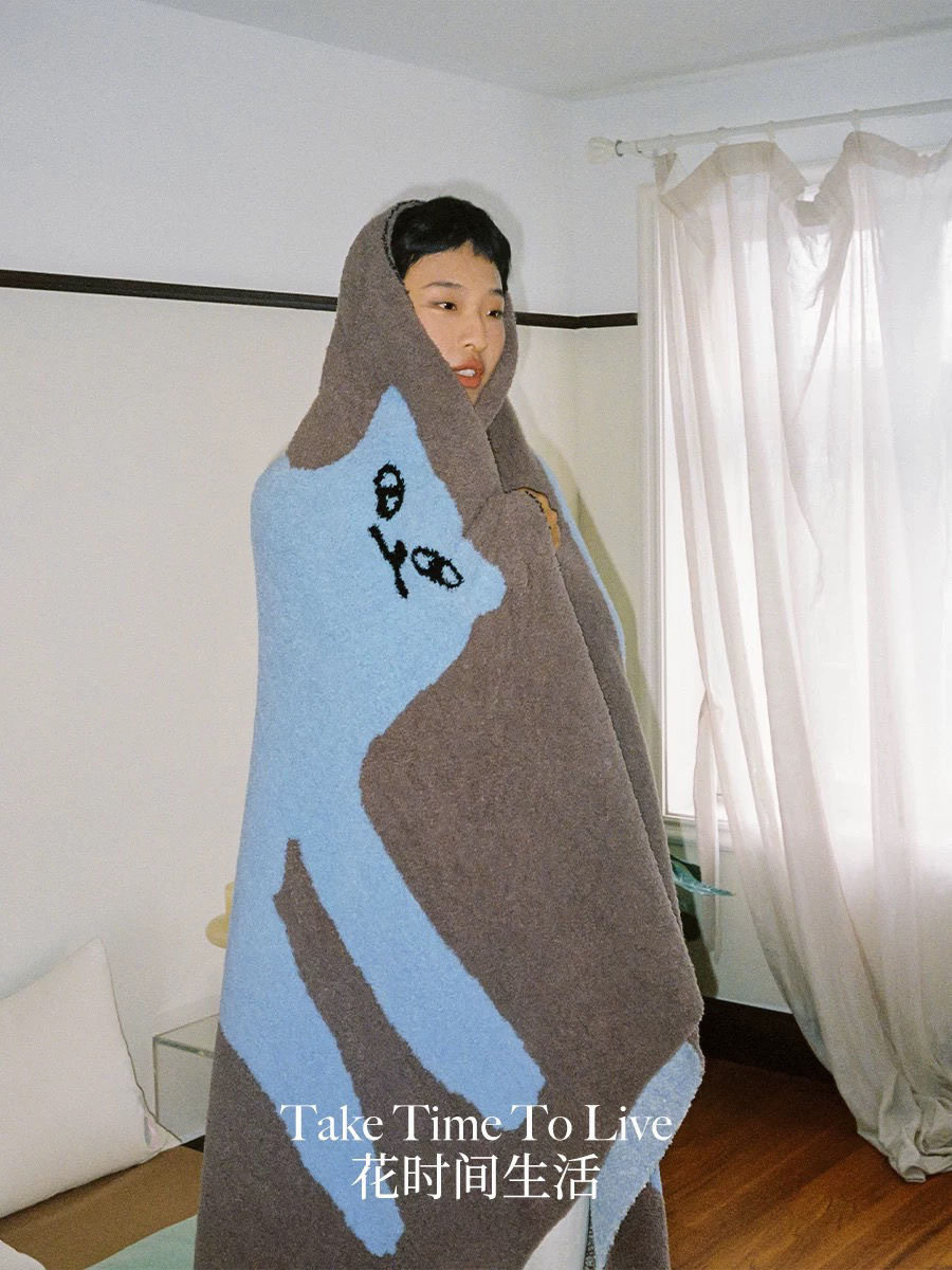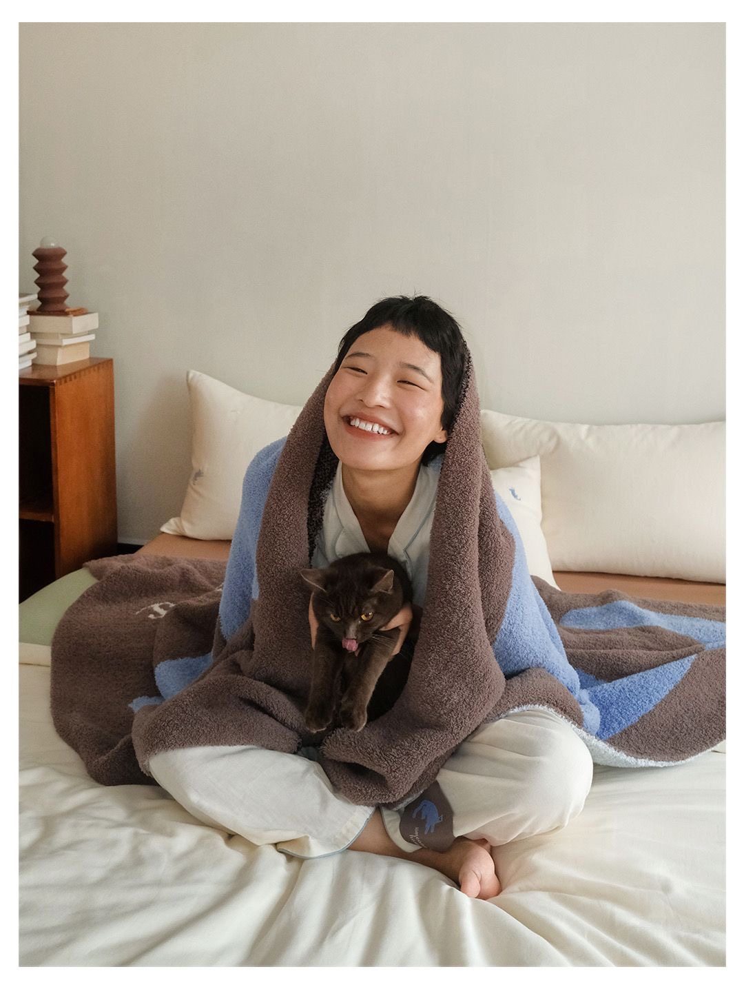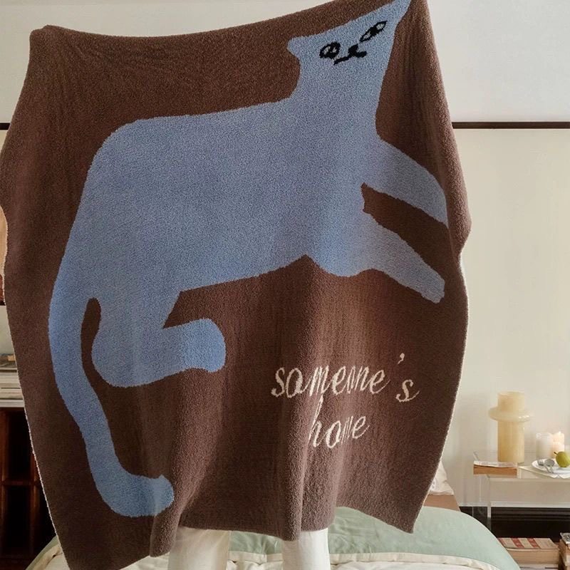 Fluffy Half-Fleece Nap Blanket Knitted Throw Blanket for Cats Single Sofa Air Conditioning Blanket