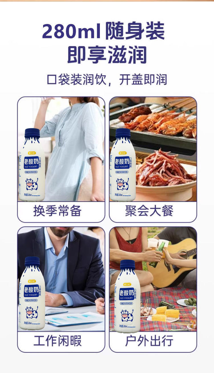 Original Old Yogurt 280ml*24 Bottles Full Box Office Nutritious Breakfast Low-Fat Drink Student Family Affordable Package