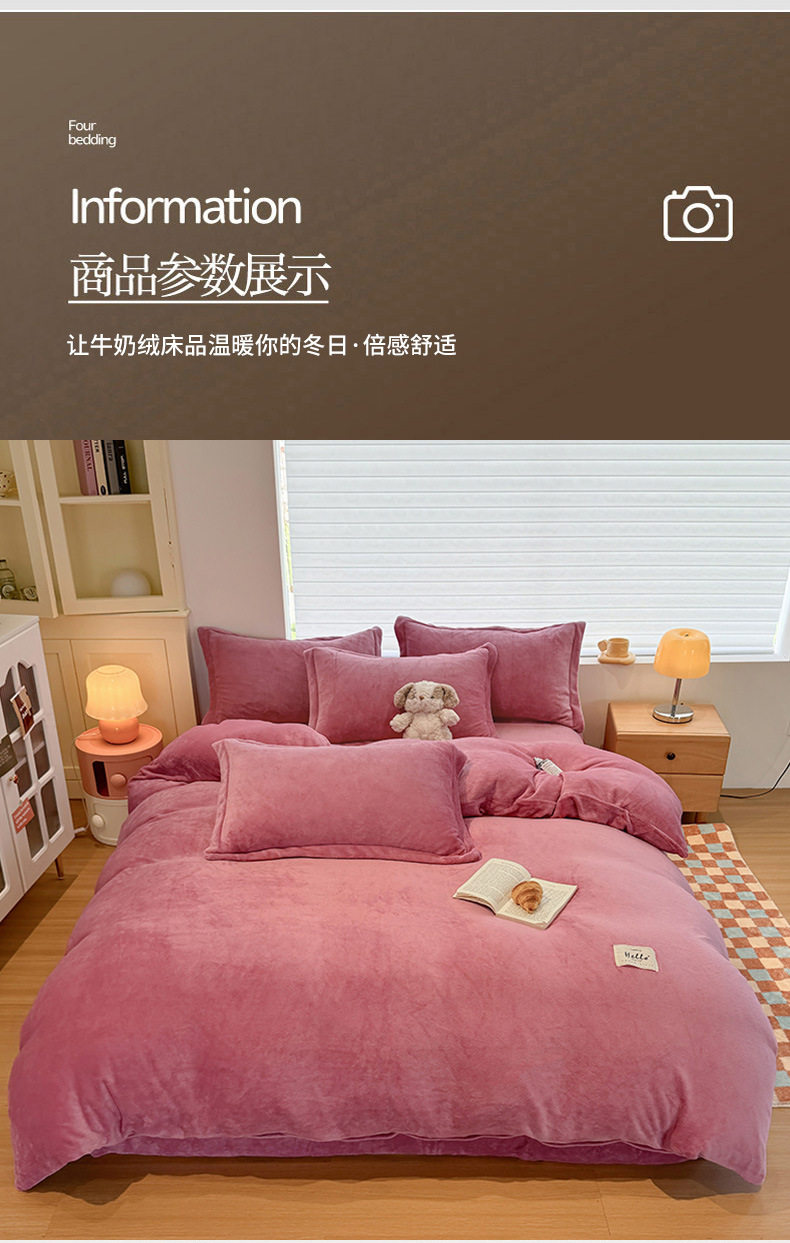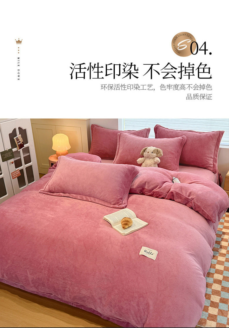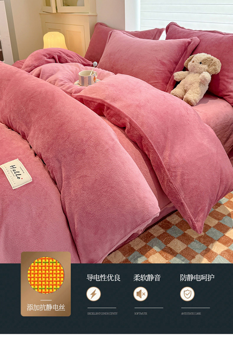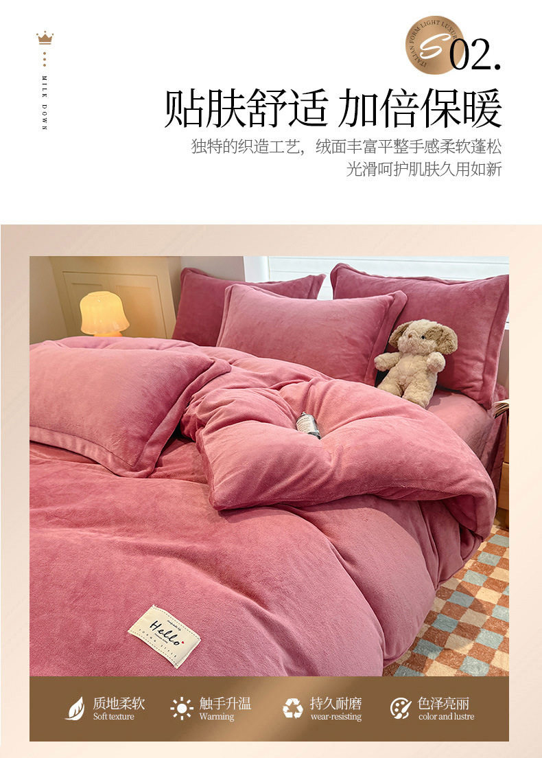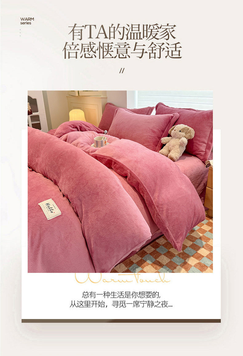 Thickened Milk Velvet Four-Piece Winter Bed Bed Sheets Quilt Cover Coral Velvet Flannel Type a Maternal and Infant Grade Single Three-Piece Set 2