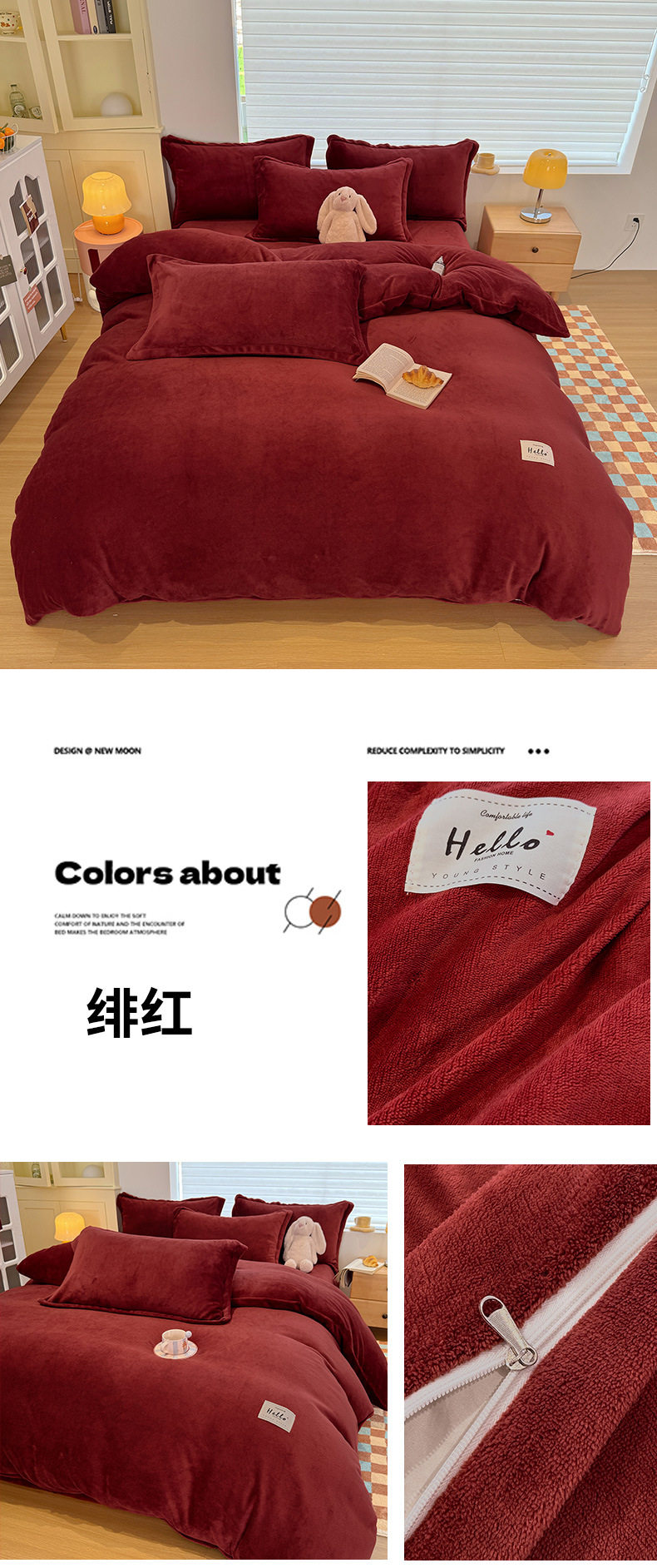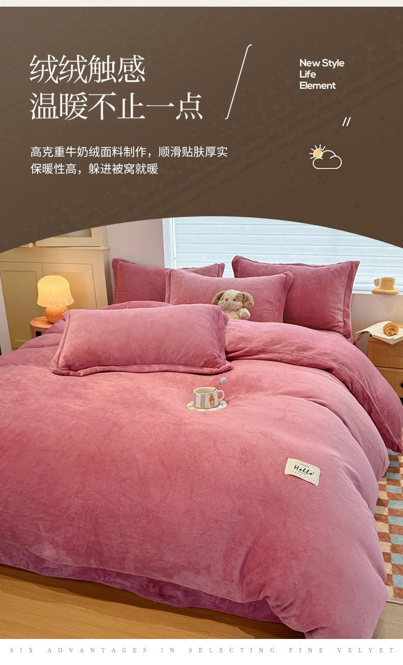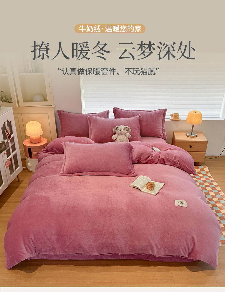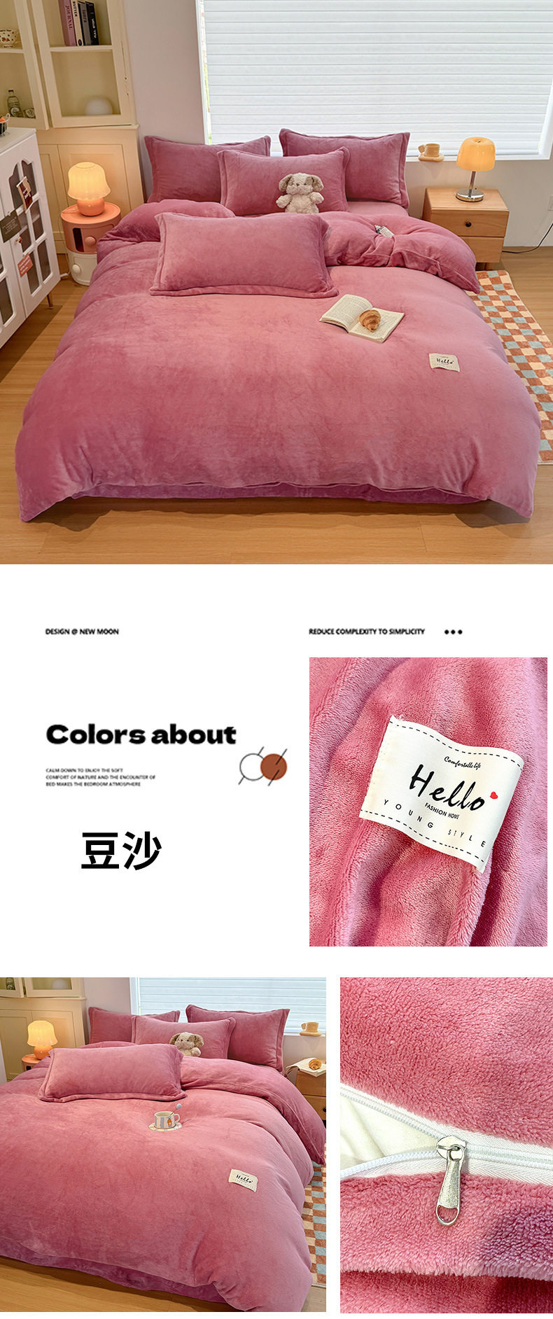 Thickened Milk Velvet Four-Piece Winter Bed Bed Sheets Quilt Cover Coral Velvet Flannel Type a Maternal and Infant Grade Single Three-Piece Set 2