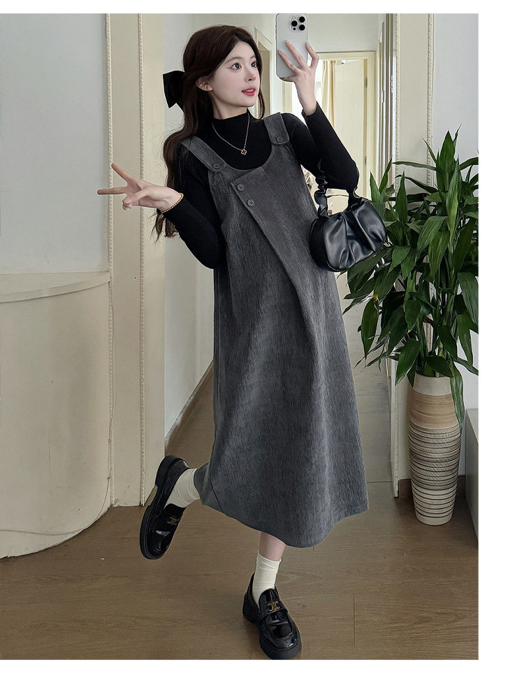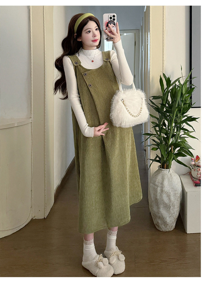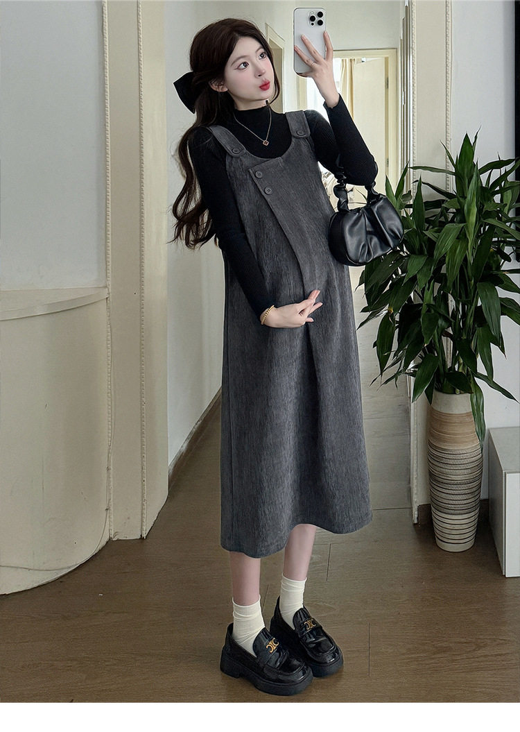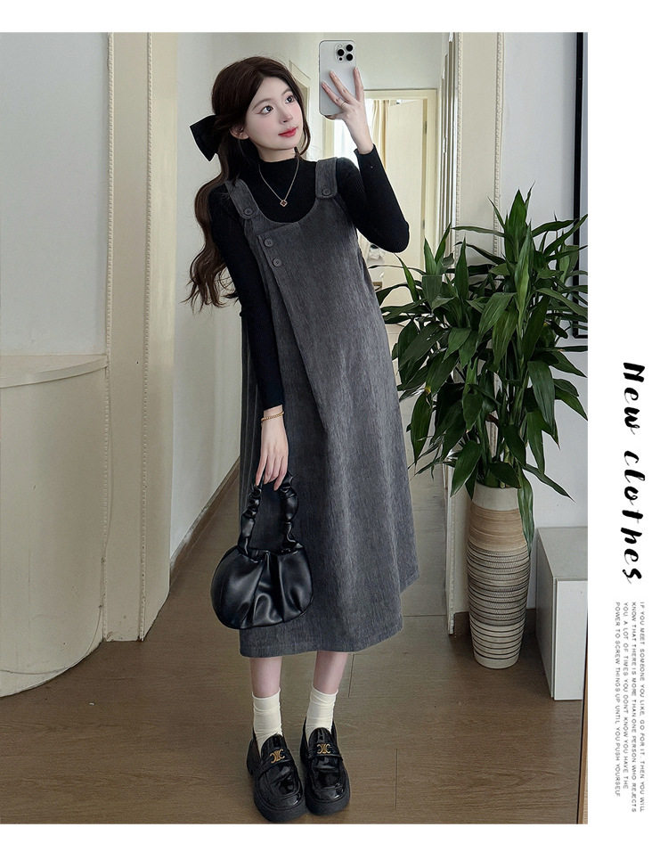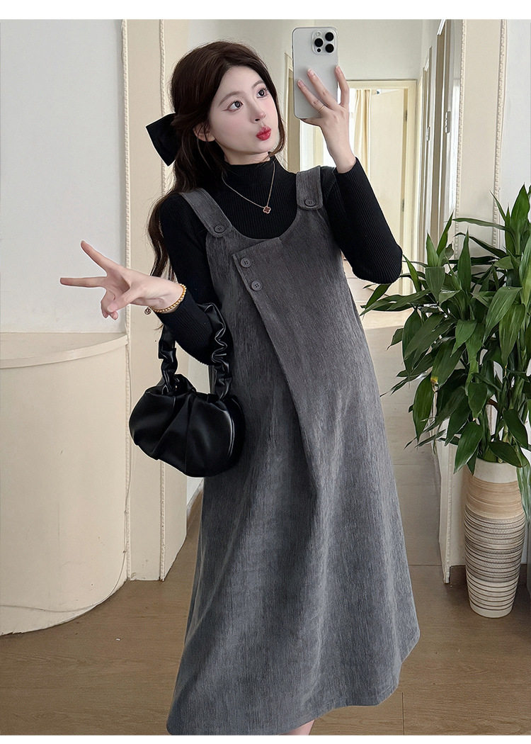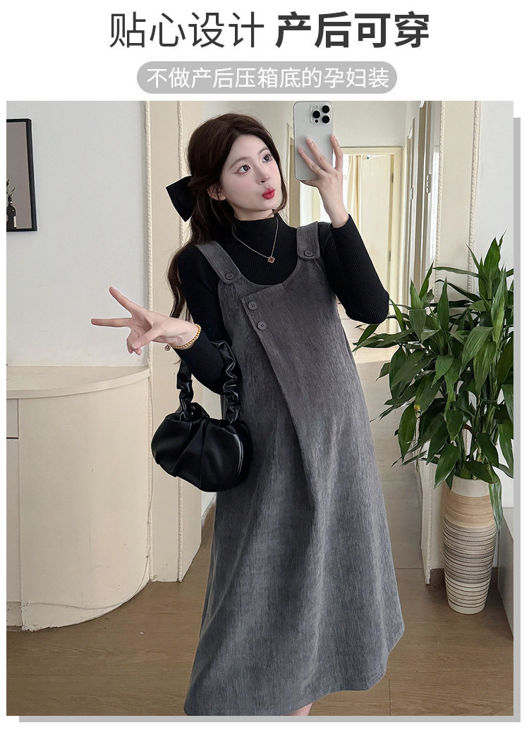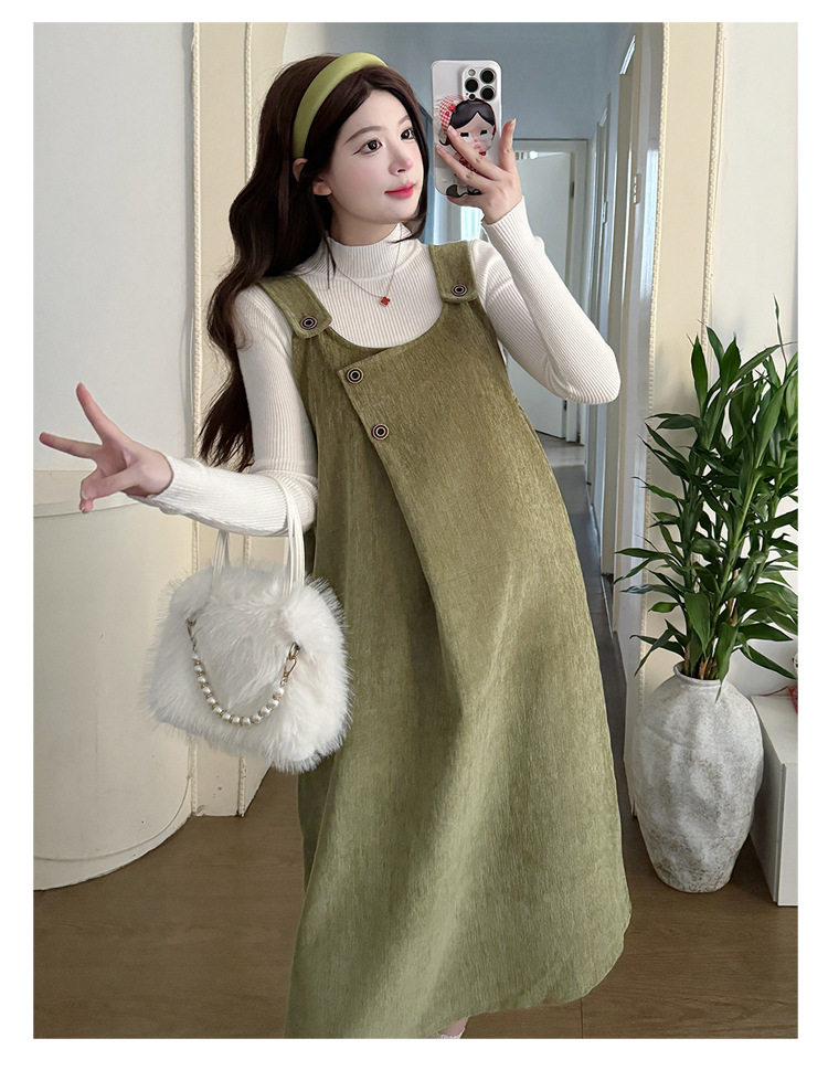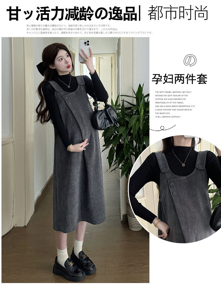 Maternity Wear Winter Dress 2025 New Autumn and Winter Fashion Suit High-End Outfit Suspender Skirt Two-Piece Set