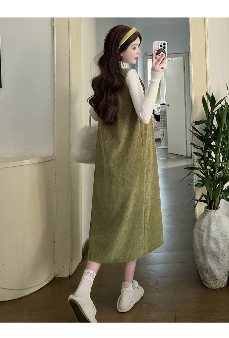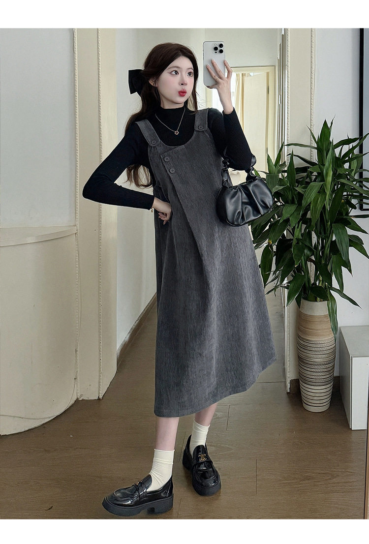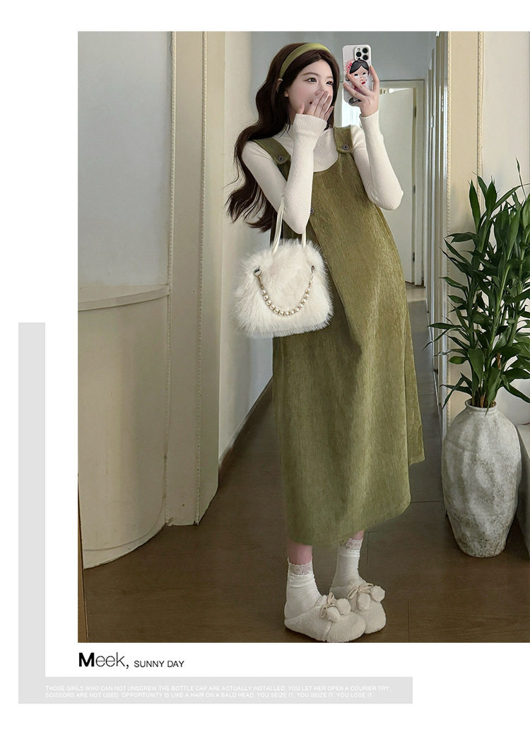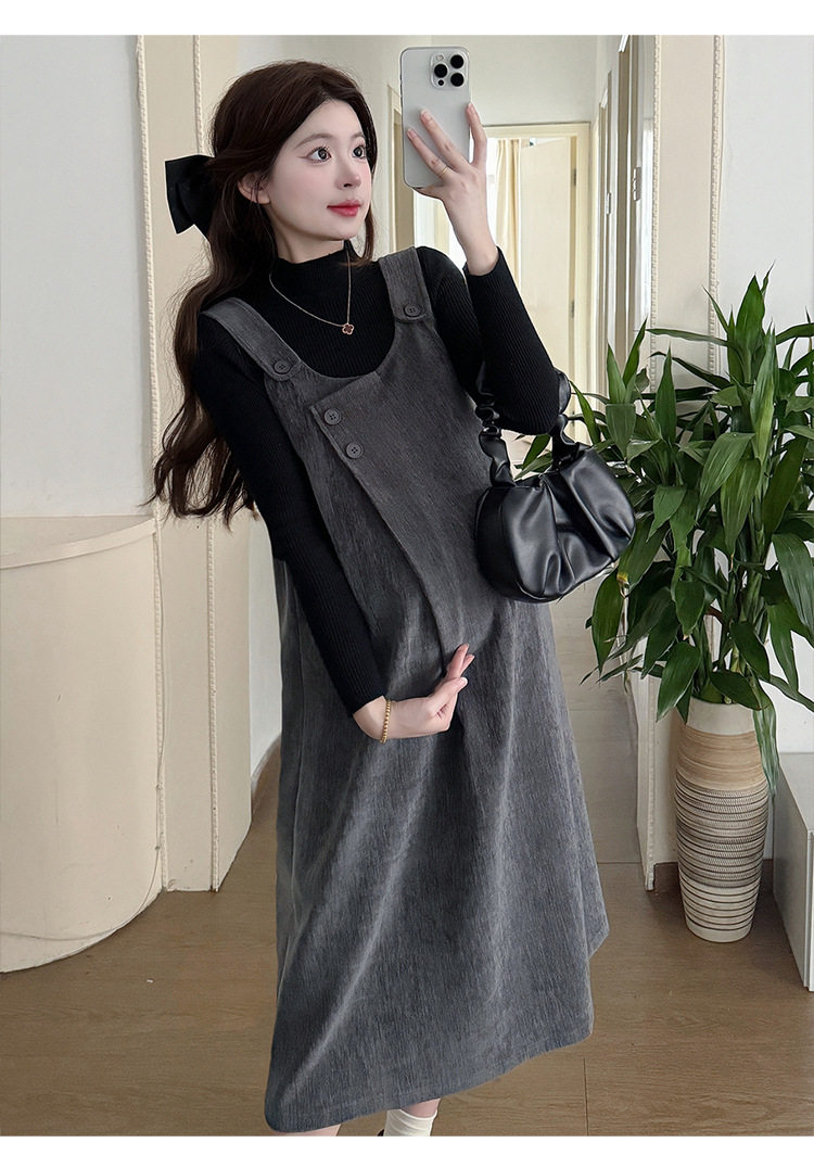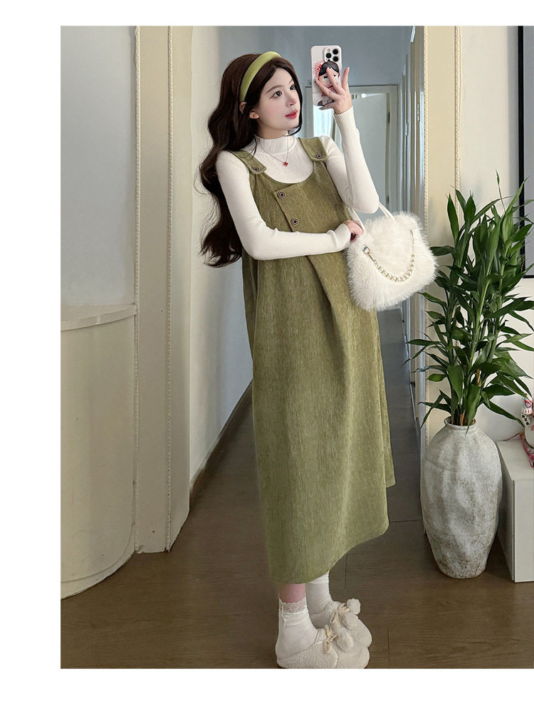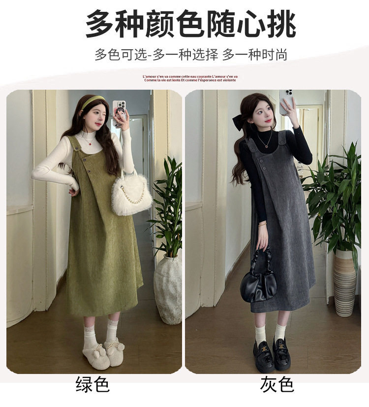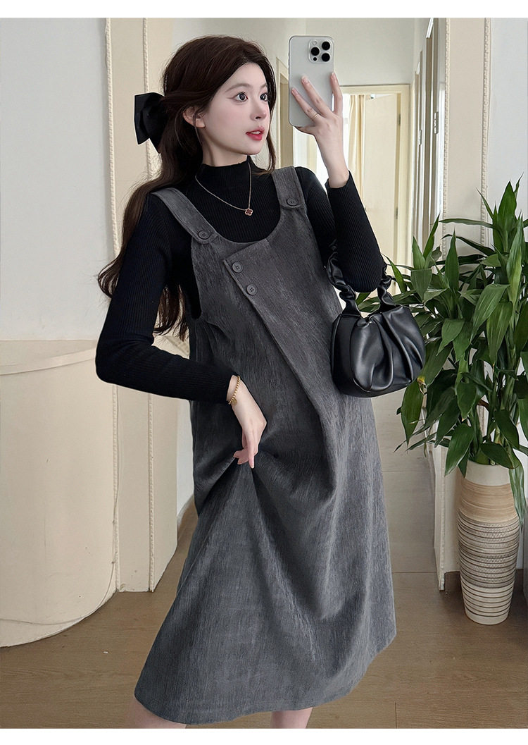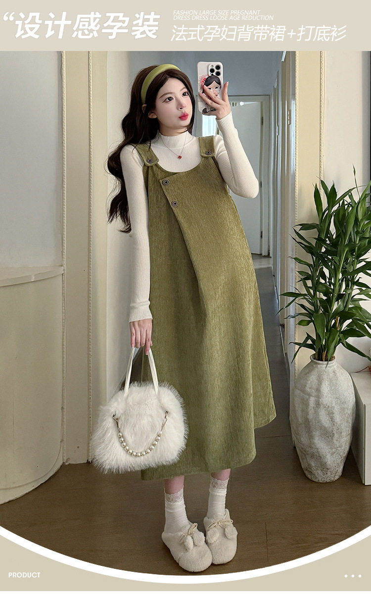Maternity Wear Winter Dress 2025 New Autumn and Winter Fashion Suit High-End Outfit Suspender Skirt Two-Piece Set