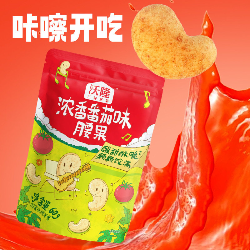 | Packaging specifications | Strong tomato flavor cashew nuts 60g/bag,Spicy roasted mixed nuts 60g/bag,Mustard flavored macadamia nuts 55g/bag,Nut milk cake 75g'/bag,Rich tomato flavor cashew nuts 120g/bag,Mustard flavored macadamia nuts 110g/bag,Daily nuts 125g/bag |
