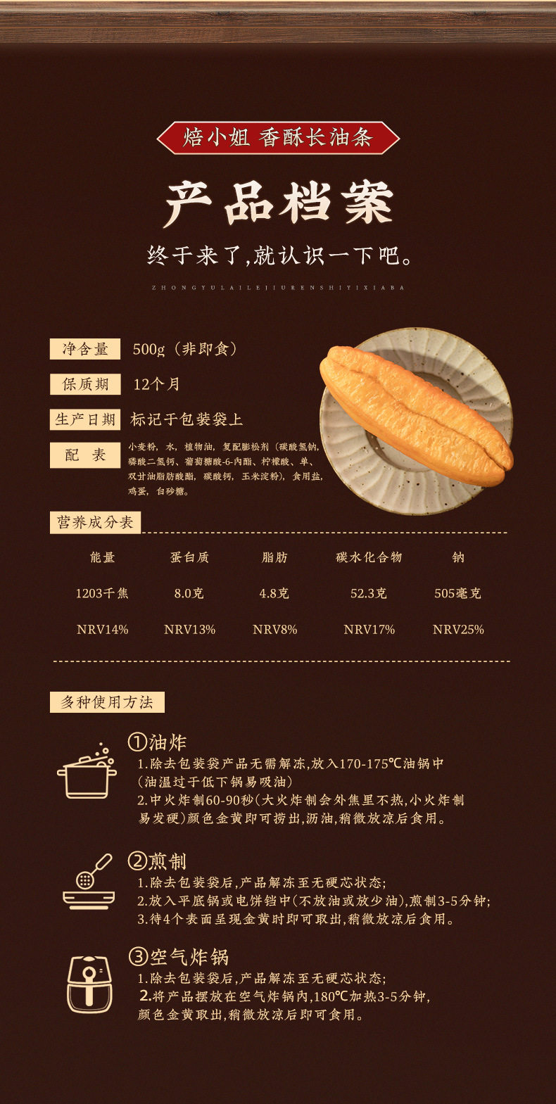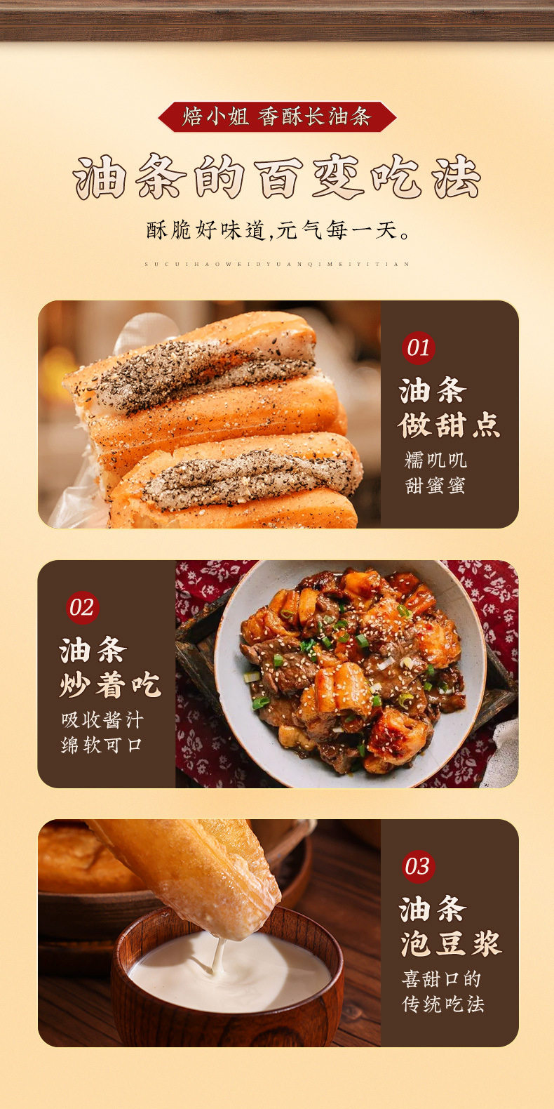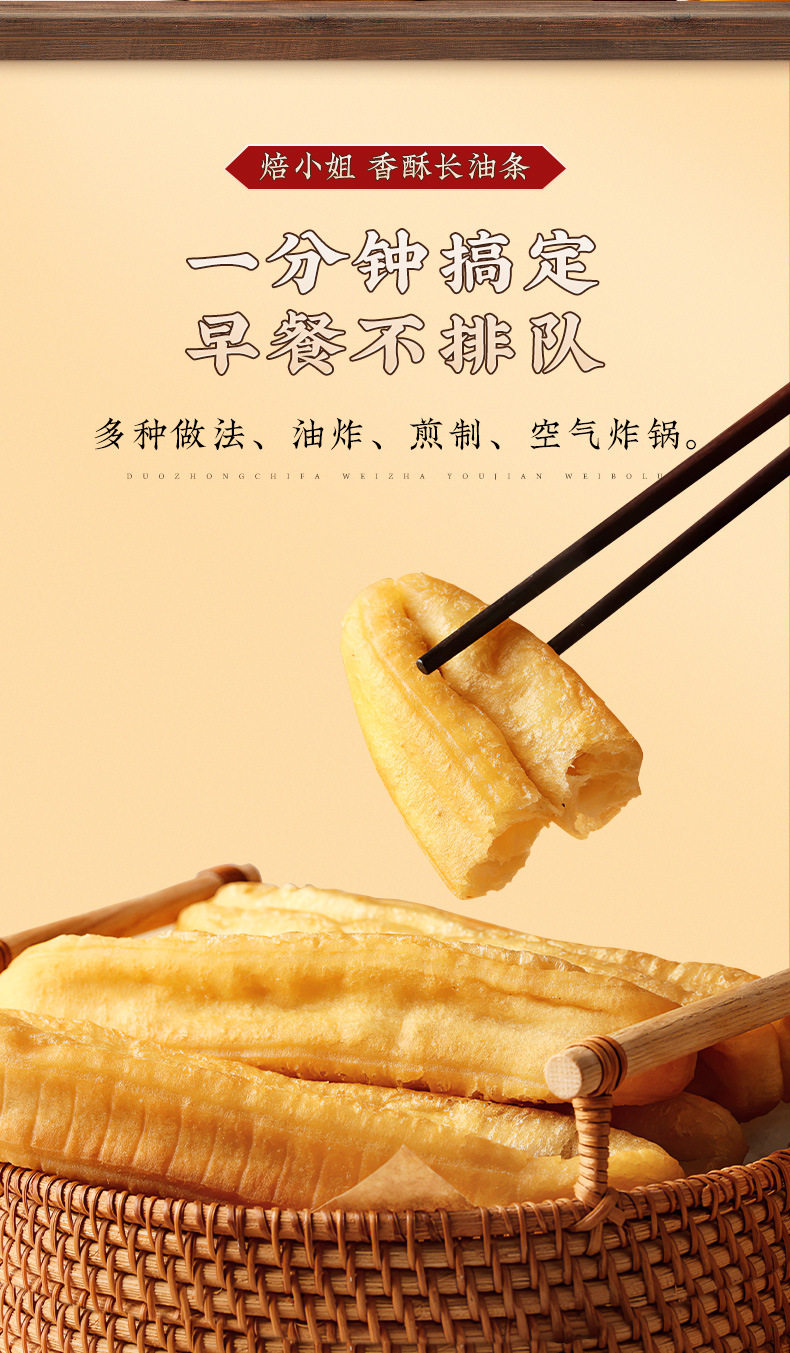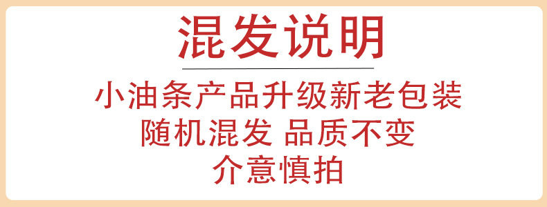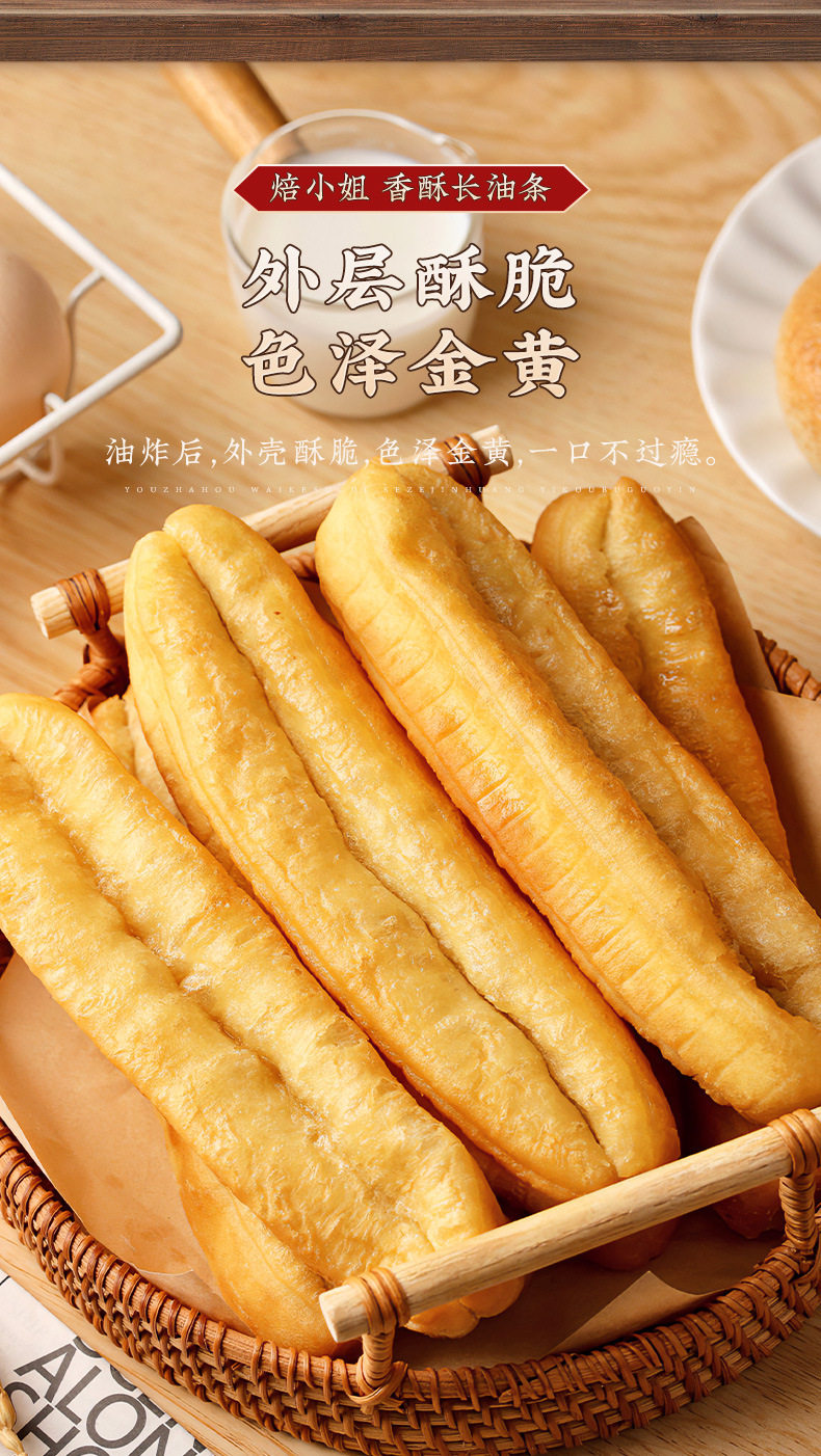 | Packaging specifications | [recommended] crispy long fried dough sticks 500g*2 pack (about 20 sticks),[cost-effective wholesale] crispy long fried dough sticks 500g*4 pack (about 40 sticks),[try pack] crispy long fried dough sticks 500g*1 pack (about 10 sticks),[try pack] little fatty fried tiao 500g*1 pack (about 20 sticks),[hot selling recommendation] little fatty fried tiao 500g*2 pack (about 40 sticks),[cost-effective wholesale] little fatty fried tiao 500g*4 packs (about 80 sticks),[combined pack] 1 pack of large fried dough sticks + 1 pack of small fried dough sticks (two packs in total),[combined pack] 2 packs of large fried dough sticks + 1 pack of small fried dough sticks (three packs in total),[combined pack] 1 pack of large fried dough sticks + 2 packs of small fried dough sticks (three packs in total),[you tiao paper bag] lemon bear paper bag 50 pieces,Seaweed and shrimp cake 500g, free 9g tomato sauce*2,Seaweed and shrimp cake 1000g, free 9g tomato sauce*4,Seaweed and shrimp pancakes 2000g, free 9g tomato sauce*8 |